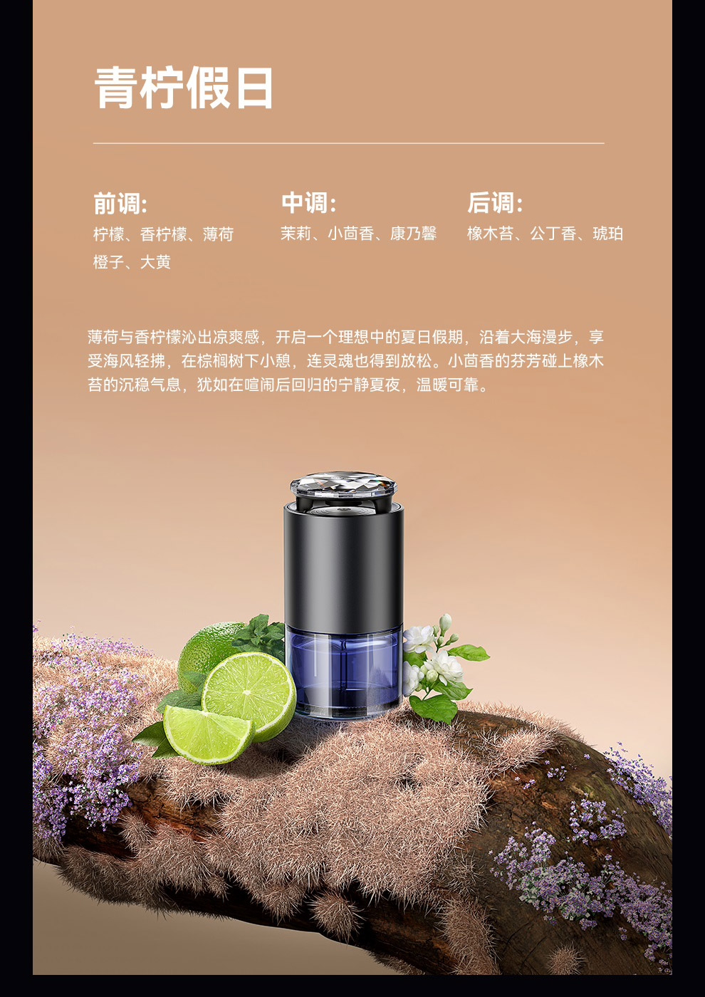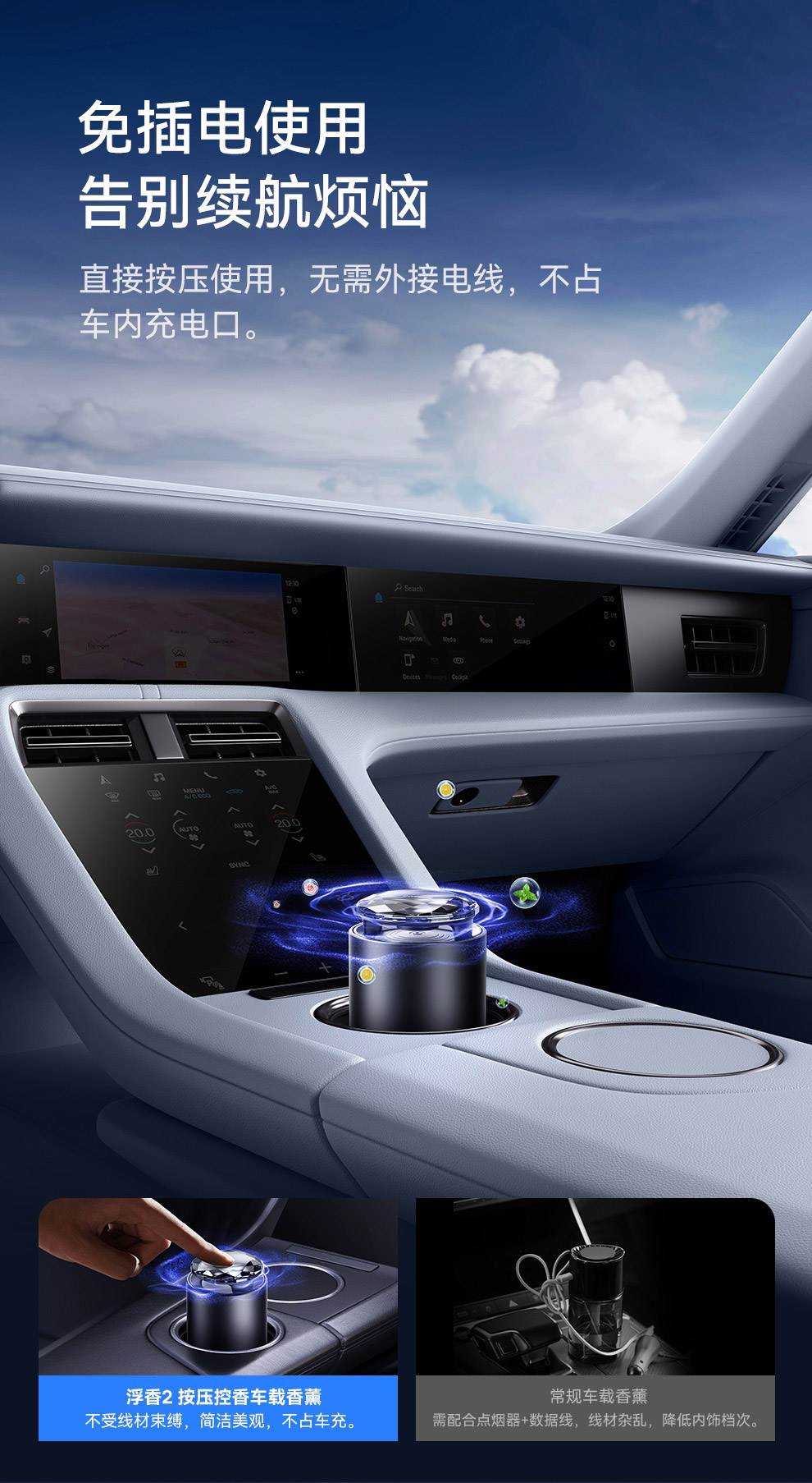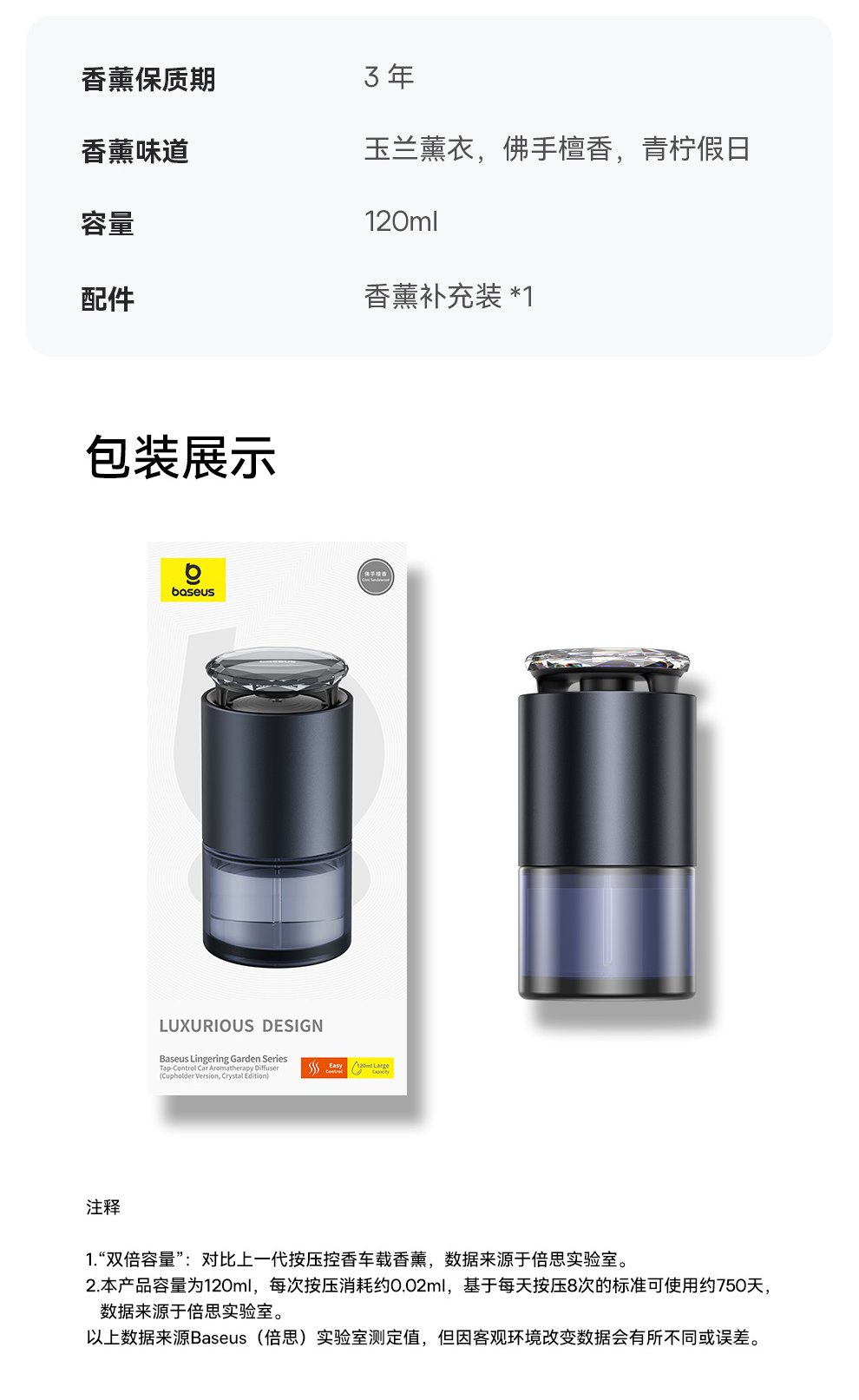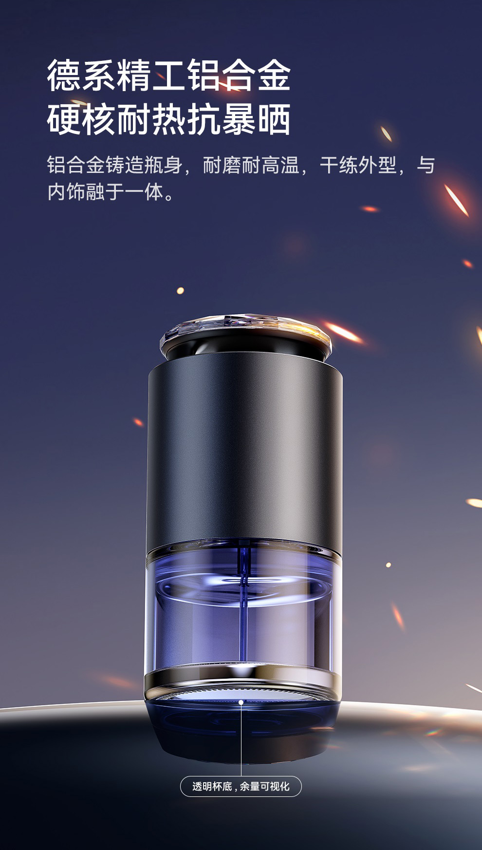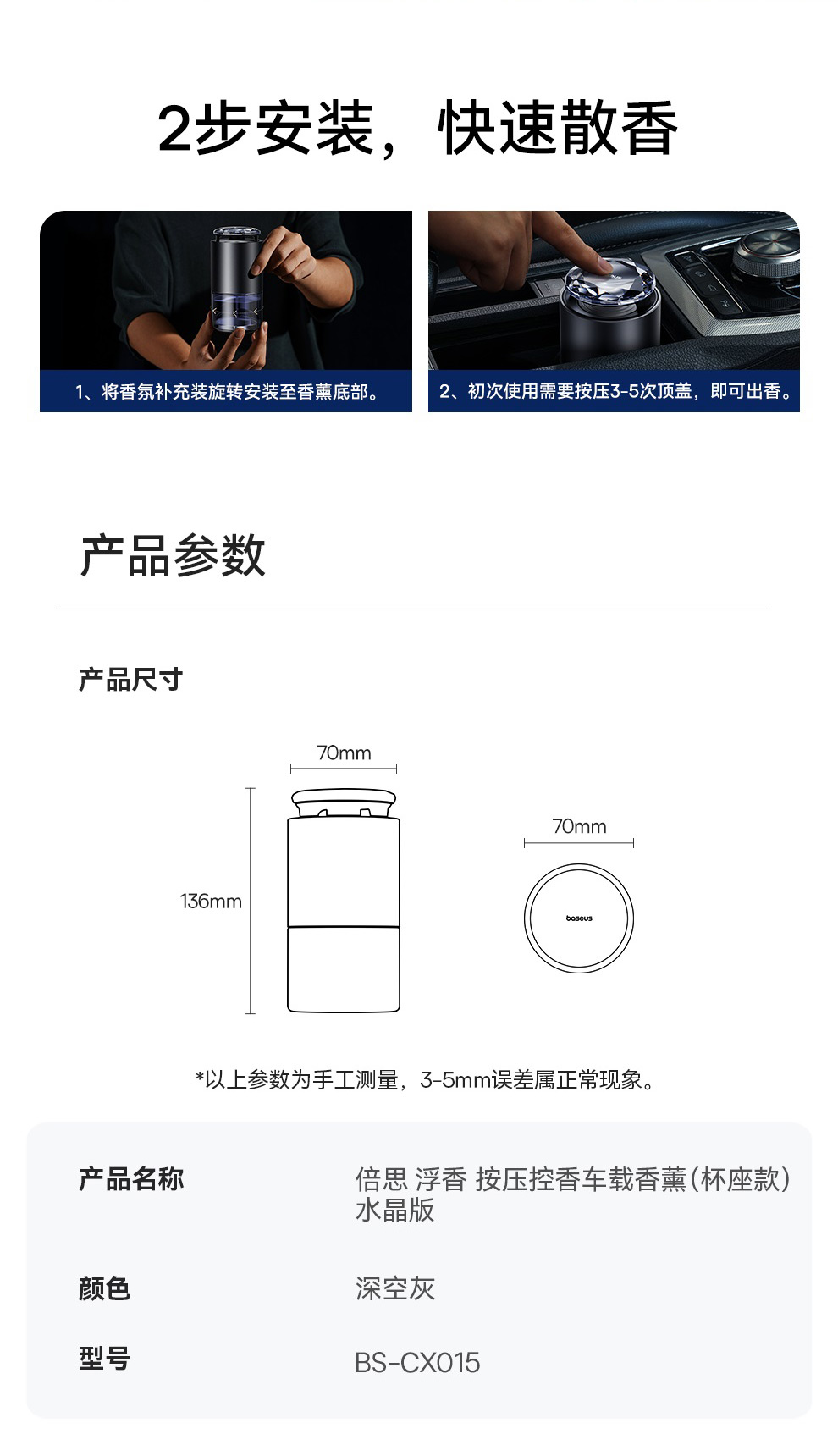 【十一专享】倍思 浮香 按压控香车载香薰(杯座款) 水晶版 深空灰