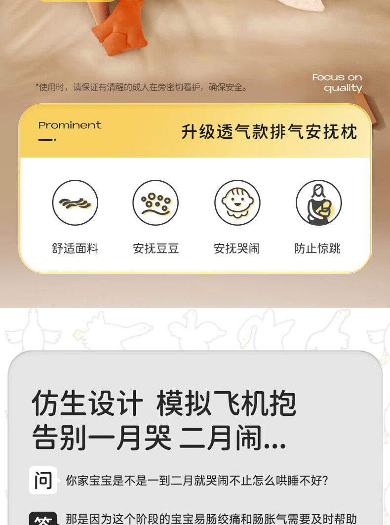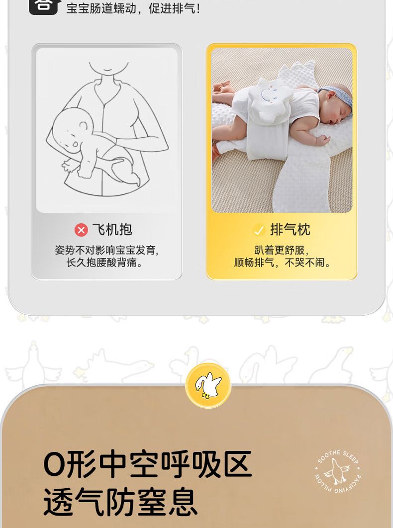 大白鹅婴儿排气枕防胀气肠绞痛宝宝飞机抱防窒息趴睡搂睡安抚神器