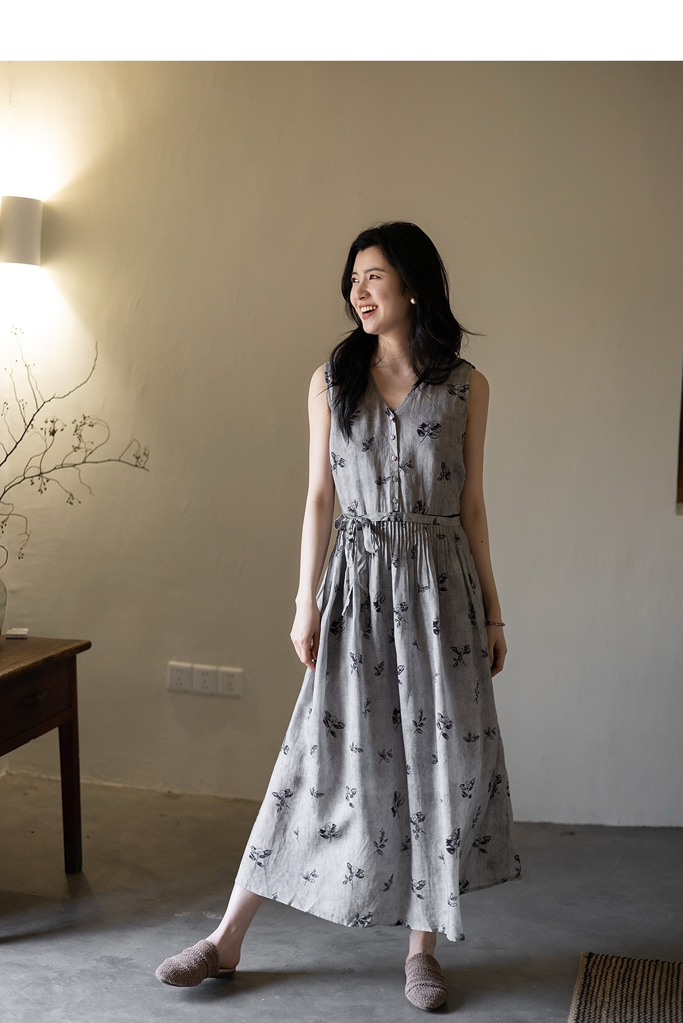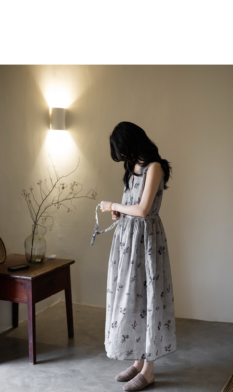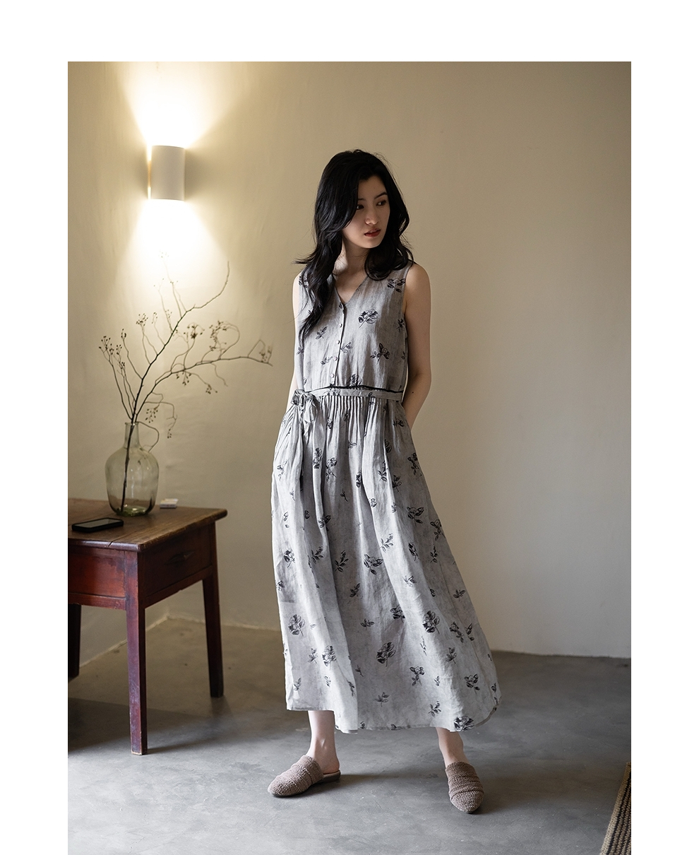 绽放328朵【海街日记】80支纯棉可调节肩带长款V领大摆吊带连衣裙