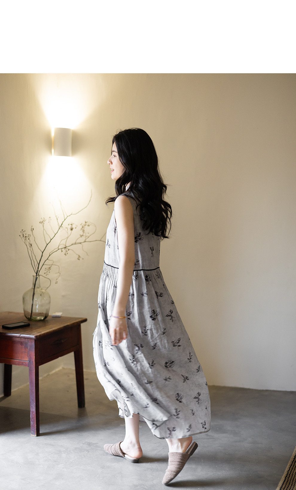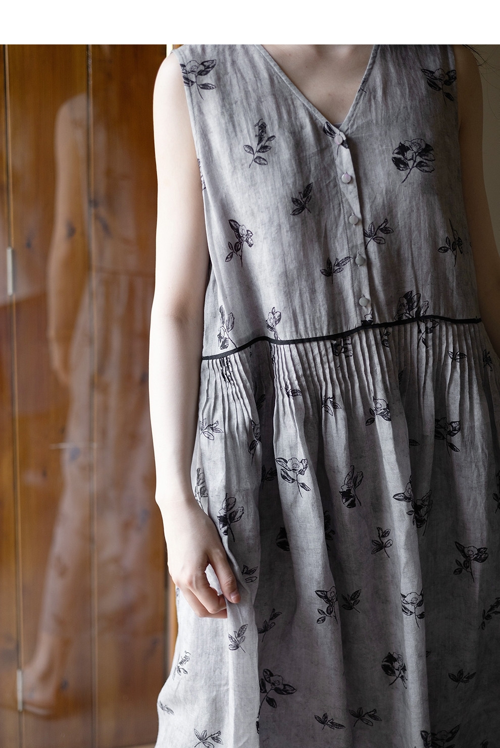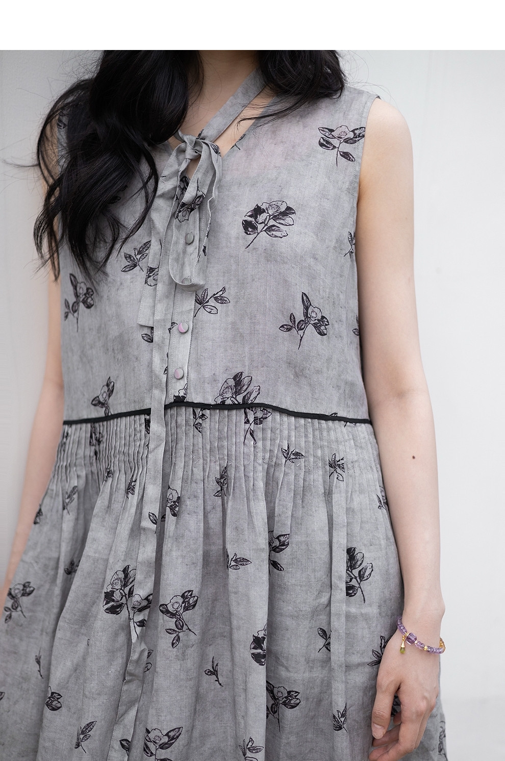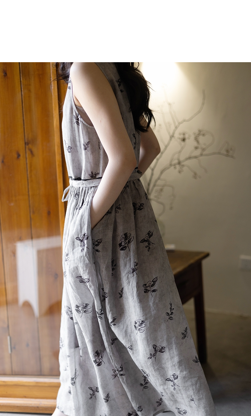 绽放328朵【海街日记】80支纯棉可调节肩带长款V领大摆吊带连衣裙
