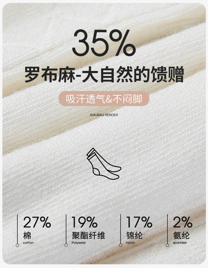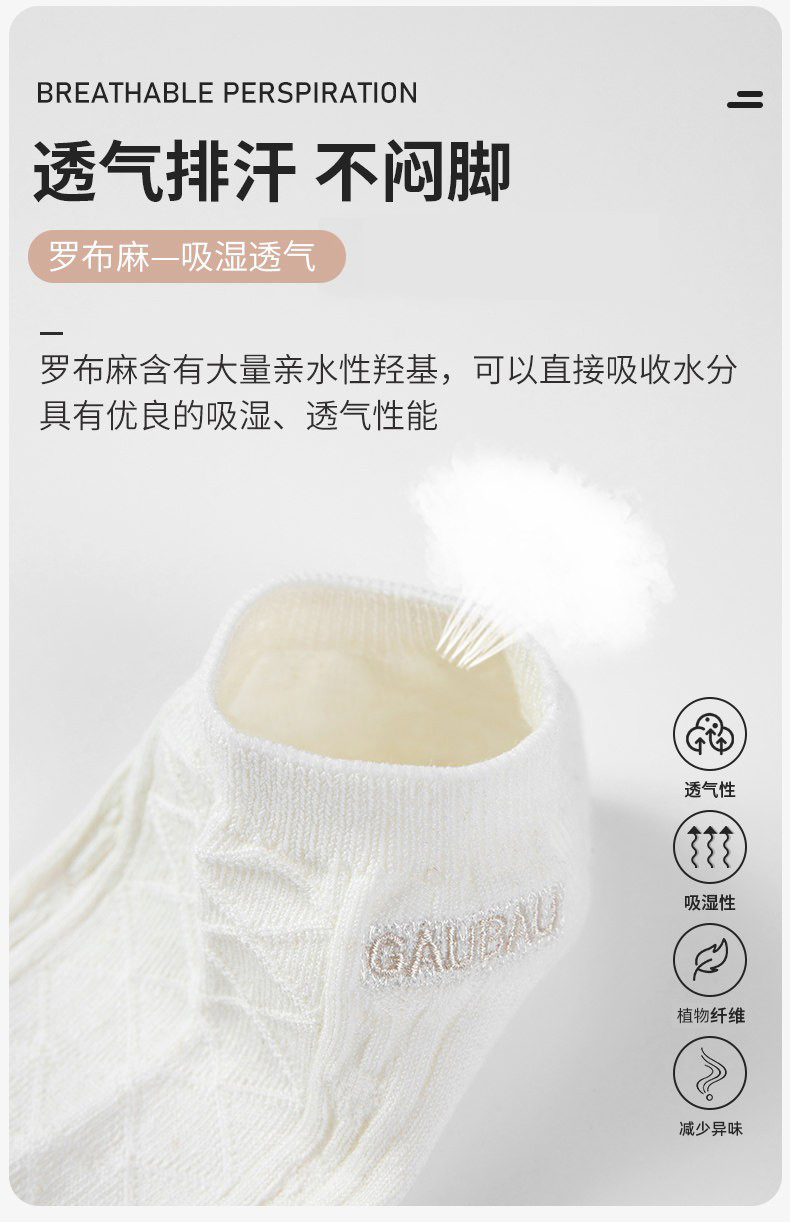 女士白色短袜罗布麻防臭吸湿透气船袜
