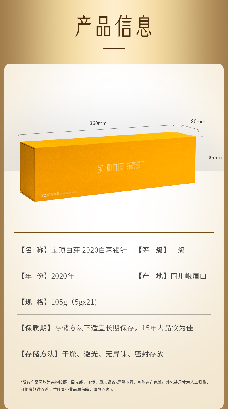 宝顶白芽茶高山白茶一级2020年白毫银针经典礼盒105g