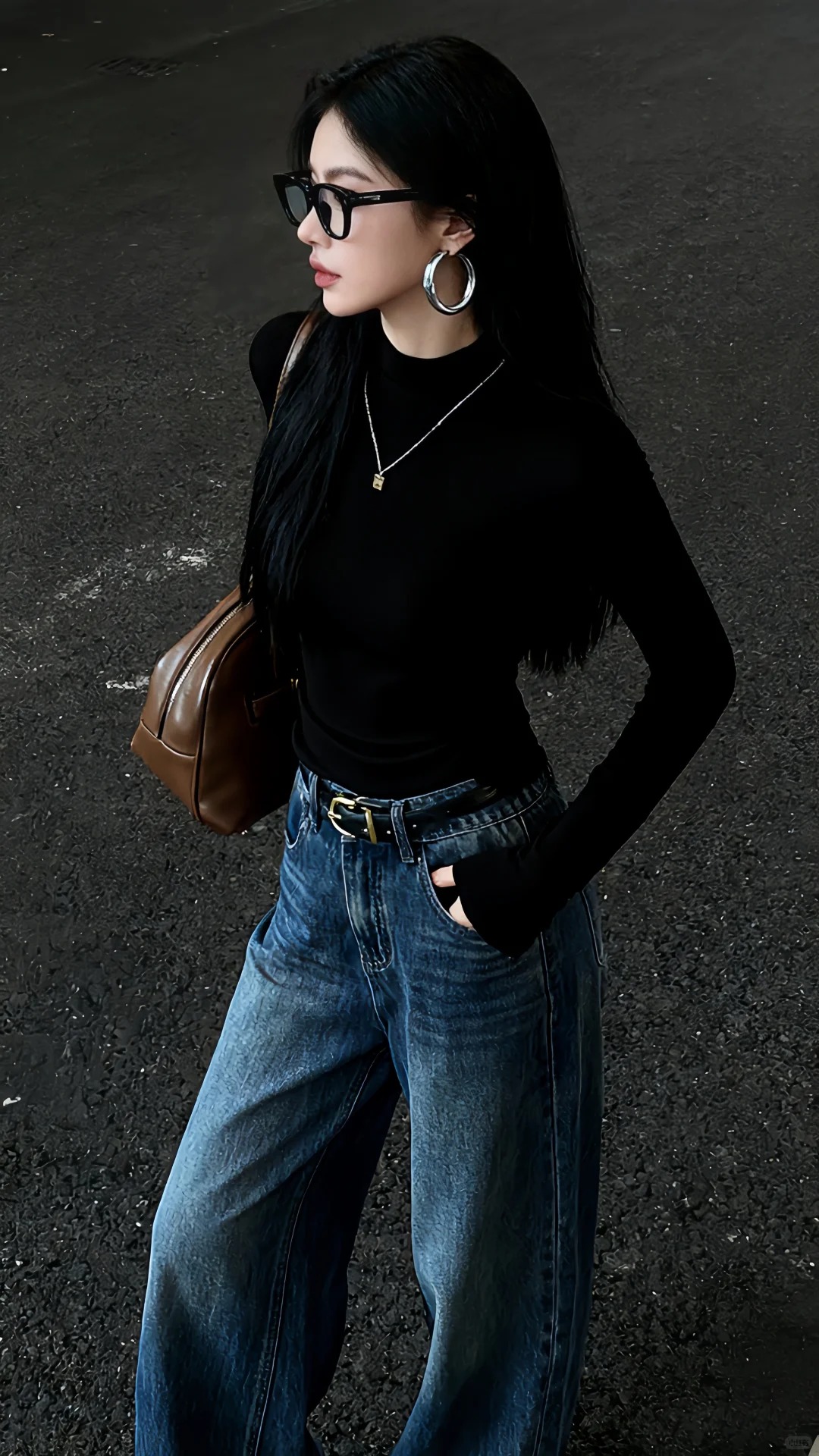 黑色打底衫是最百搭、最显瘦的,简单的搭配也很容易穿出高级感。