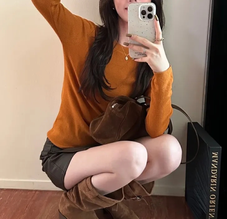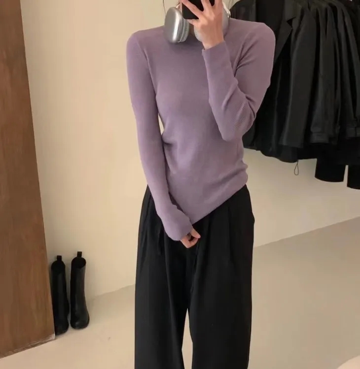 姐妹们也可以挑战一下颜色饱和度较高的打底衫,说不定你能穿出独一份的气质!