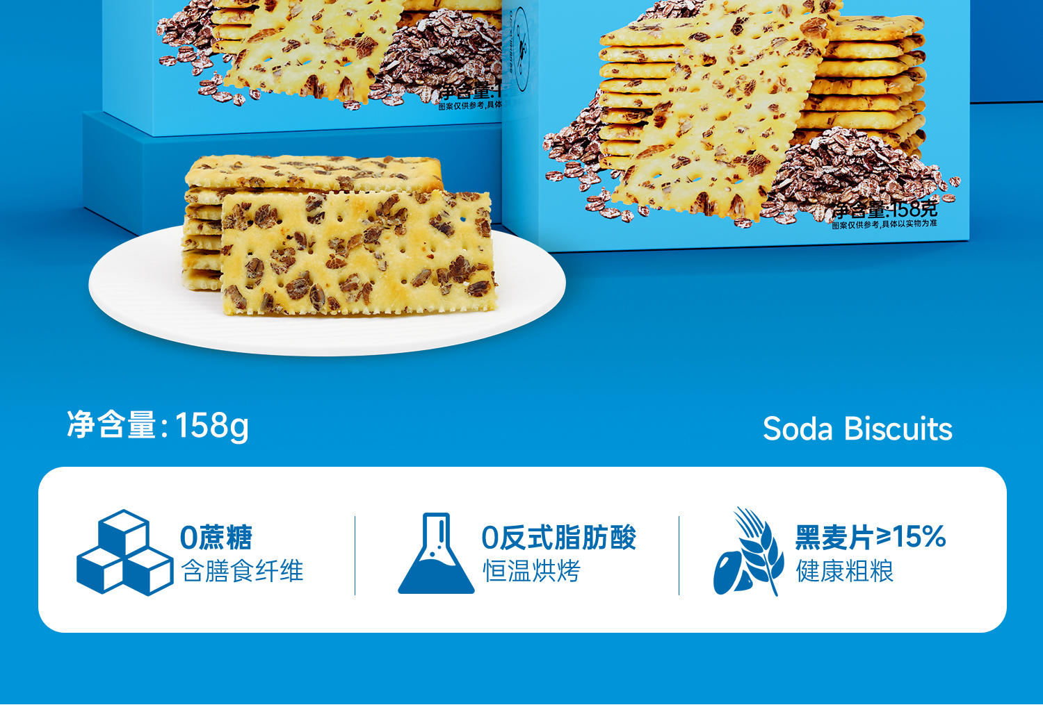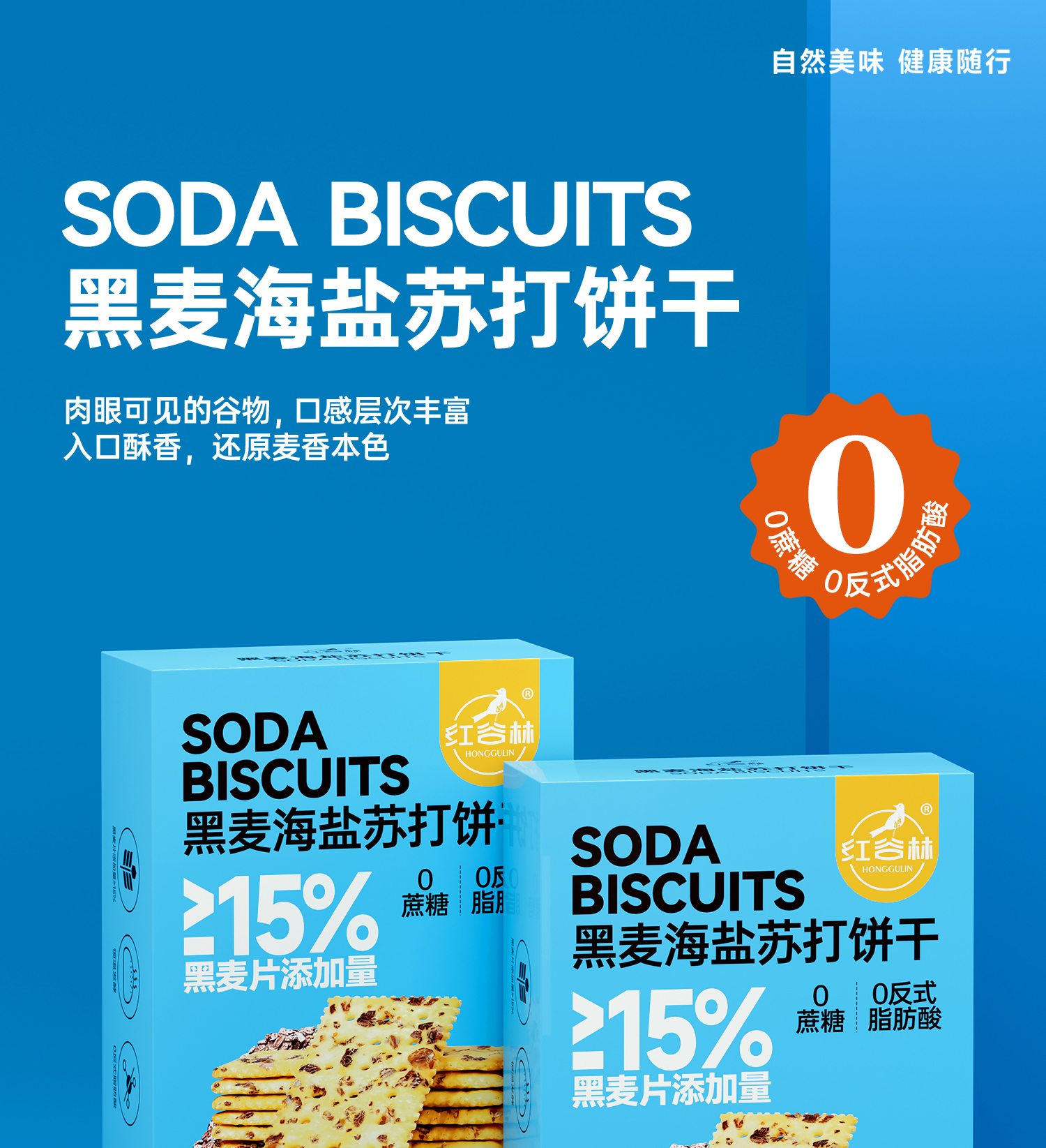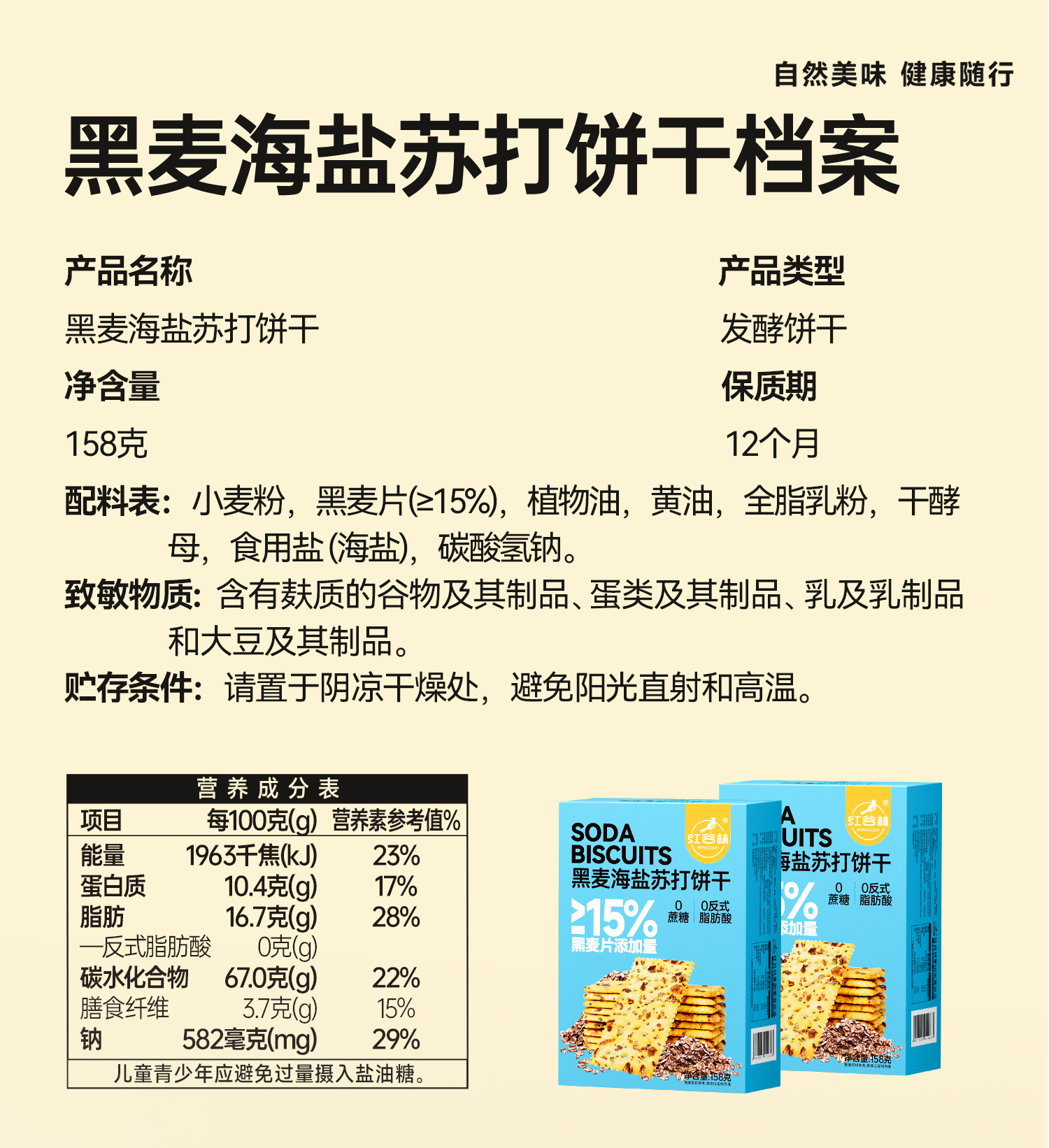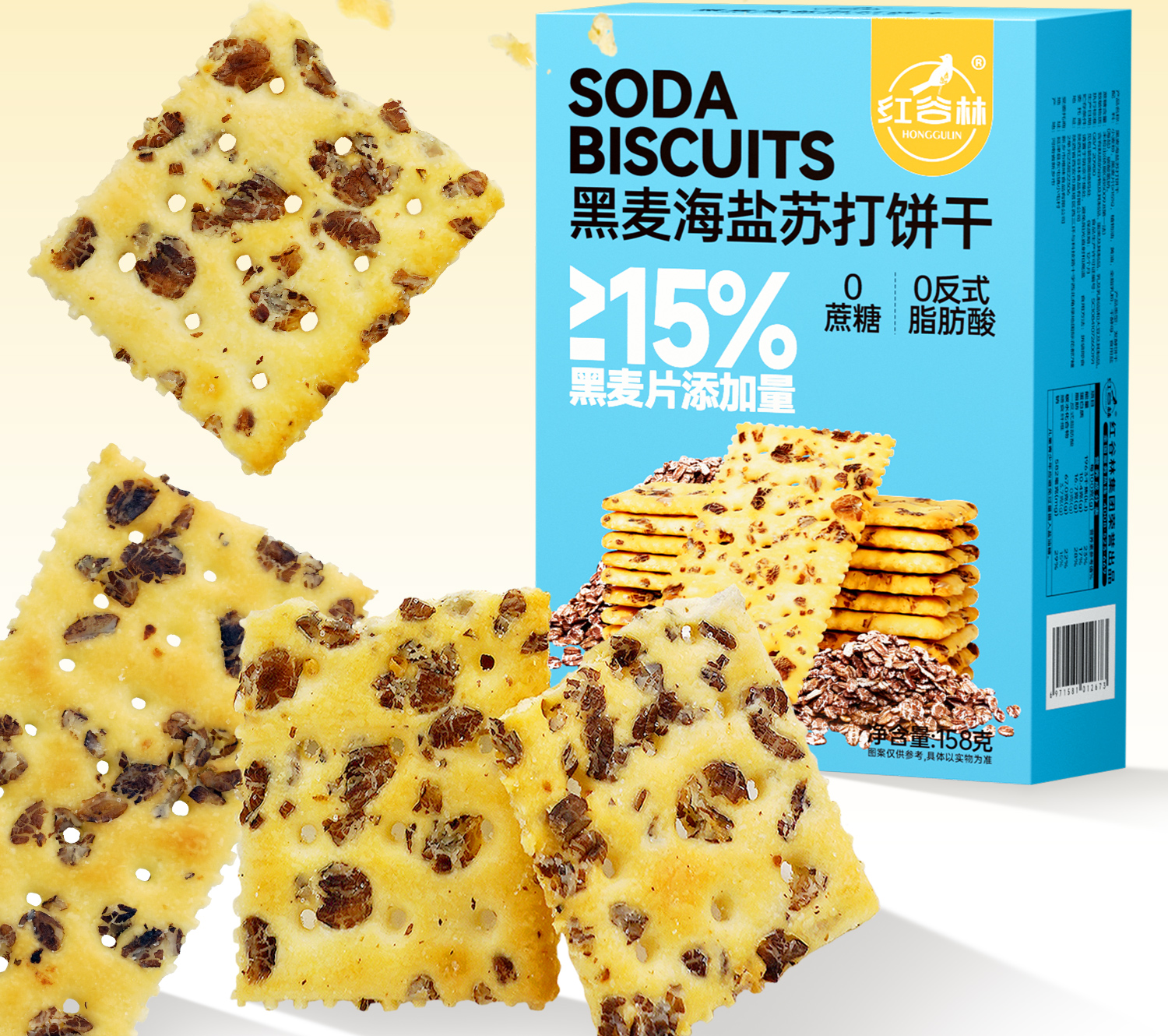 红谷林黑麦海盐苏打饼干158g咸味早餐追剧全麦饼干解馋休闲小零食