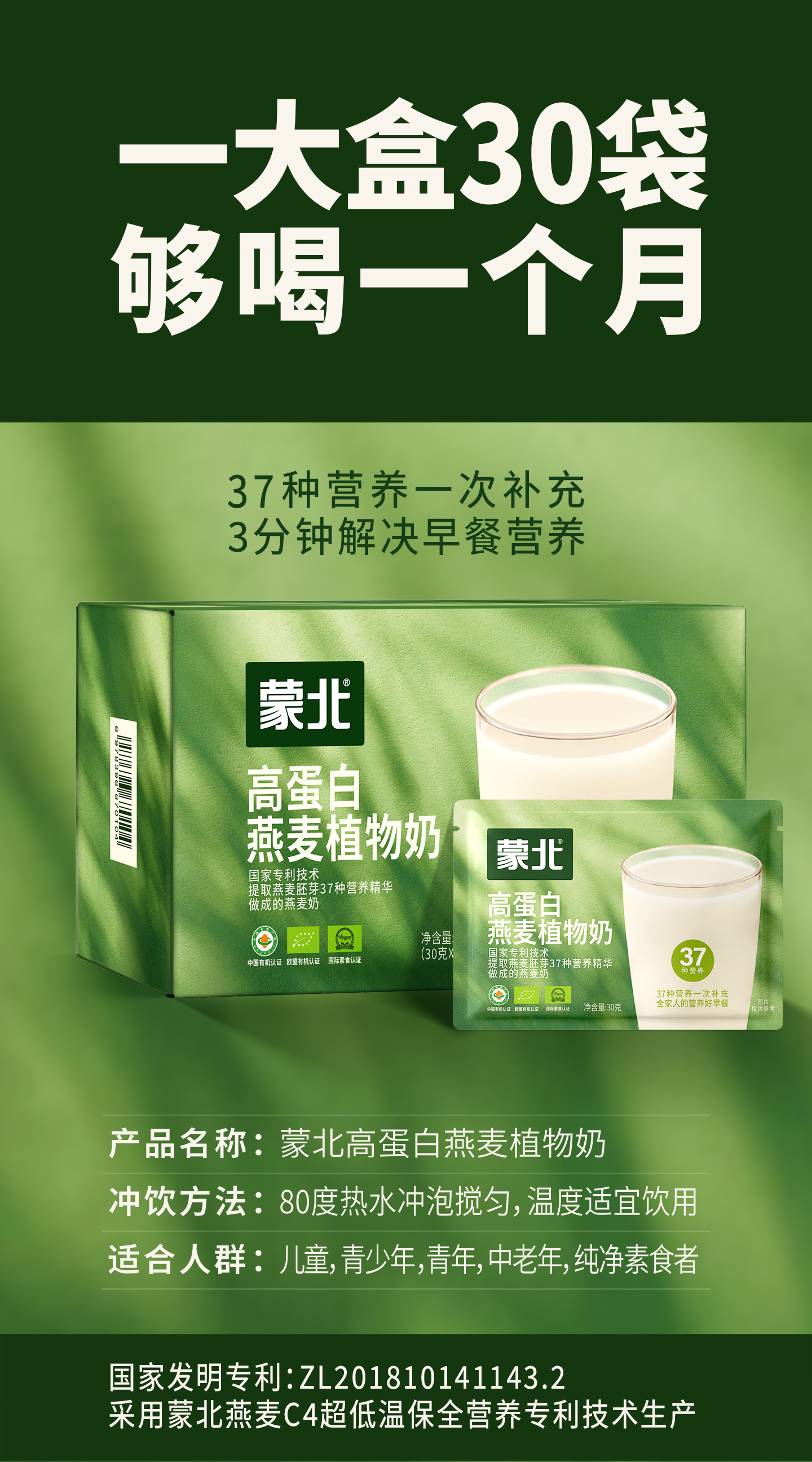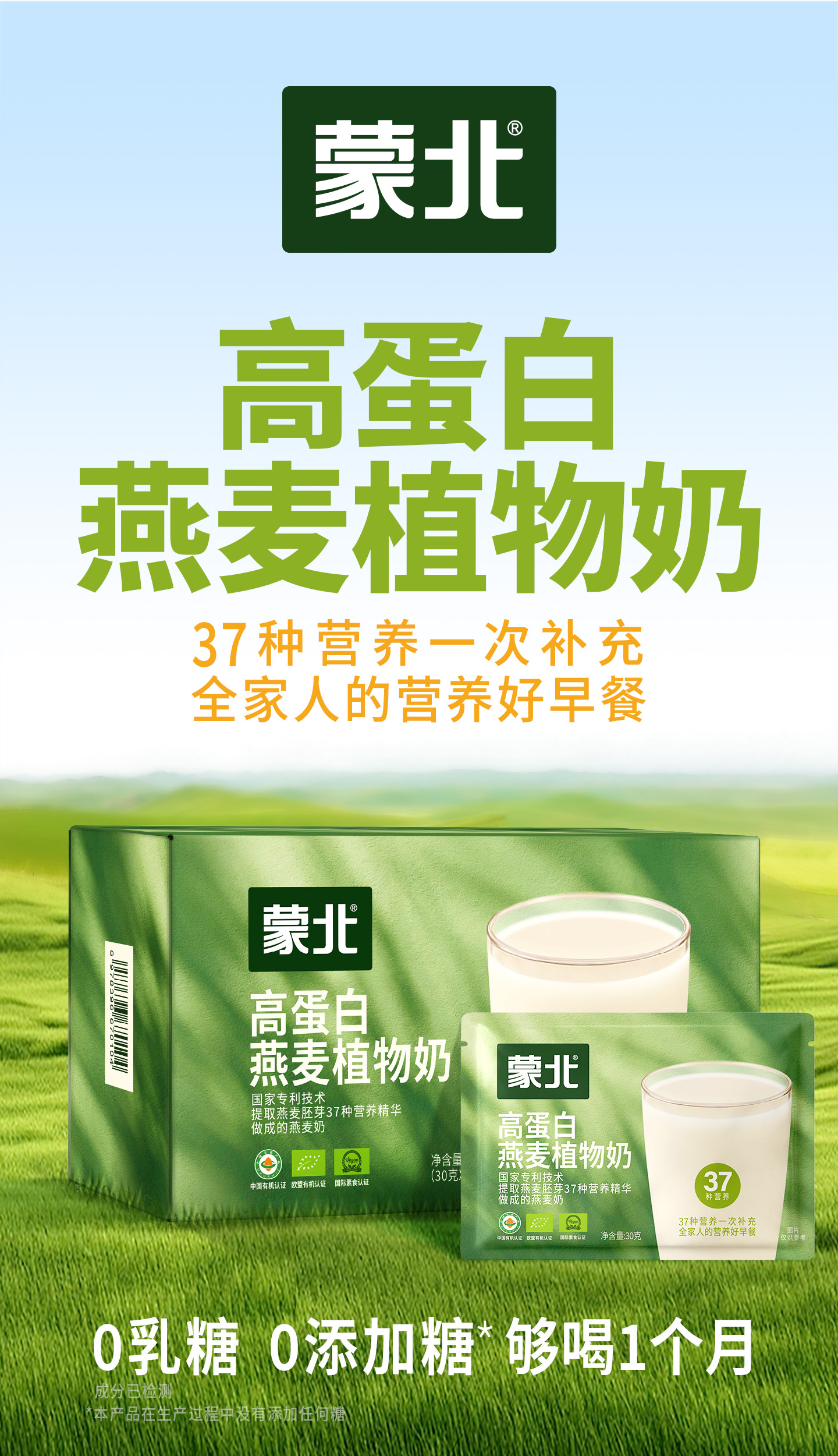 蒙北 高蛋白燕麦植物奶粉 1kg/桶、900g/盒【30g*30袋】