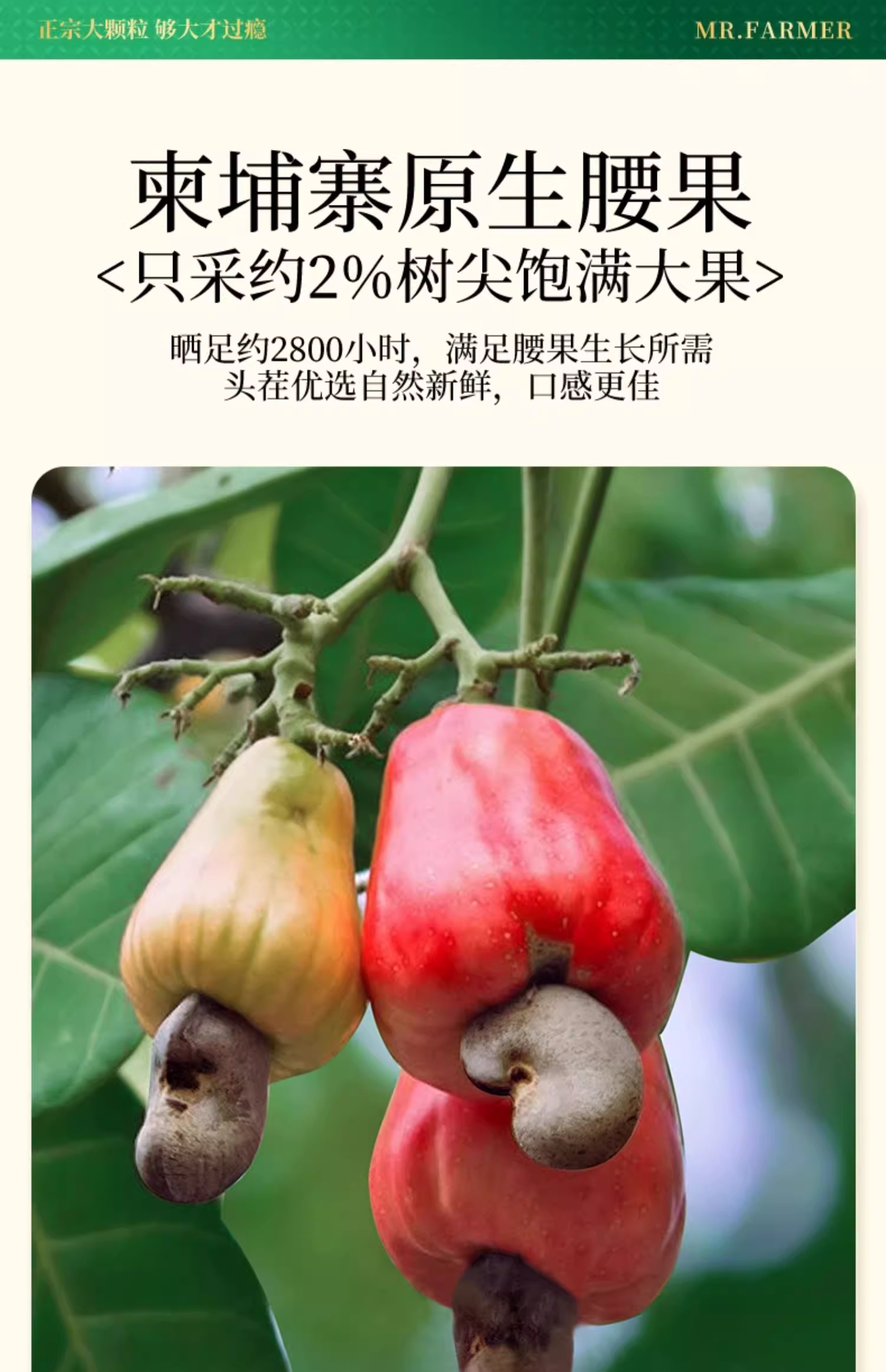 新农哥品质大颗粒A170特大号紫衣腰果500g*2罐坚果