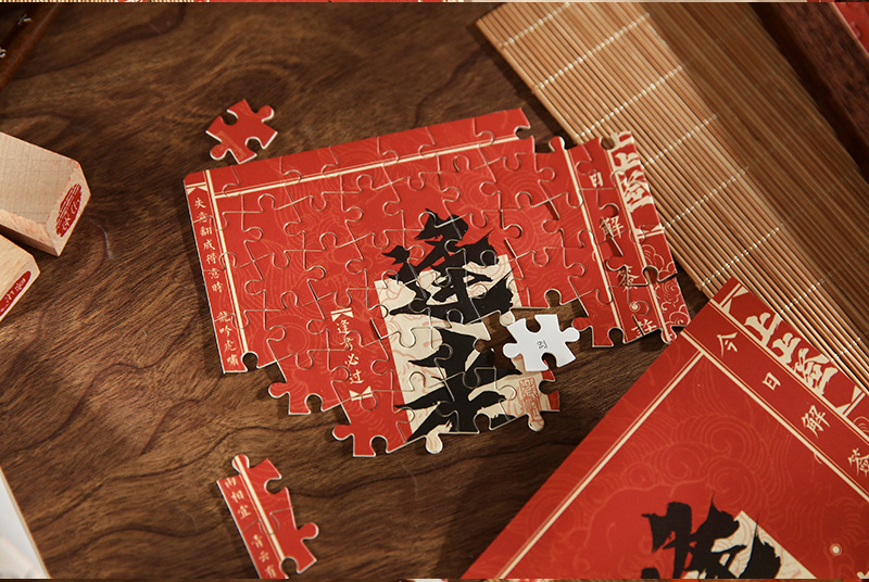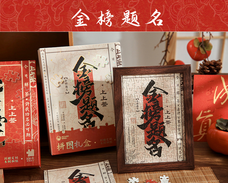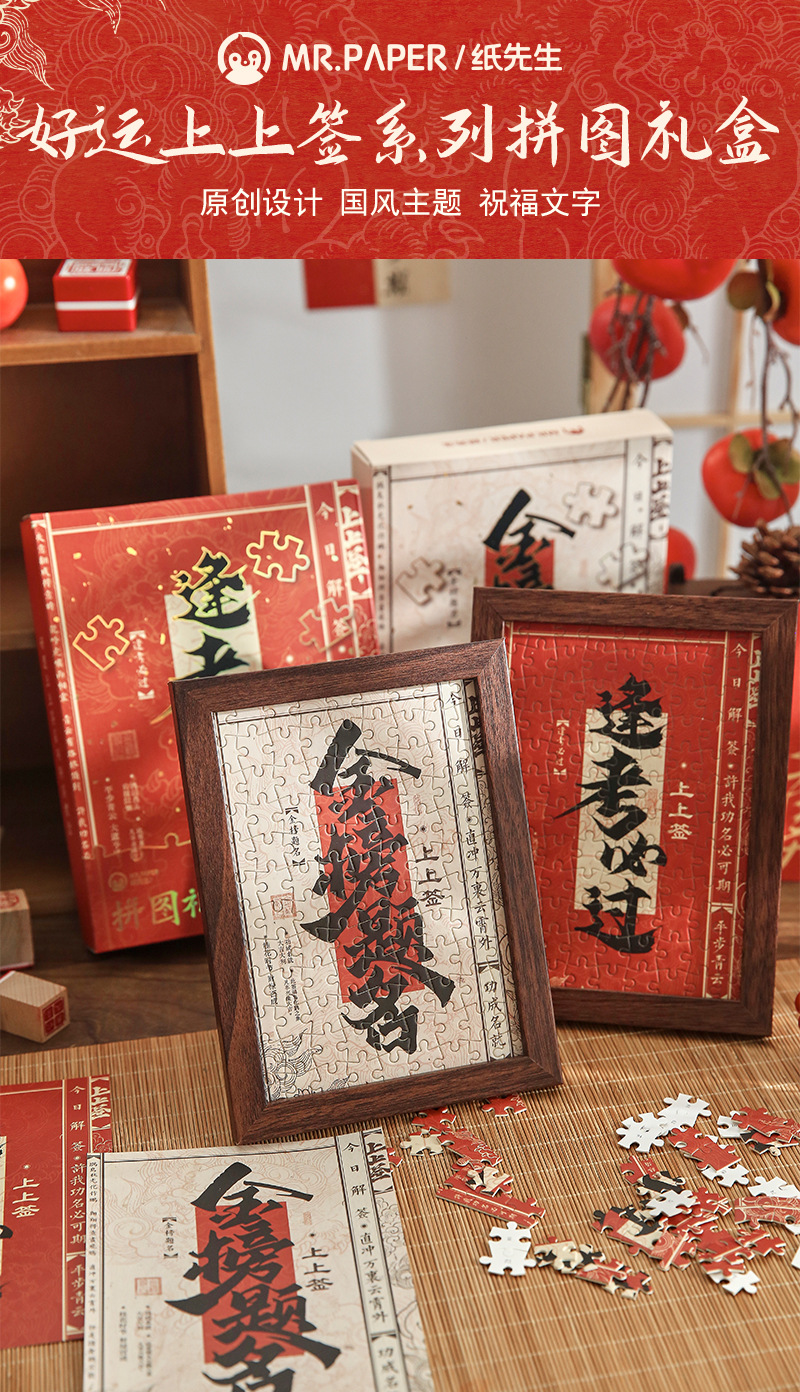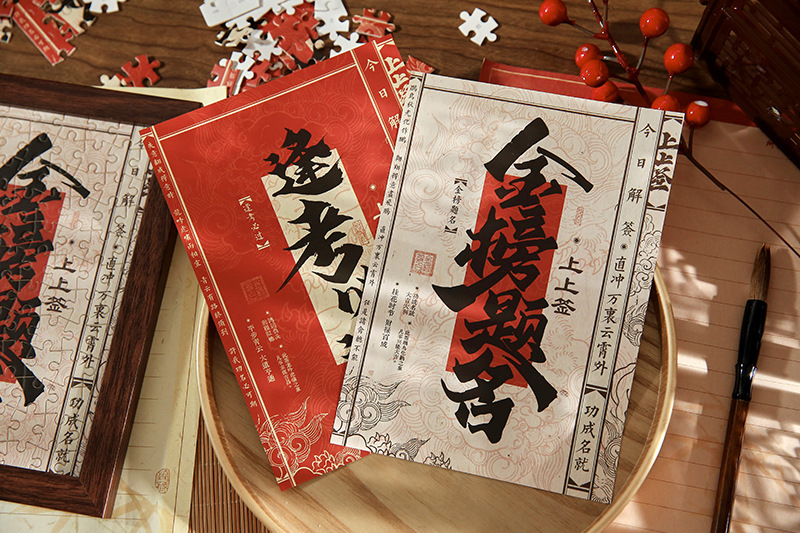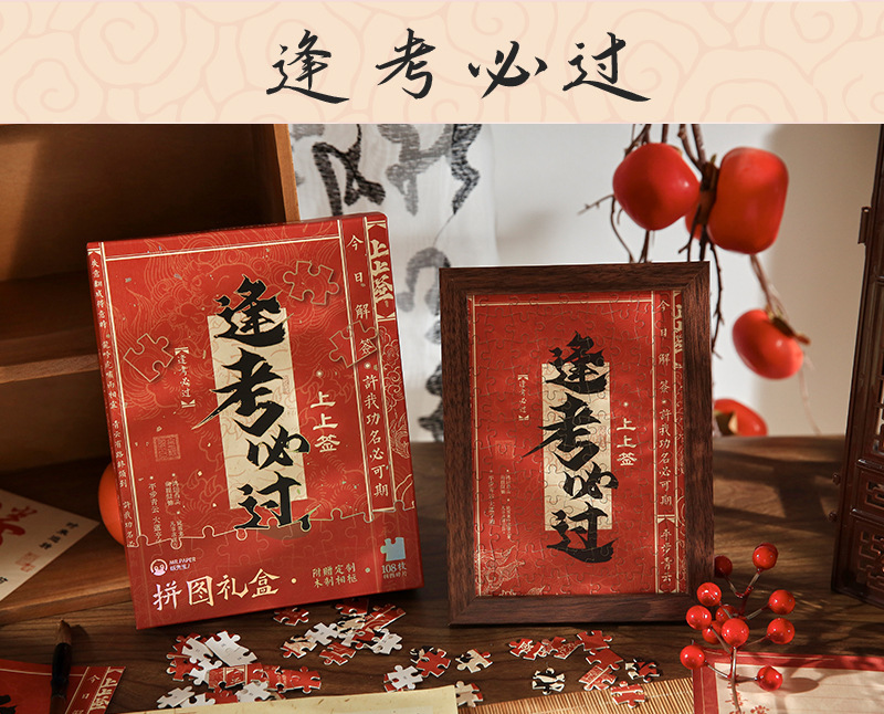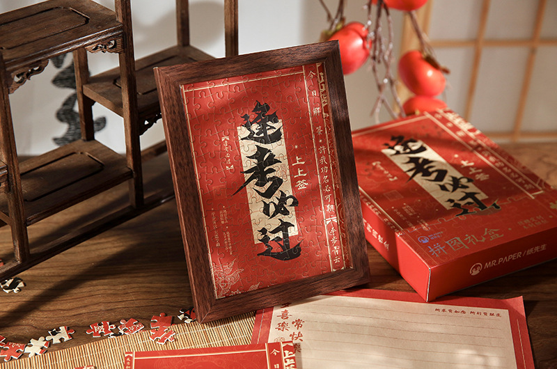 【19.9抢❗️国潮考试季拼图礼盒】拼出好运拼出好成绩,好寓意好运上上签,烫金工艺自带质感相框,国风文字相框拼图桌面摆件新年礼盒QQ年货礼盒
