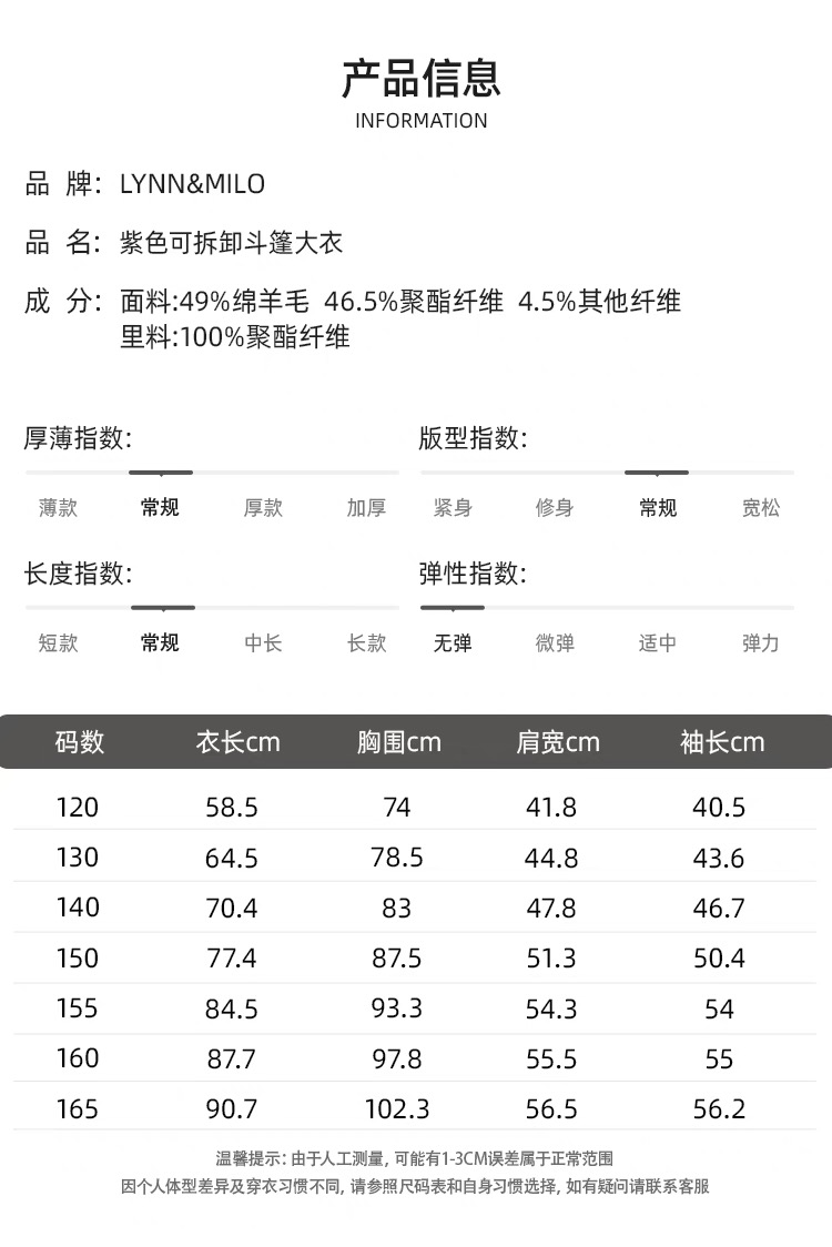 【春上新】8楼琳麦罗 LYNN&MILO 紫色可拆卸斗篷大衣