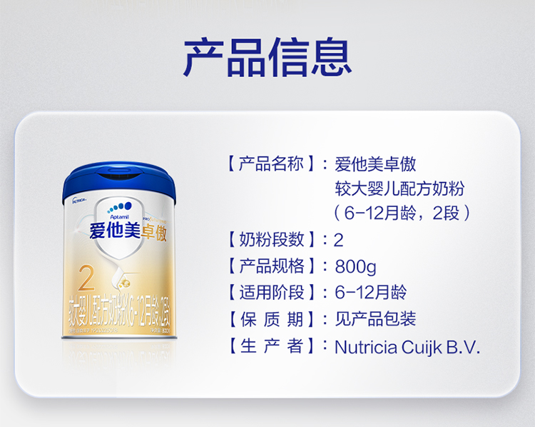 爱他美卓傲较大婴儿配方奶粉2段800g(6-12月龄)