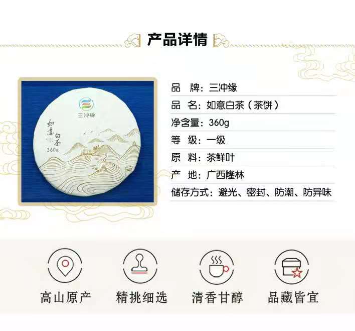 如意白茶--广西隆林三冲茶叶如意白茶饼高山白毫茶360g/盒