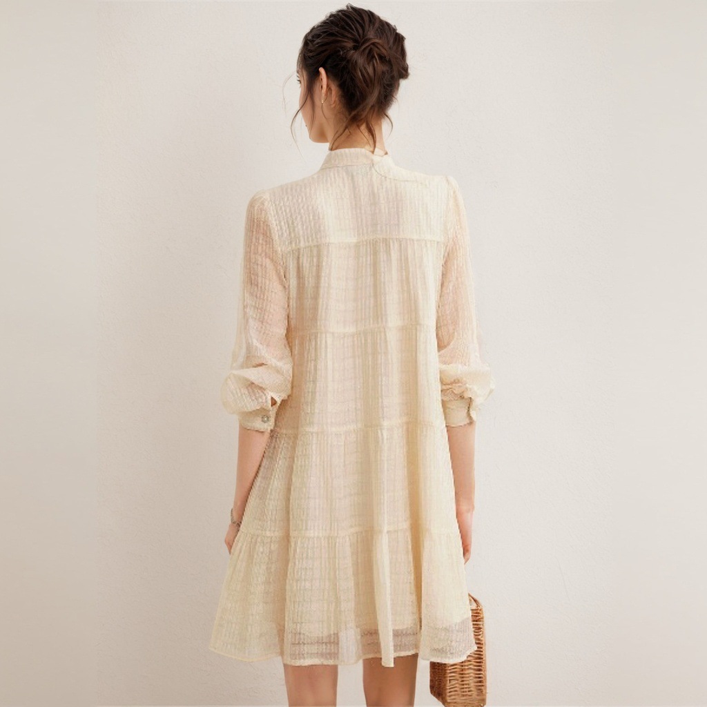 AHM mnm5011系带立领蛋糕裙A型钉珠装饰连衣裙 商品图4