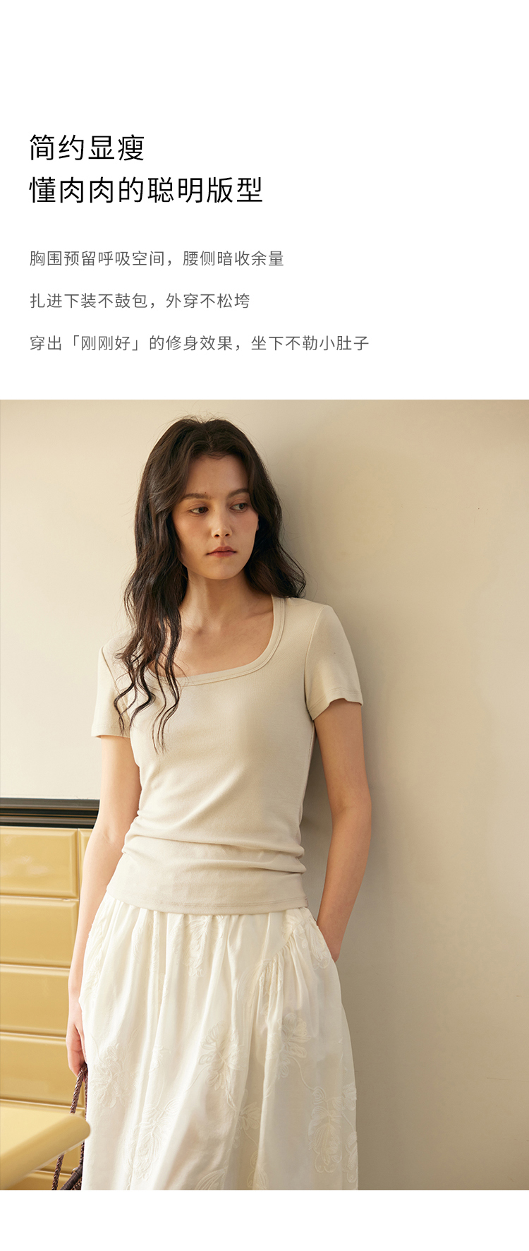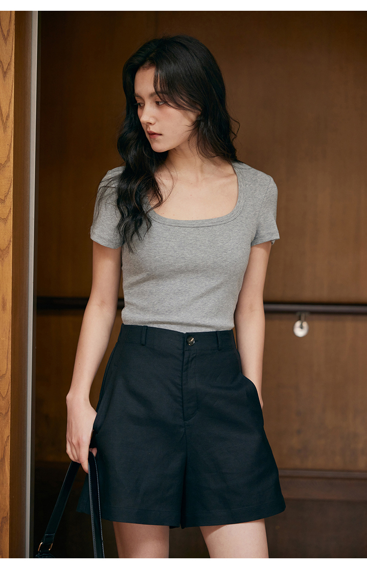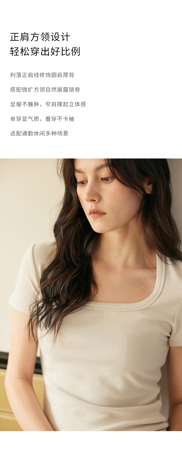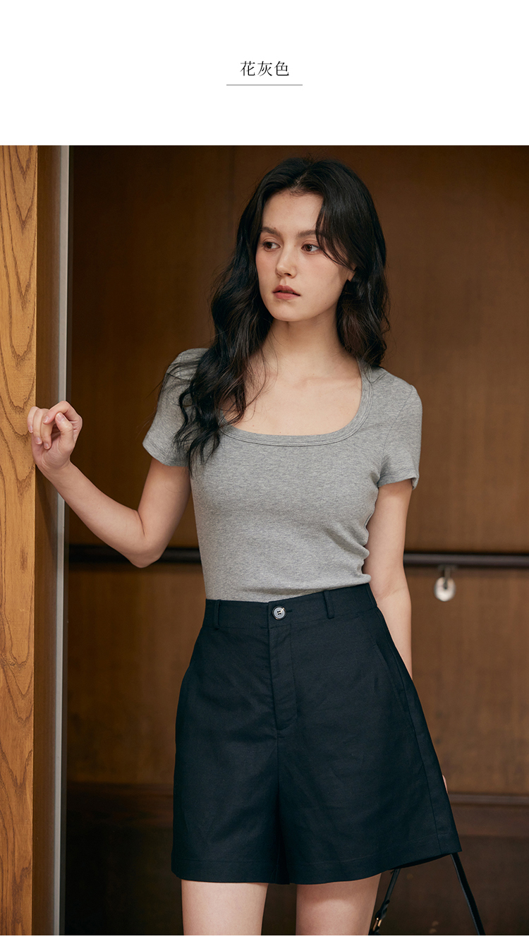 HeyDress正肩方领短袖t恤女夏季宽松休闲半袖灰色百搭通勤短上衣