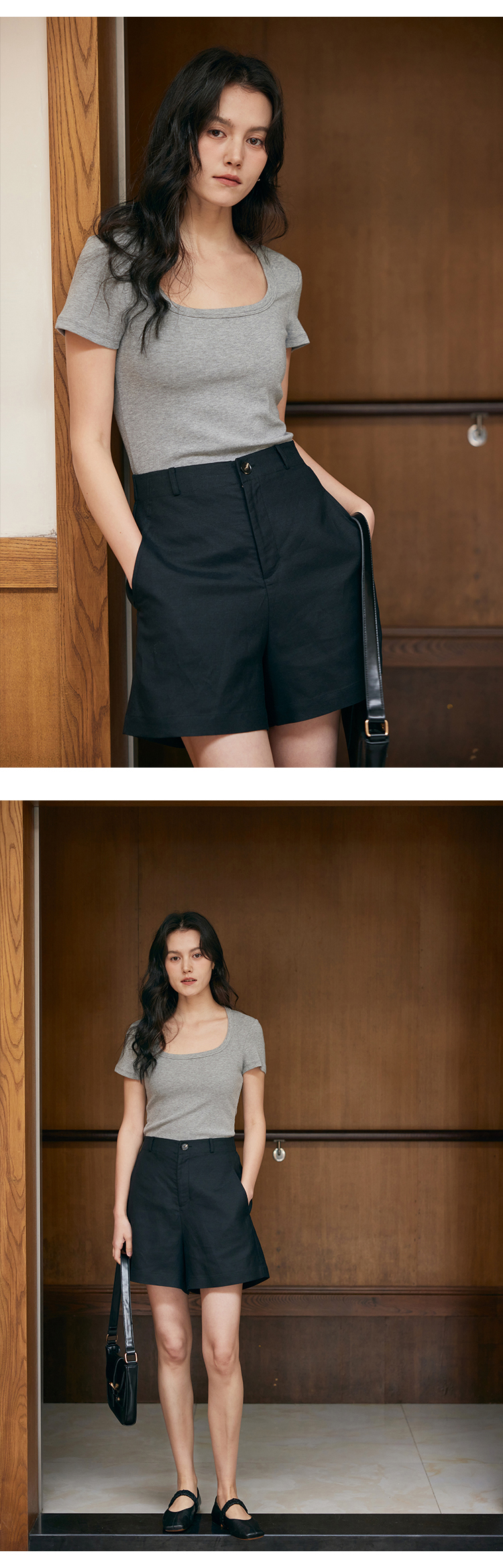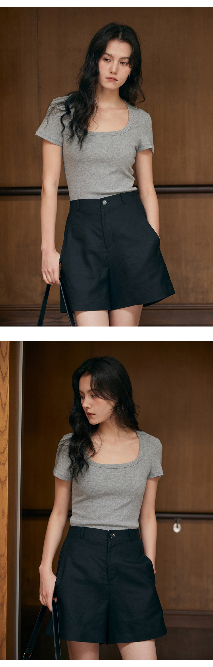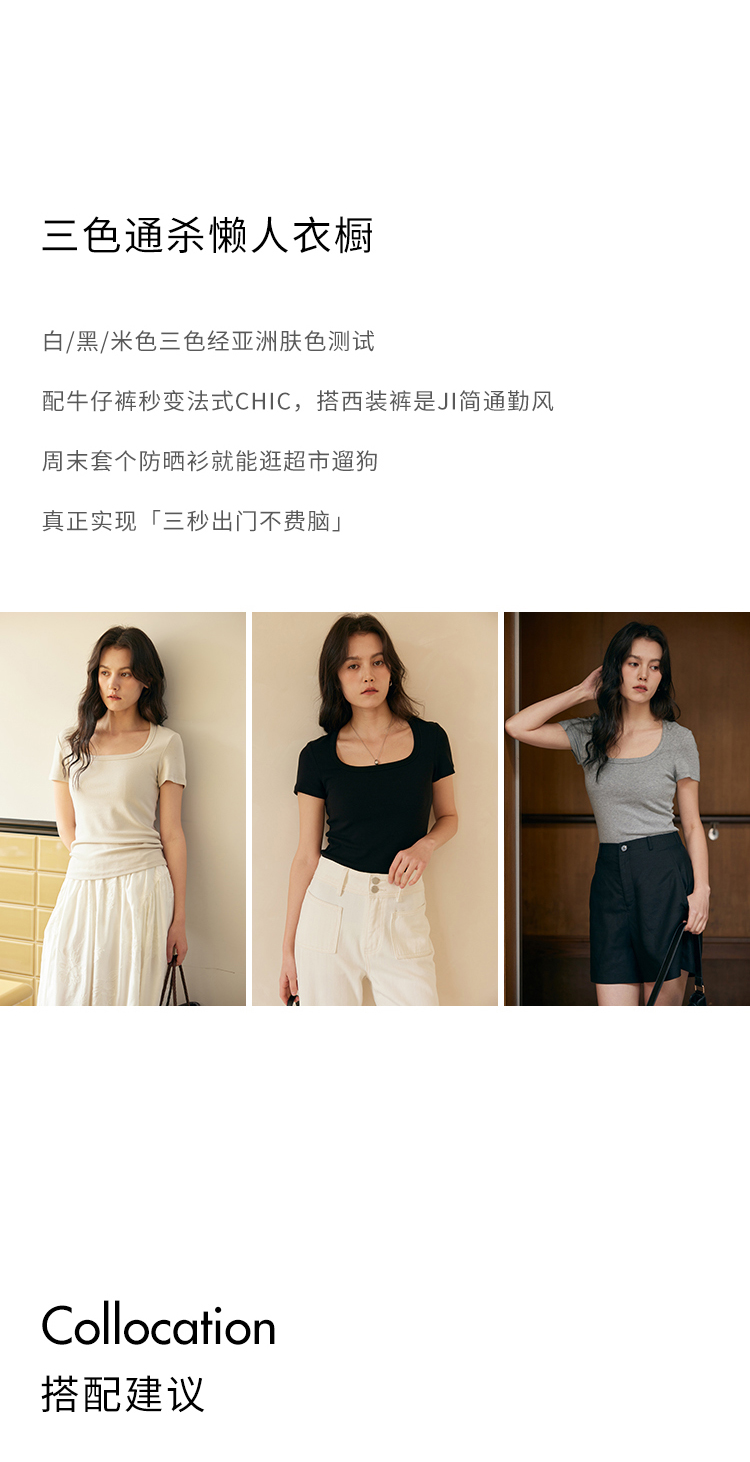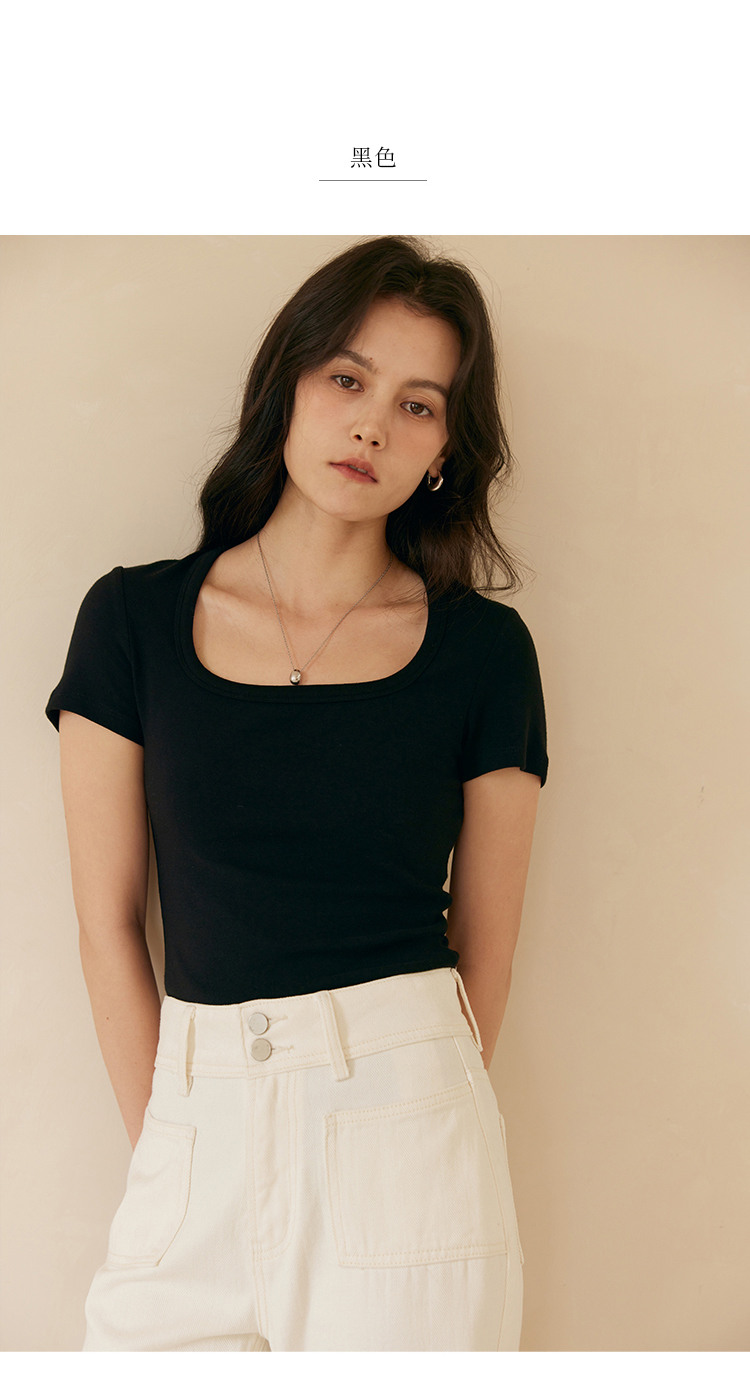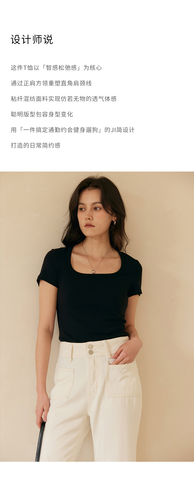 HeyDress正肩方领短袖t恤女夏季宽松休闲半袖灰色百搭通勤短上衣