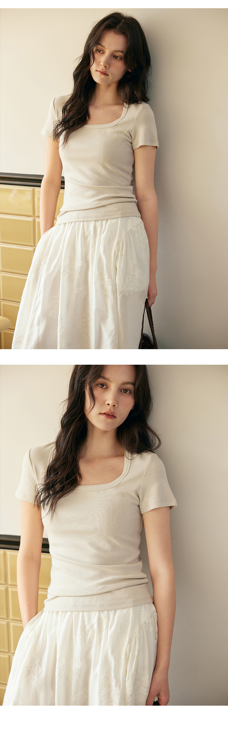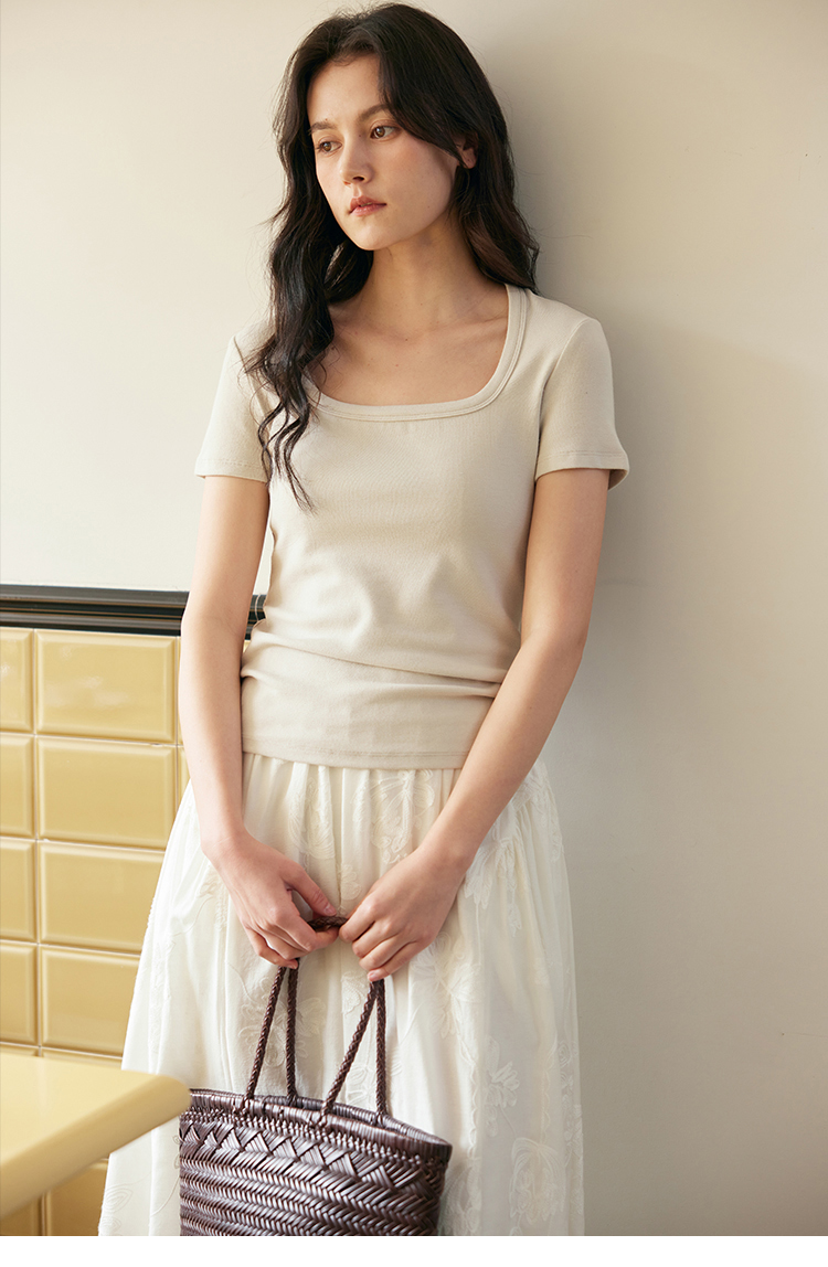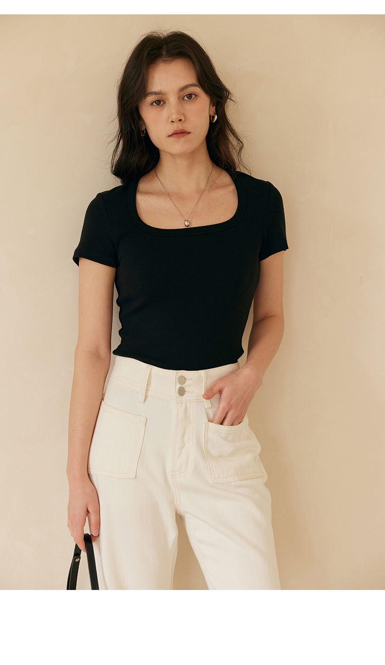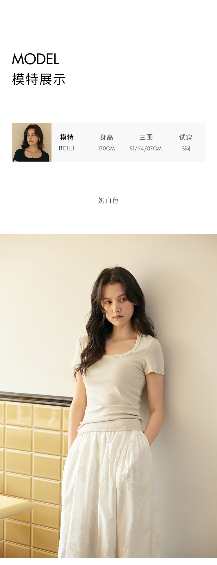 HeyDress正肩方领短袖t恤女夏季宽松休闲半袖灰色百搭通勤短上衣