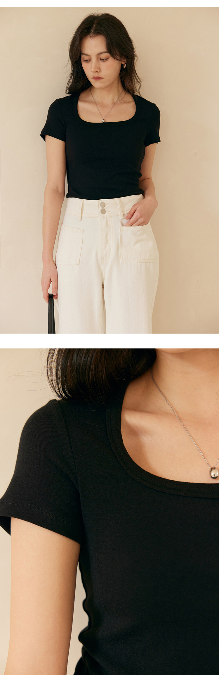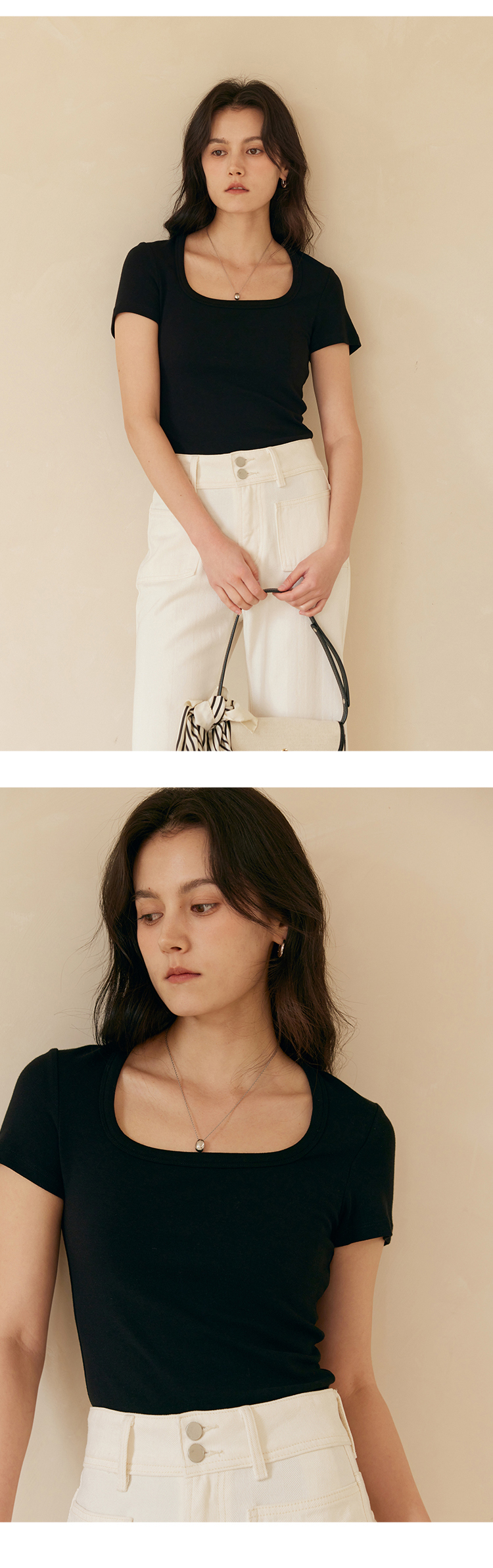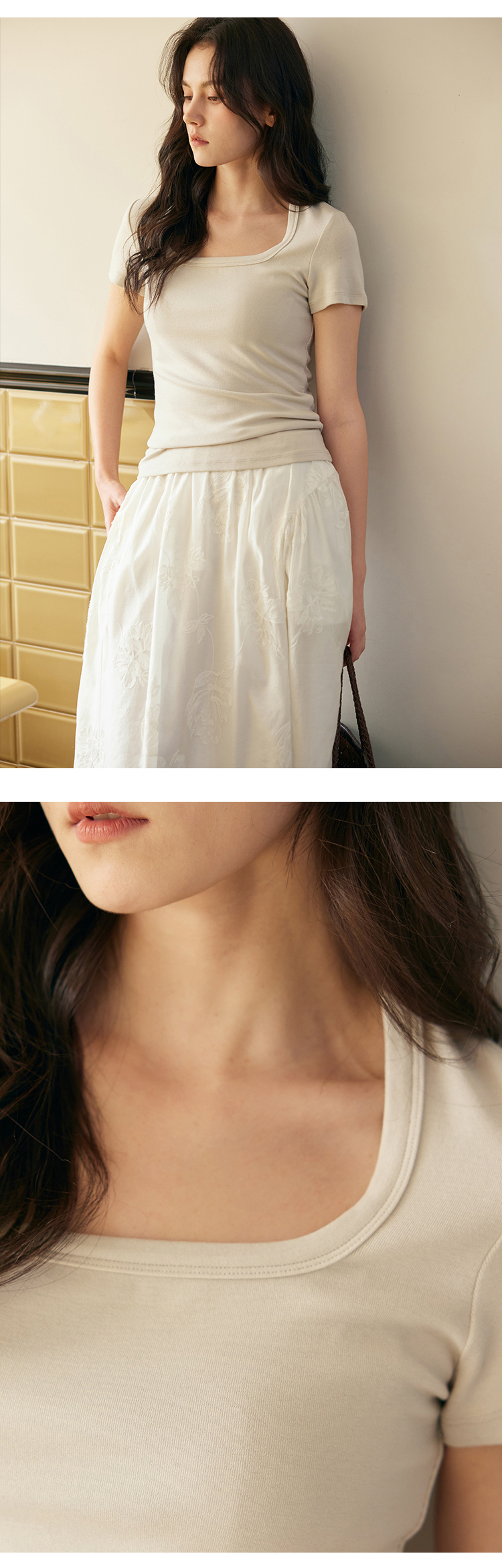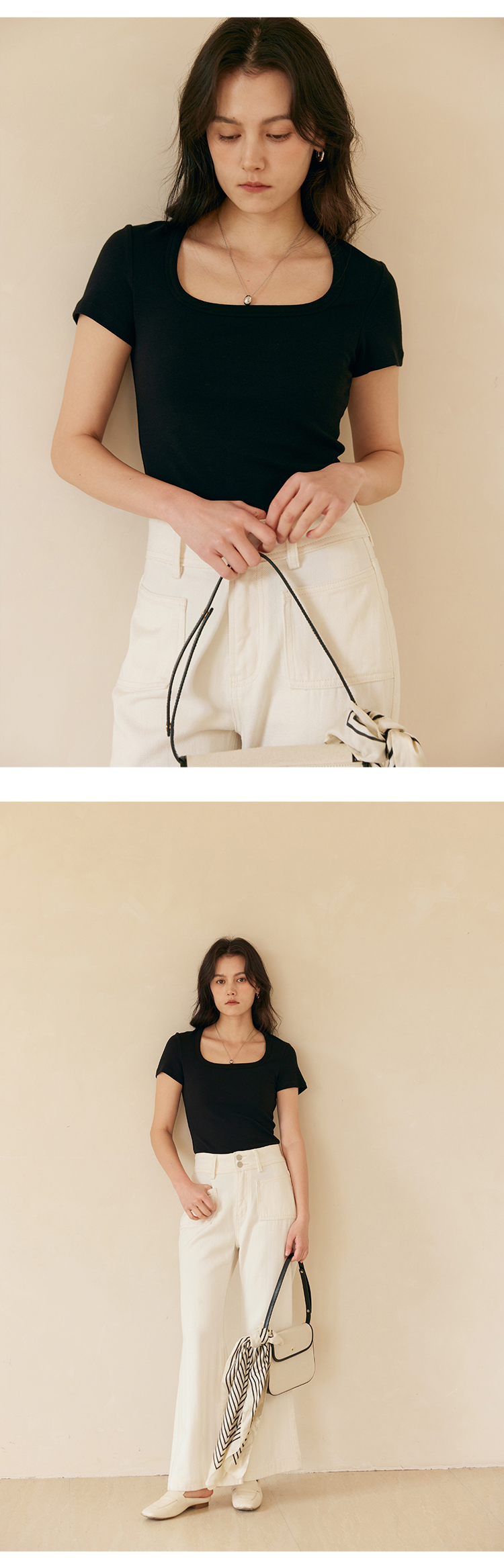 HeyDress正肩方领短袖t恤女夏季宽松休闲半袖灰色百搭通勤短上衣