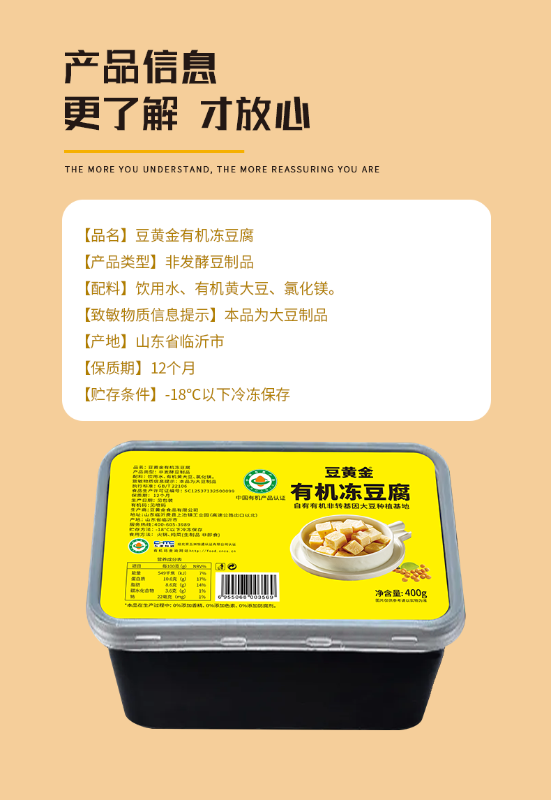 豆黄金有机冻豆腐400g*5盒