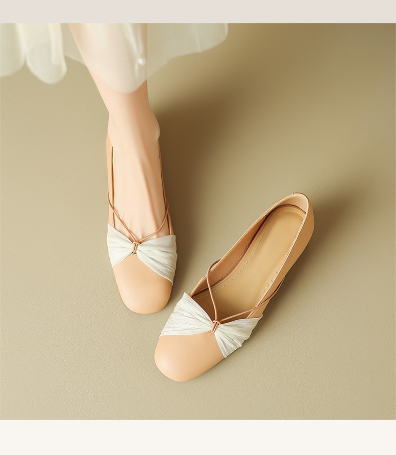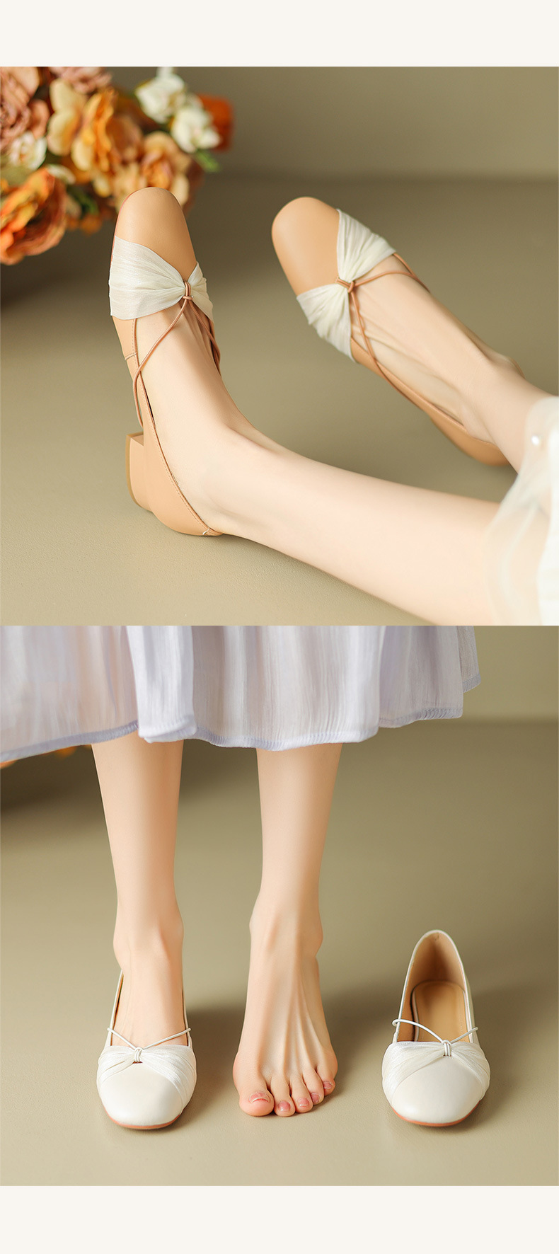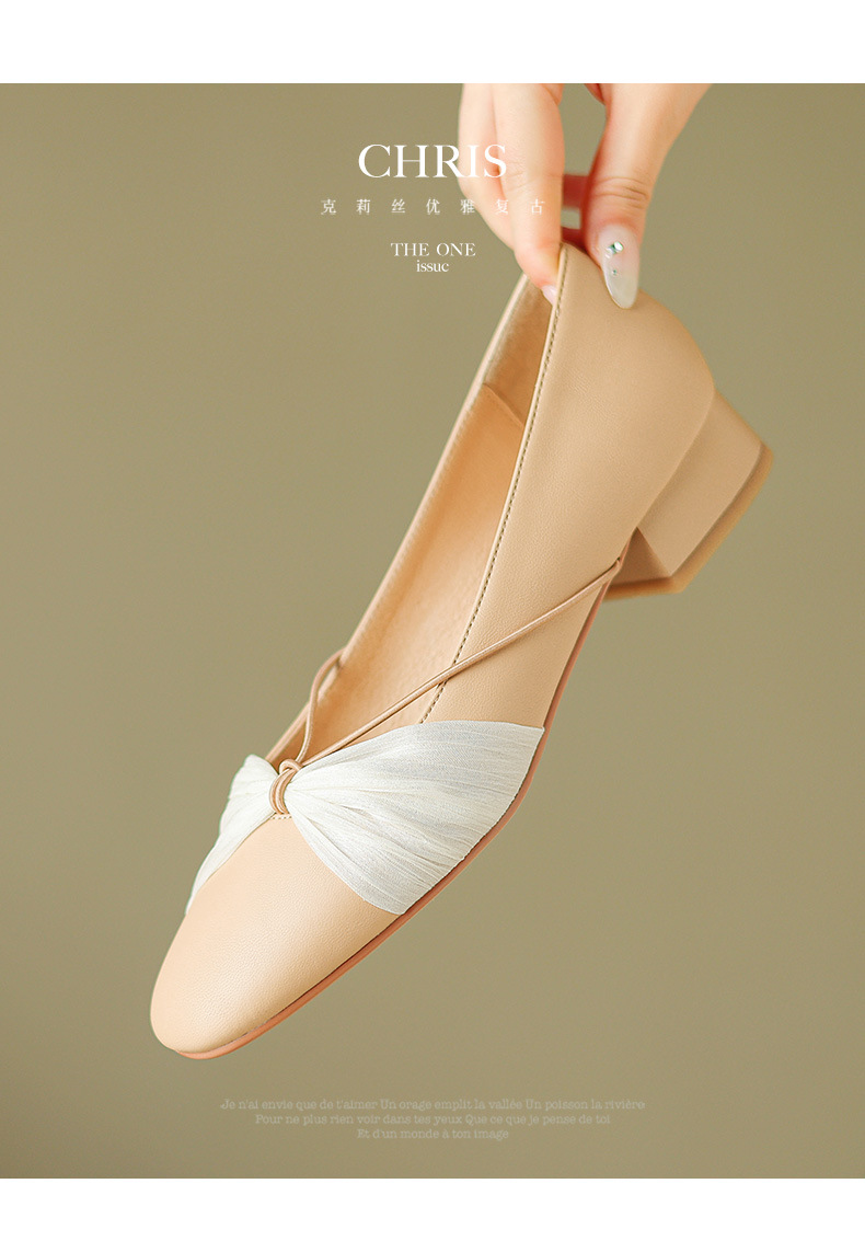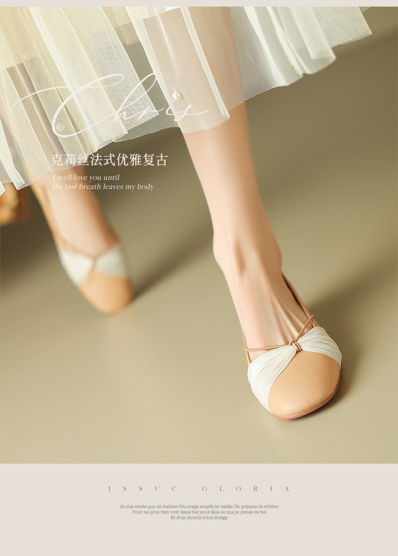 OLD-M7289方头银色单鞋蝴蝶结玛丽珍鞋子女5cm小个子拼色芭蕾舞鞋女外穿女