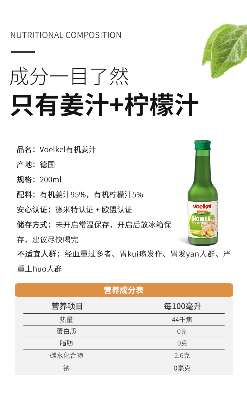 Voelkel有机姜汁原浆德国进口