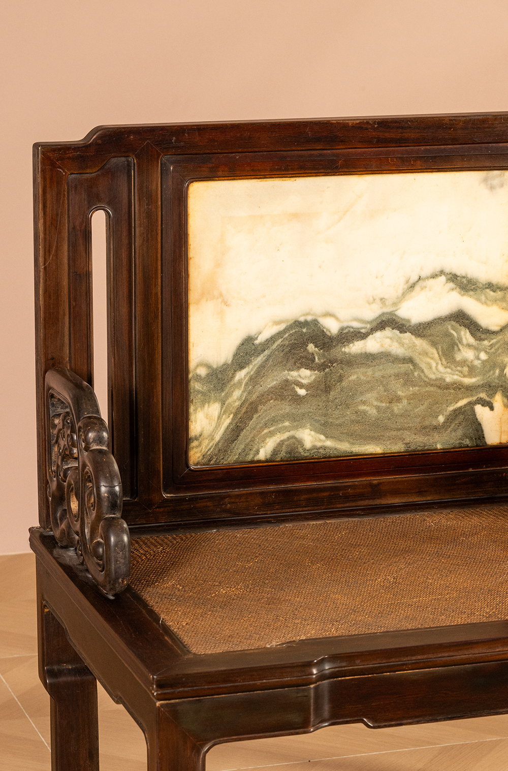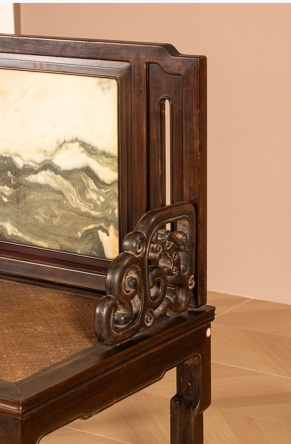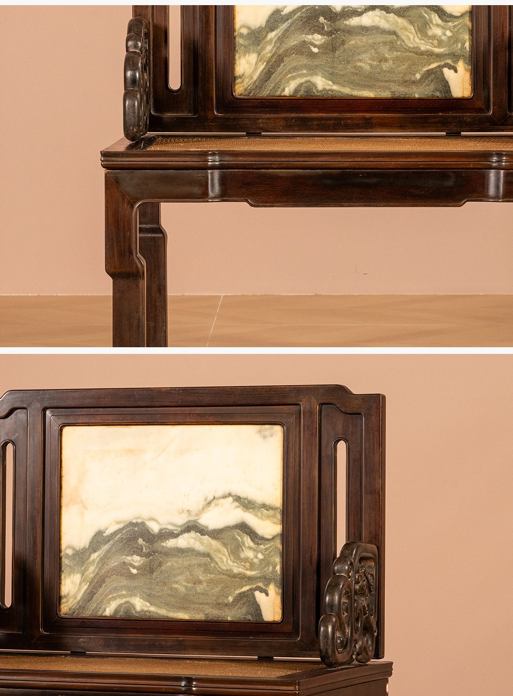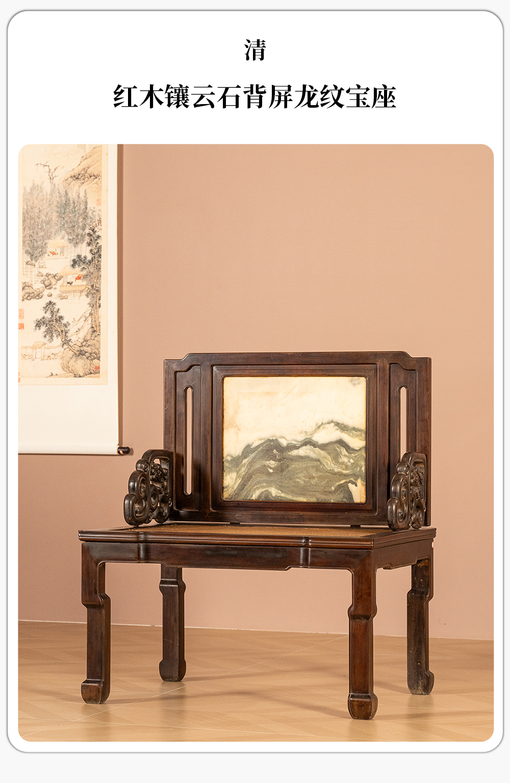 清代 红木镶云石背屏龙纹宝座