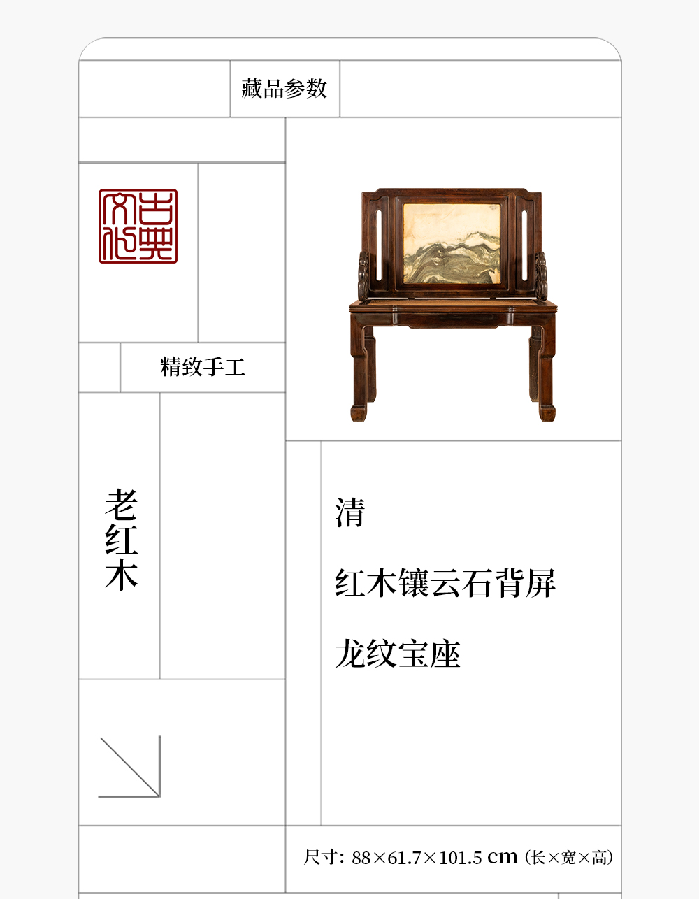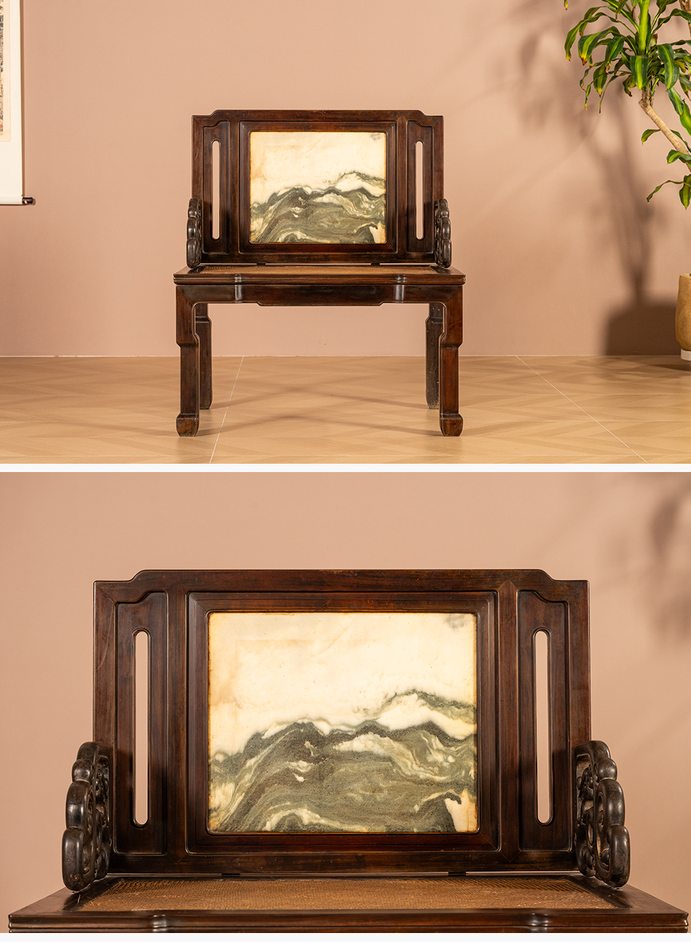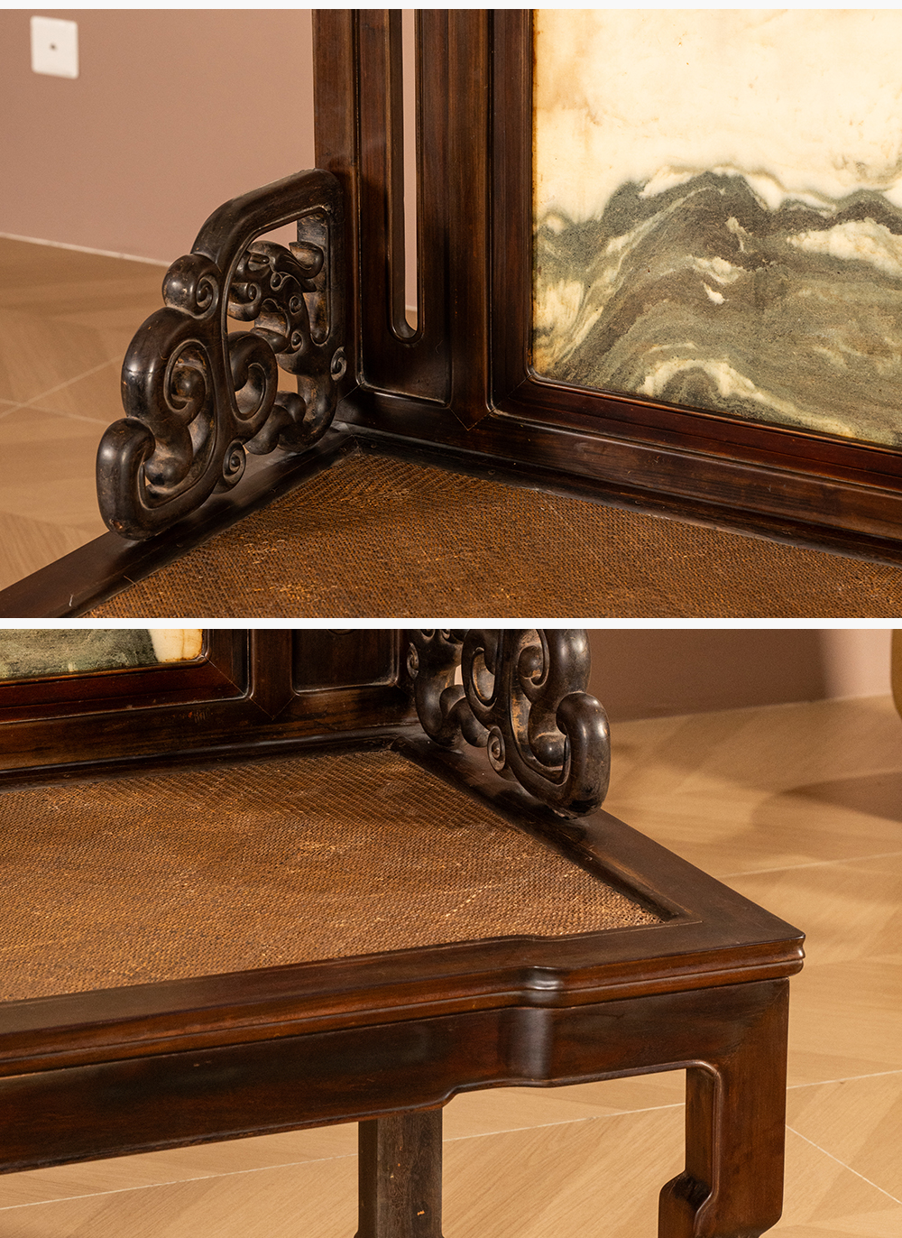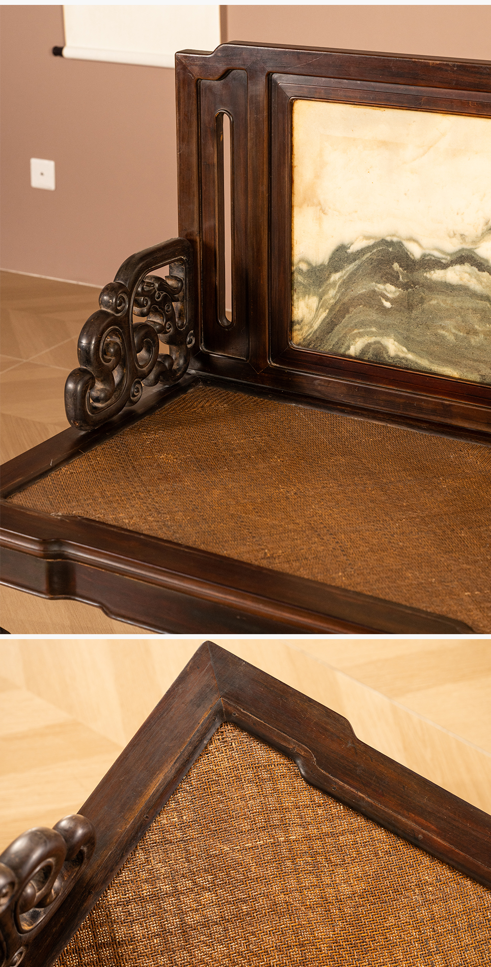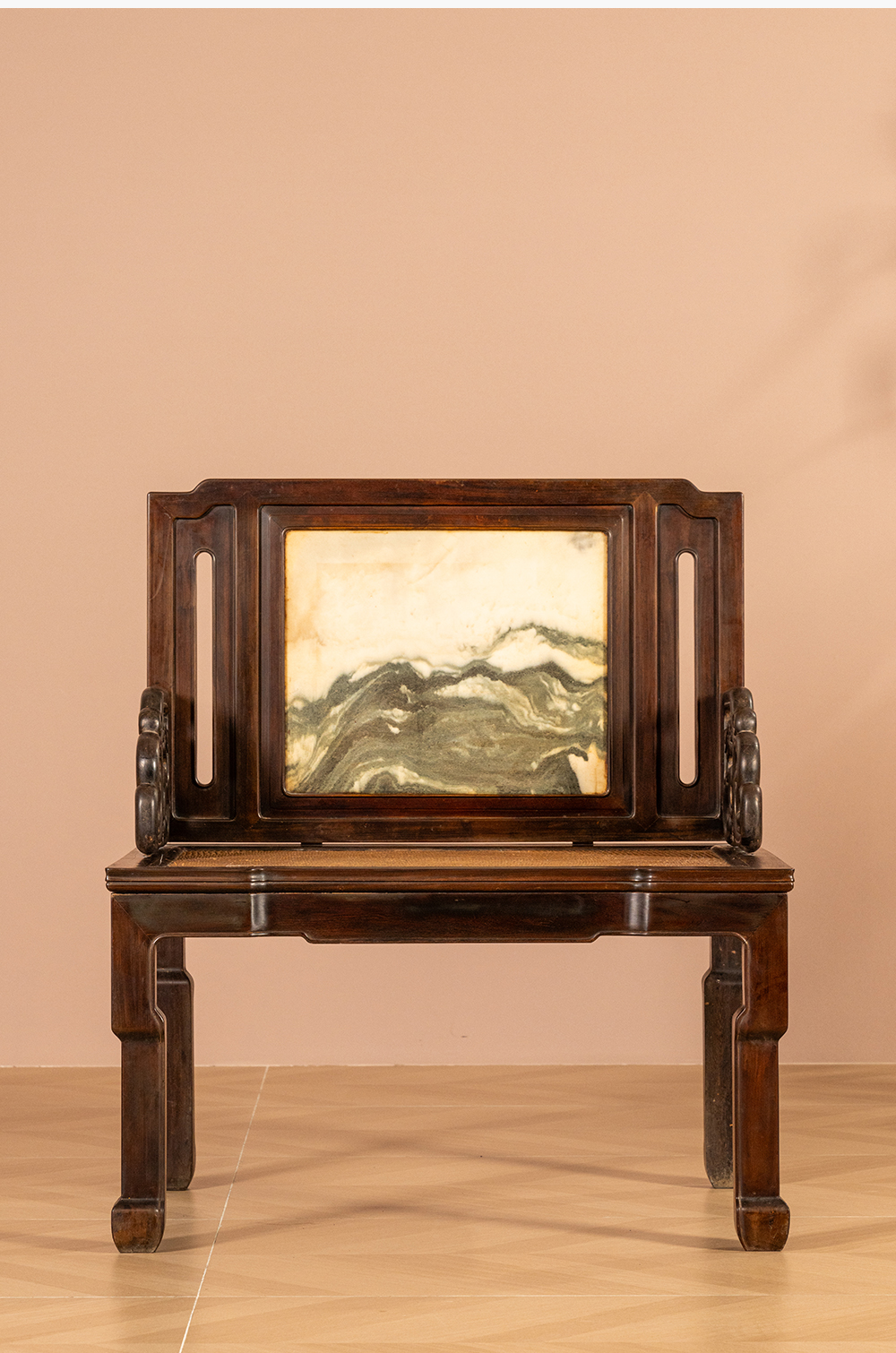 清代 红木镶云石背屏龙纹宝座