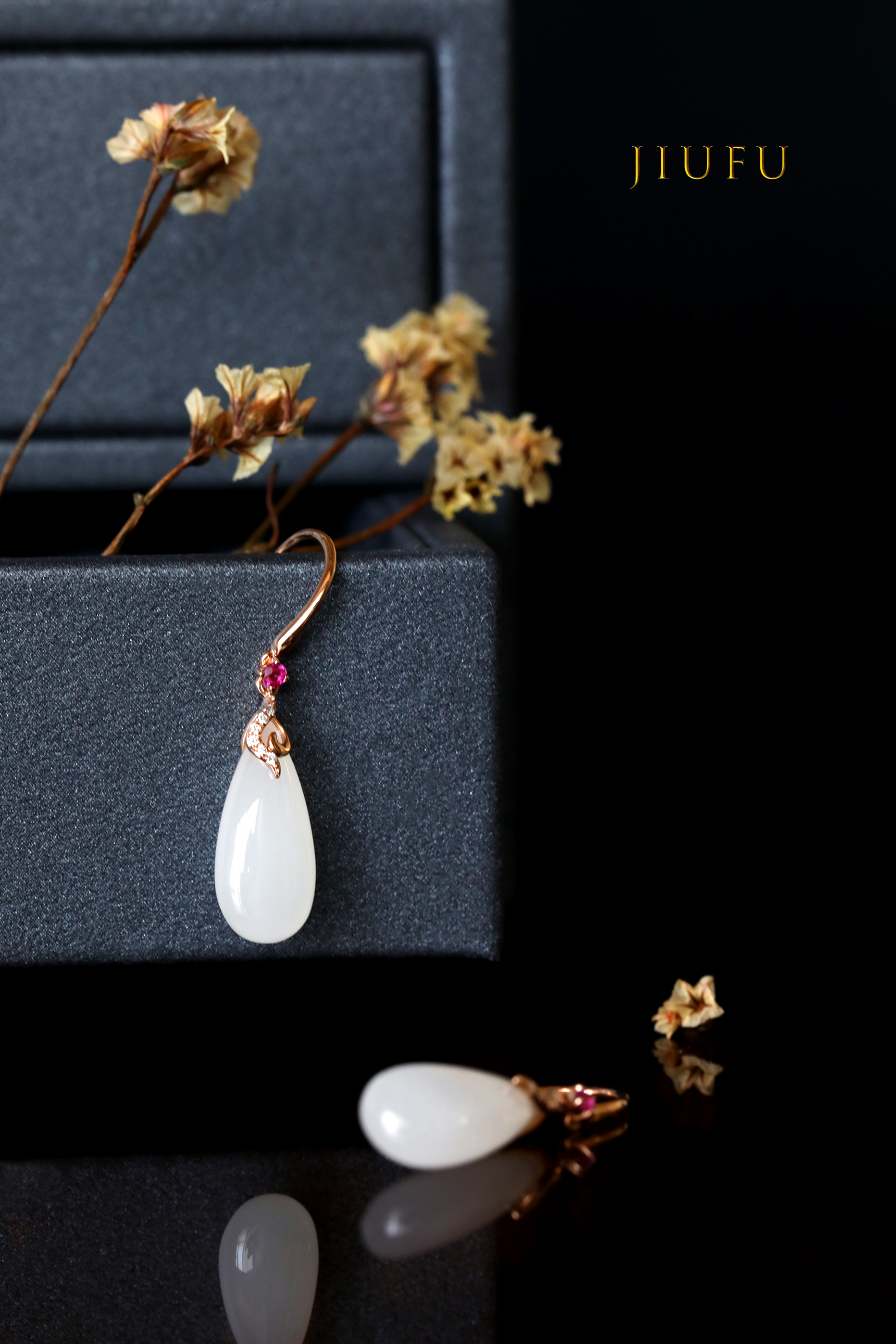 18K玫瑰金和田玉(白玉)耳饰