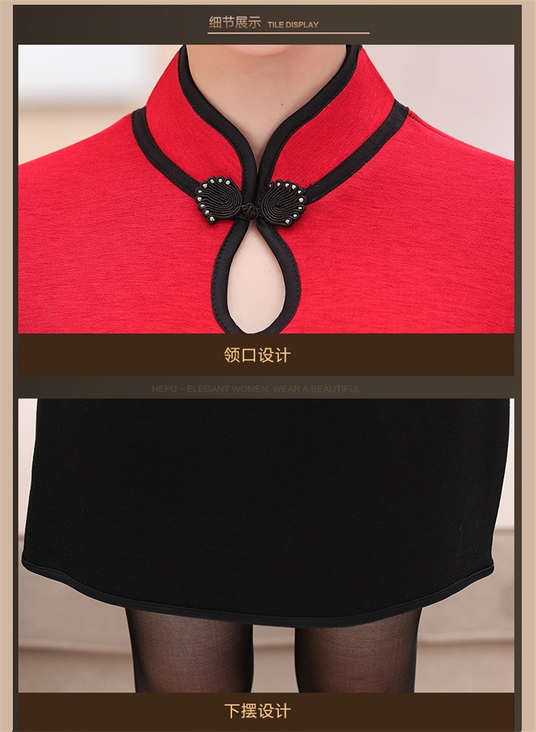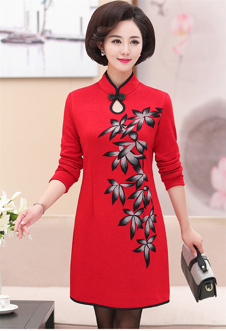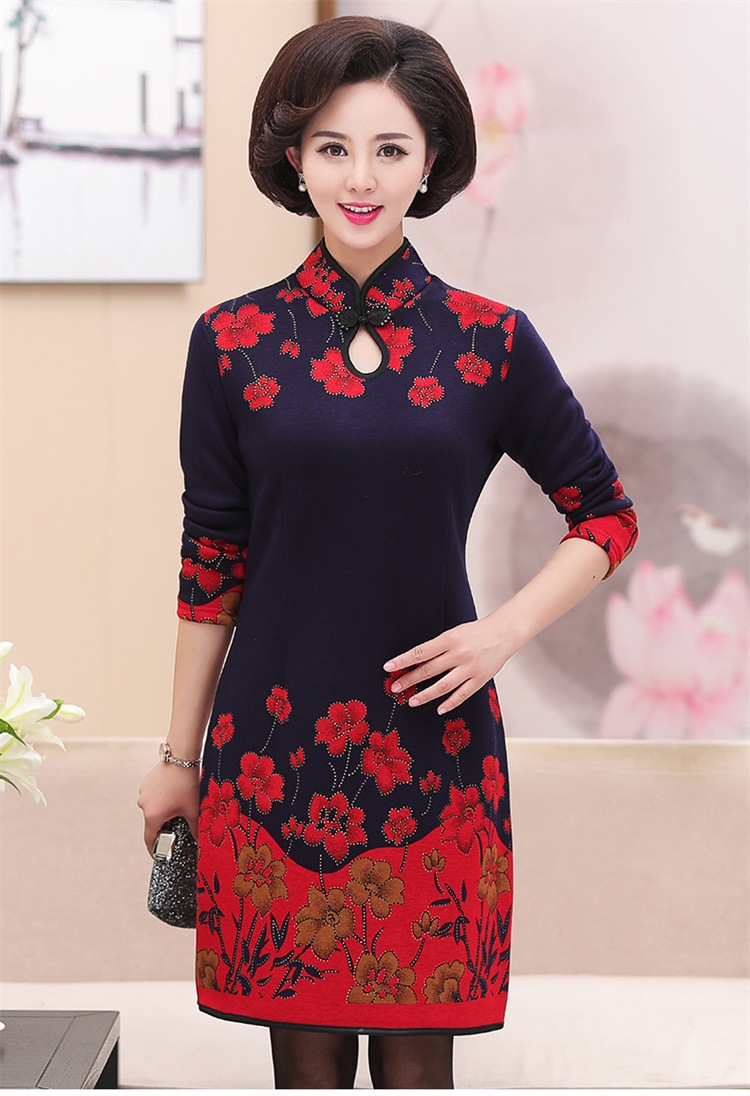 冬季加绒长款山水画中国风立领长旗袍SJT-400