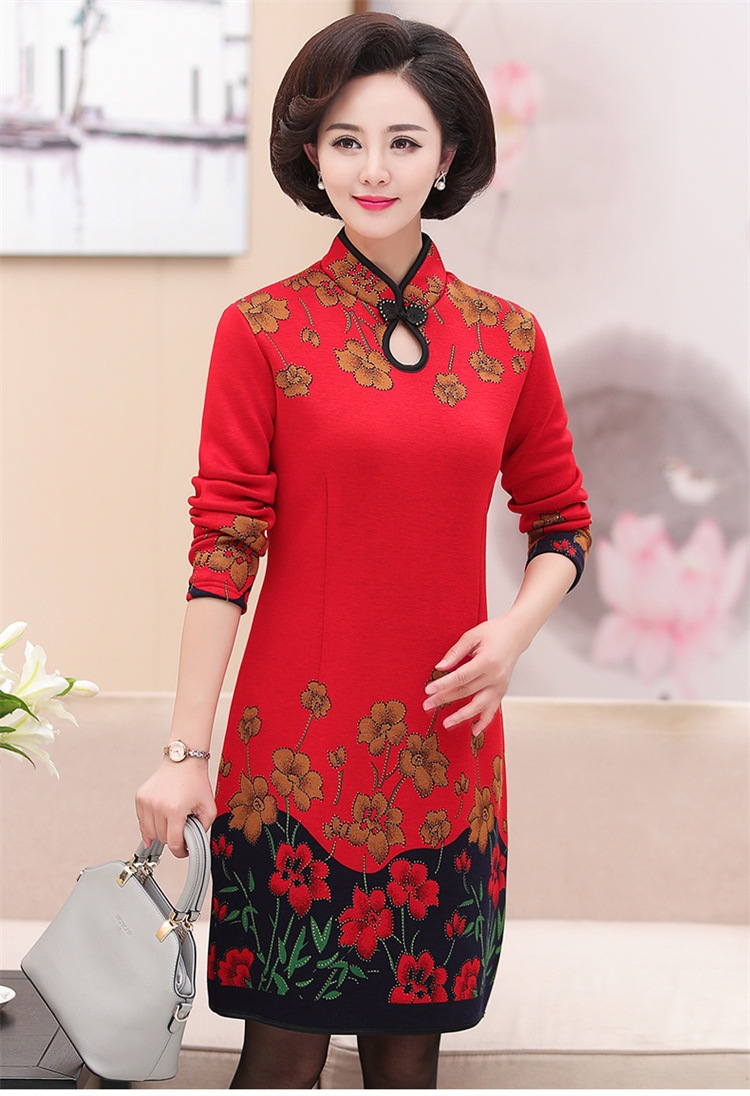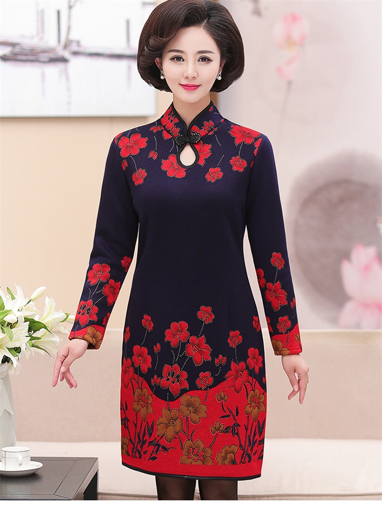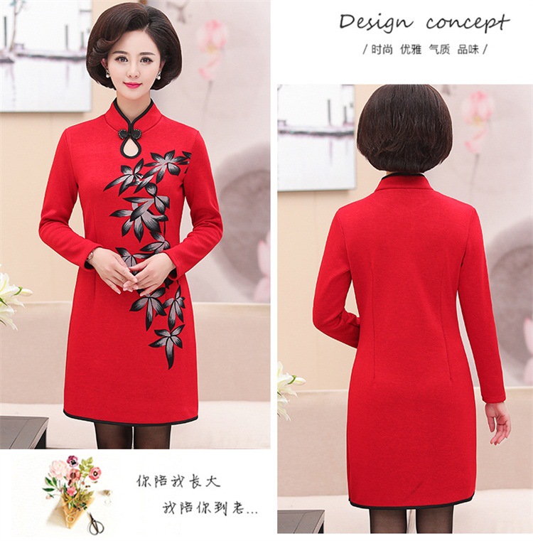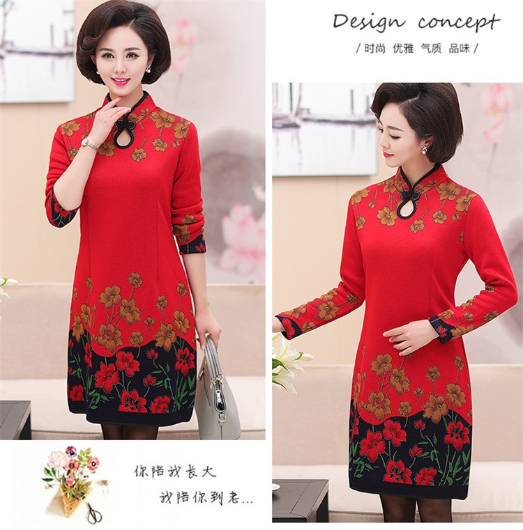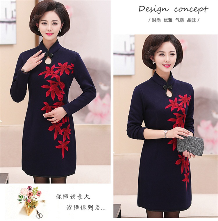 新款时尚长袖立领加厚加绒修身保暖连衣裙