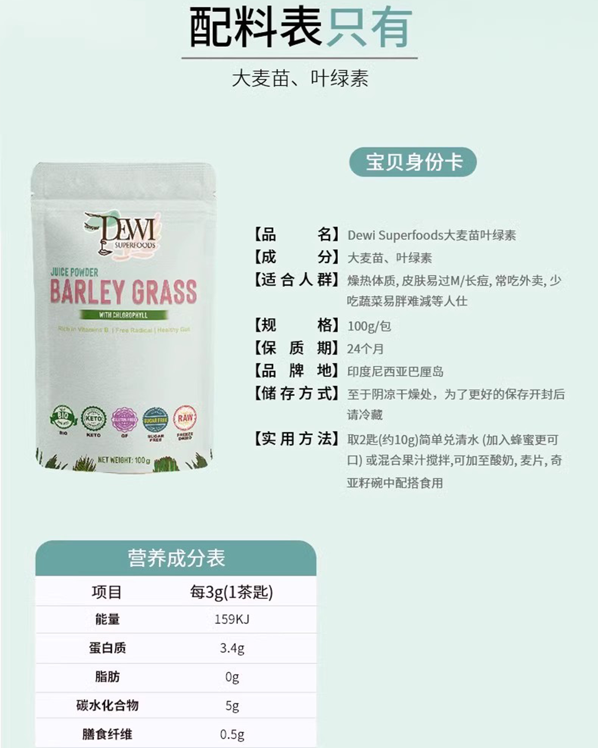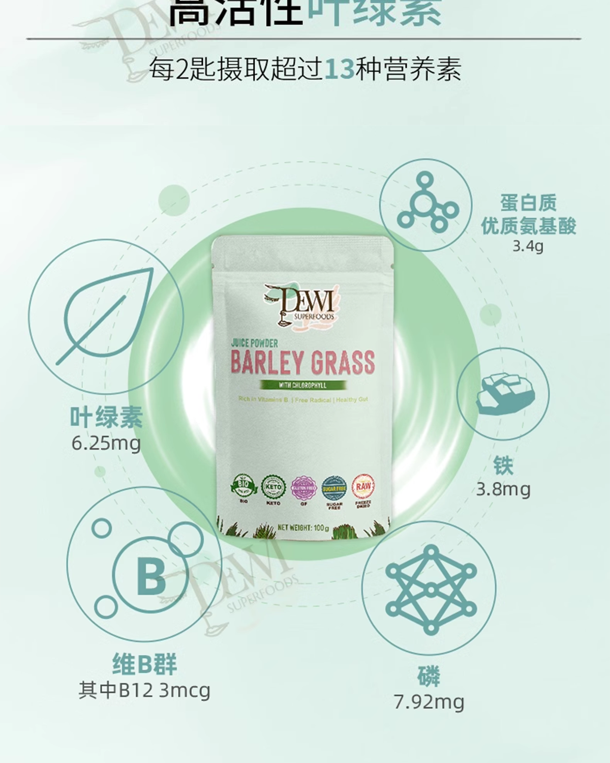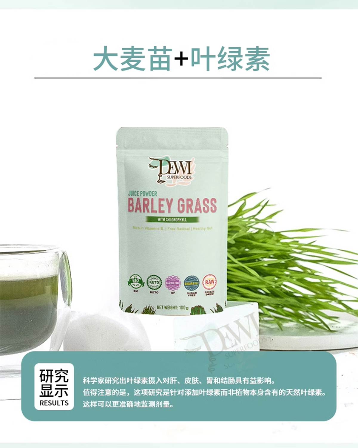 Dewi黛维大麦苗汁叶绿素粉凈化清体平衡孕宝补蔬菜营养100g