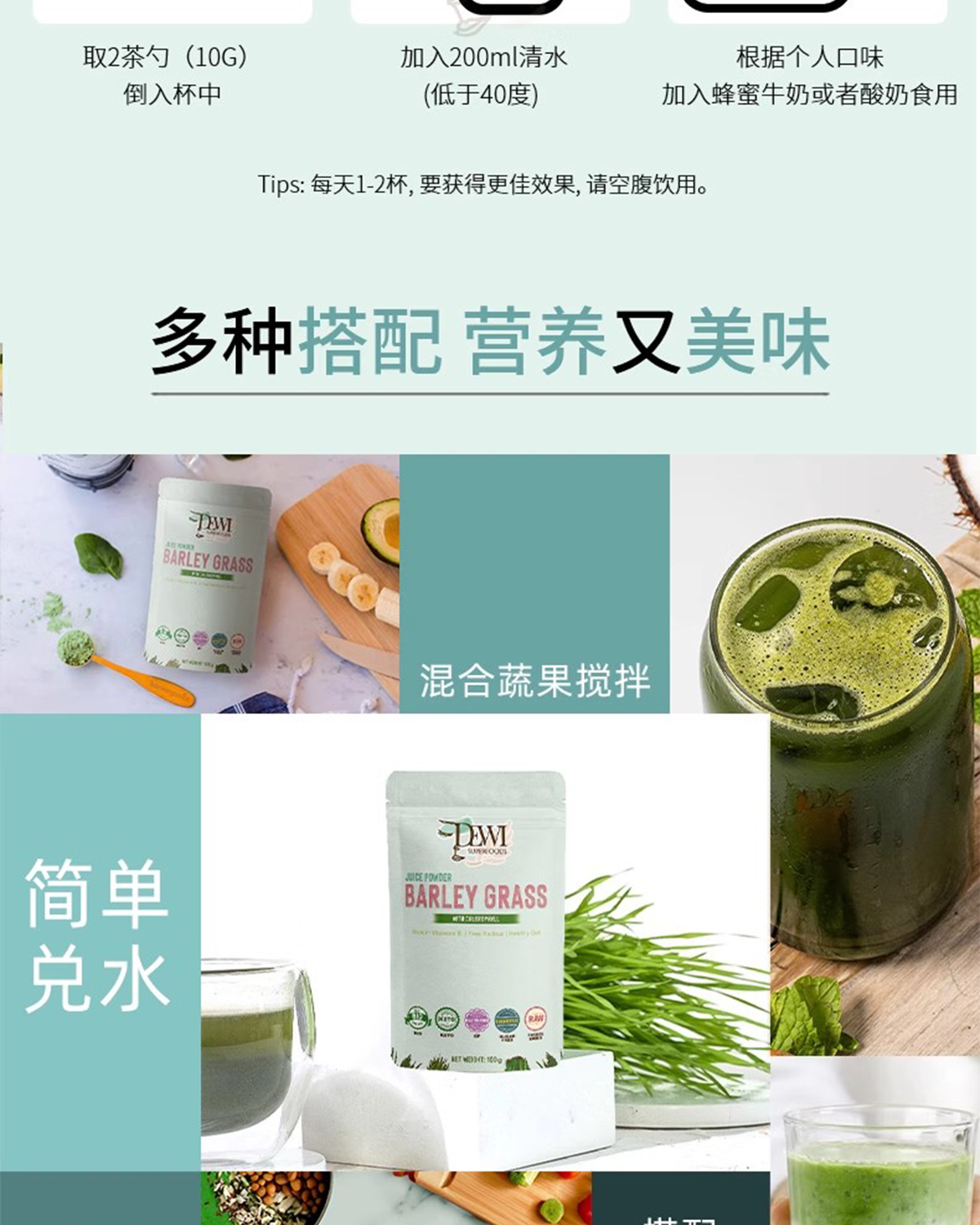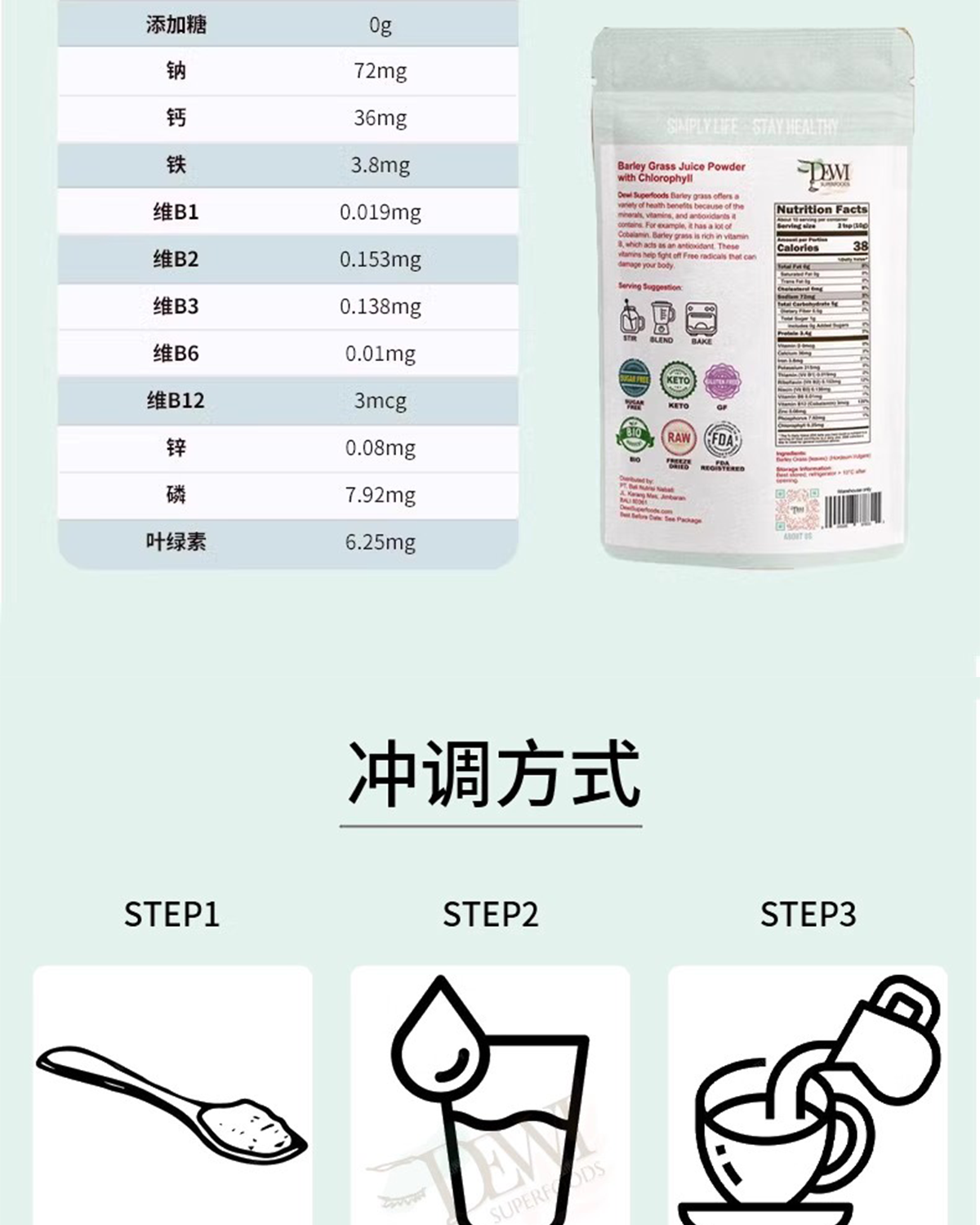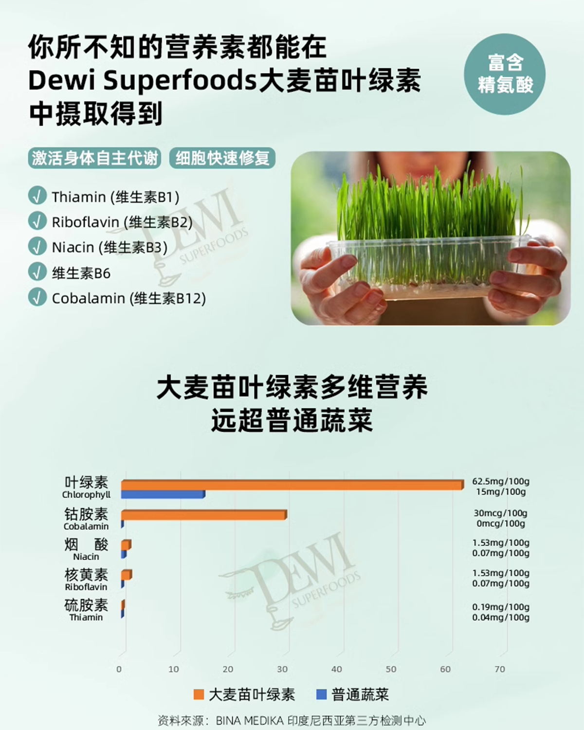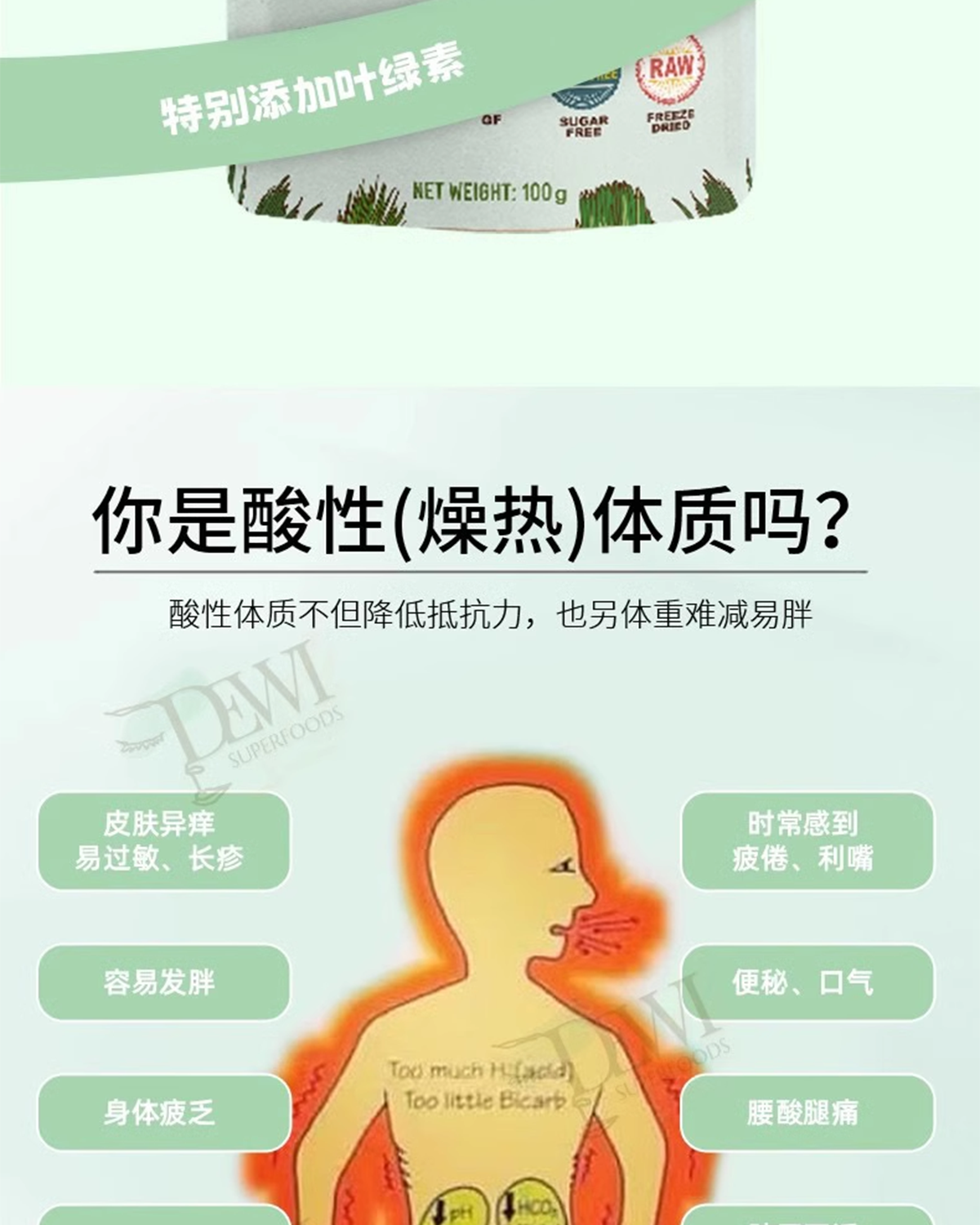 Dewi黛维大麦苗汁叶绿素粉凈化清体平衡孕宝补蔬菜营养100g