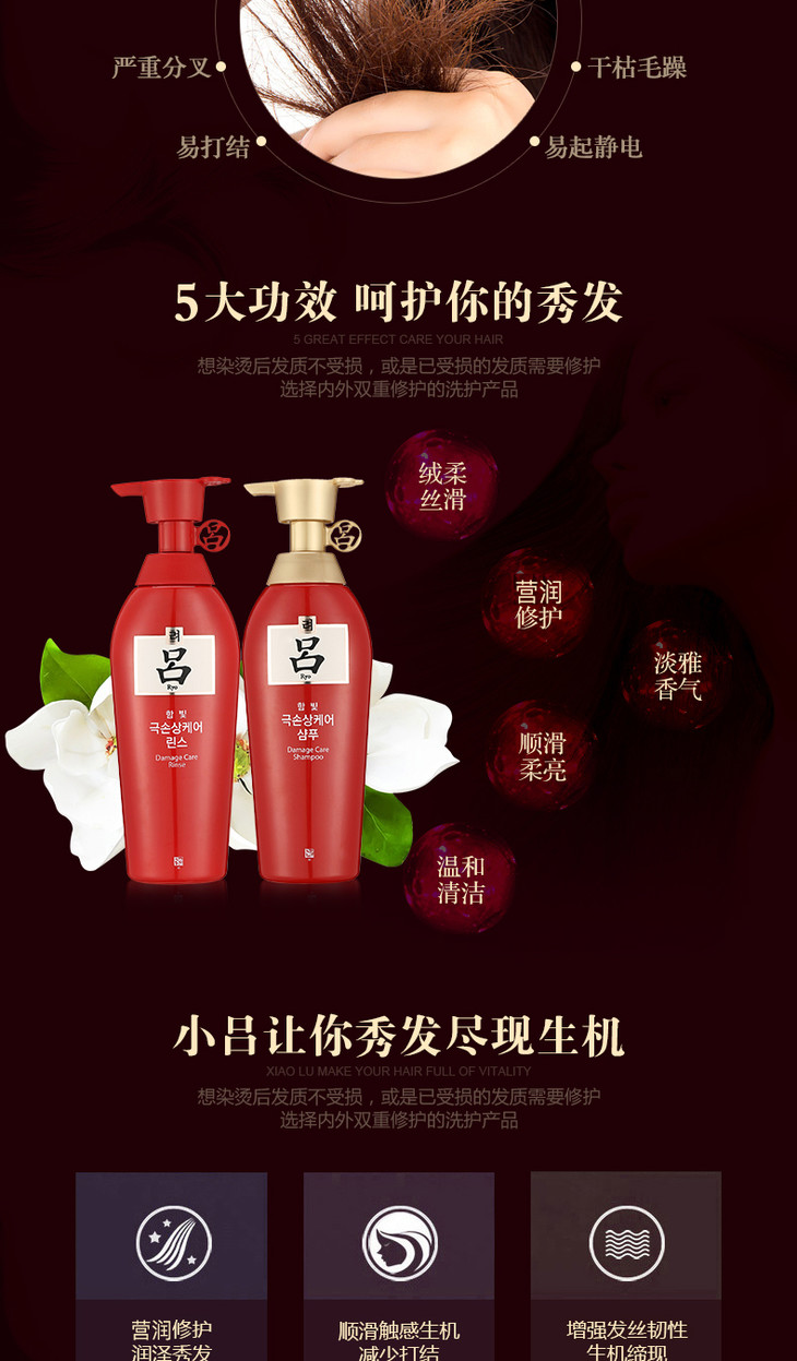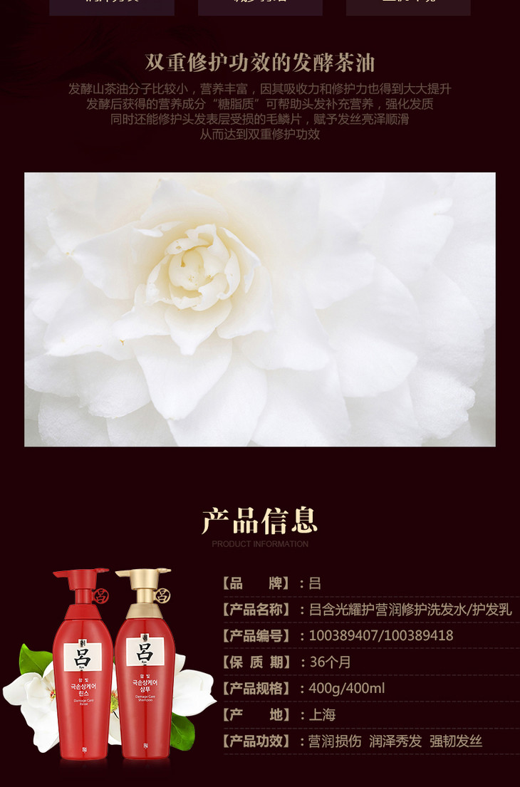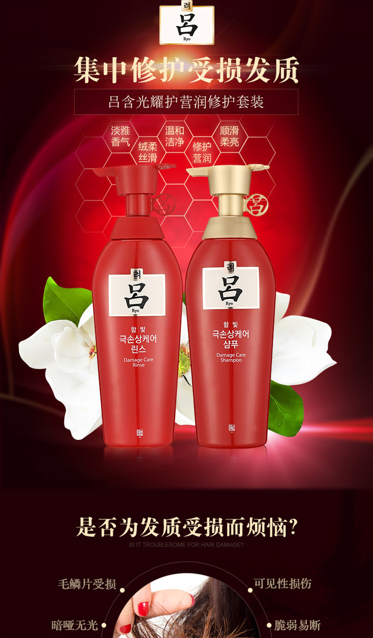 吕含光耀护营润修护套组洗发水400ml+护发乳400ml