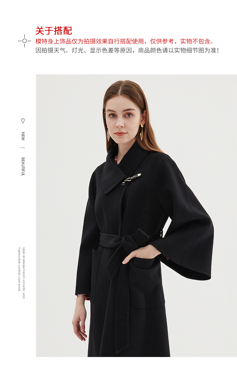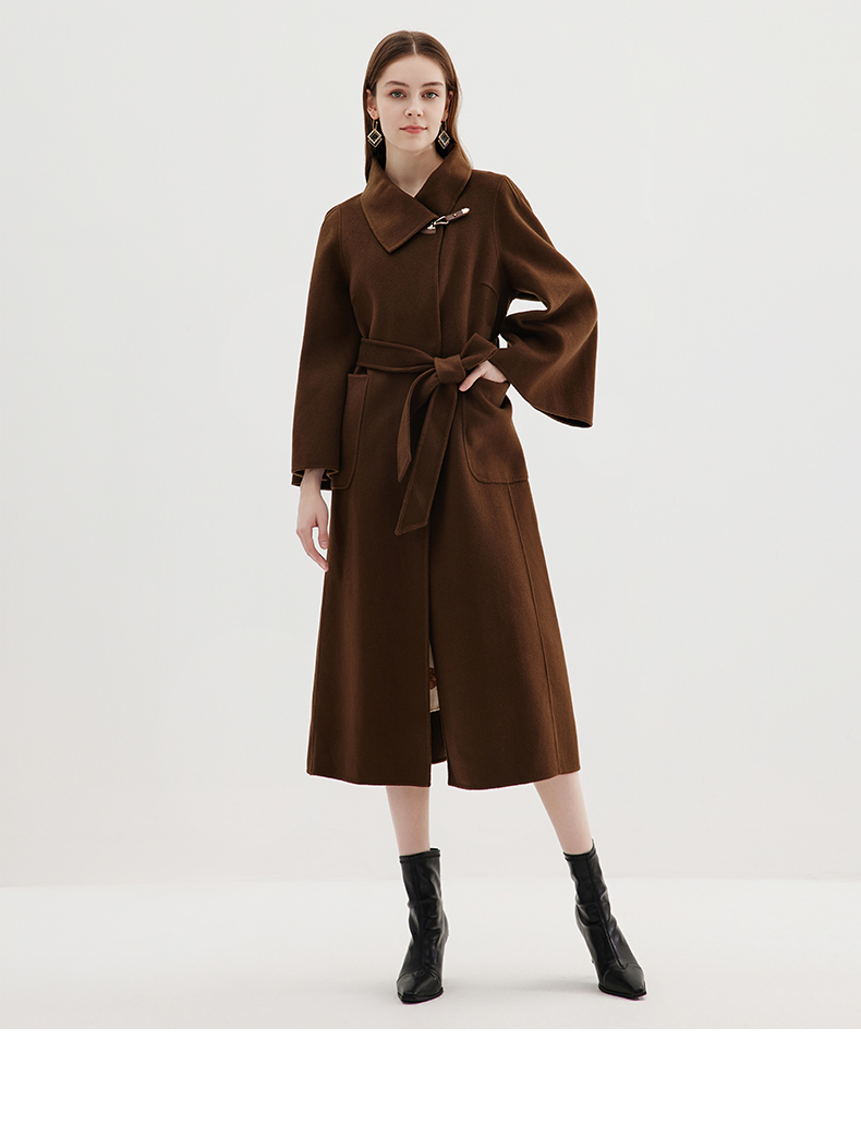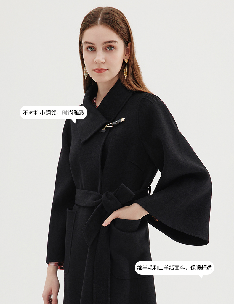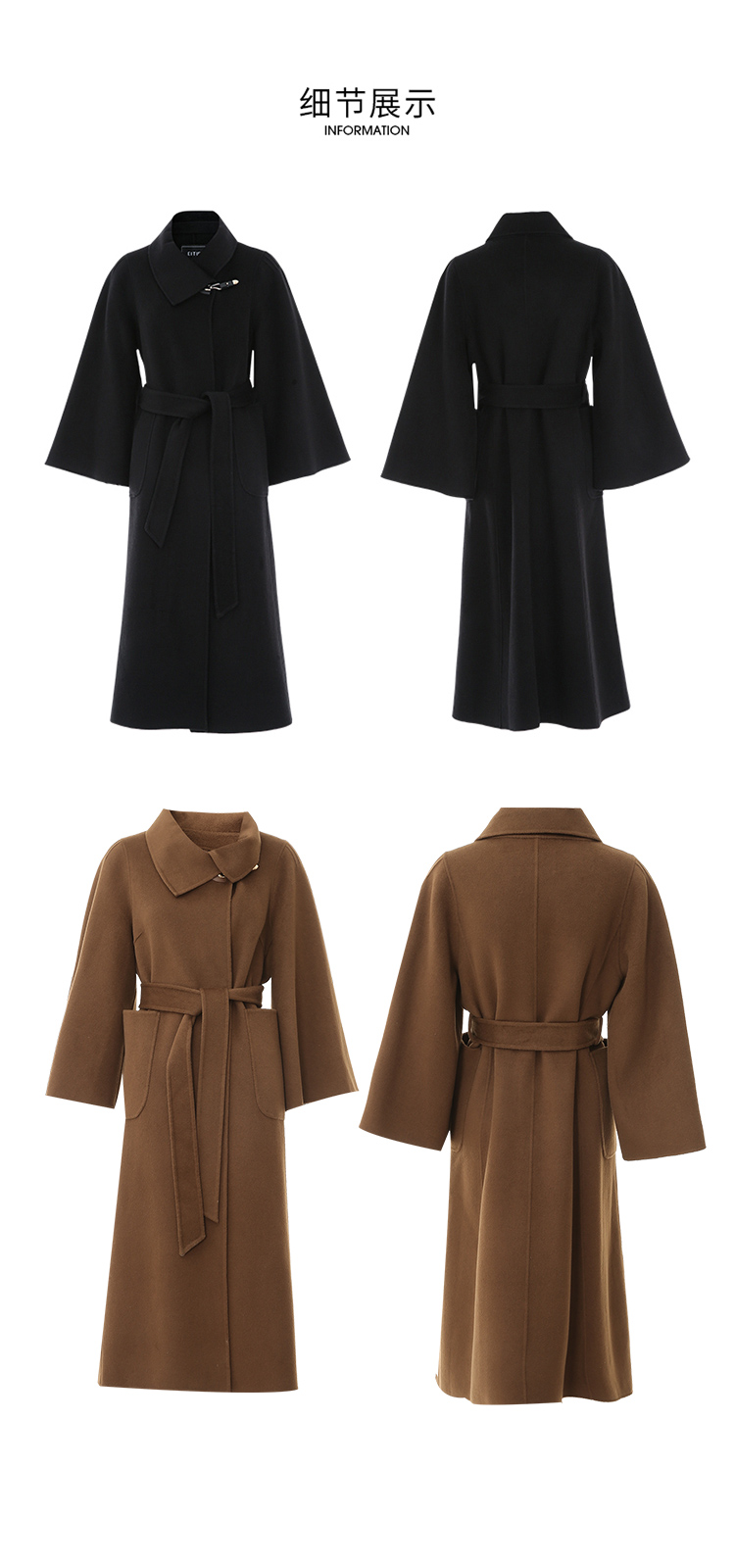 EITIE爱特爱冬季新款气质简约显瘦大气系带大衣外套7214924