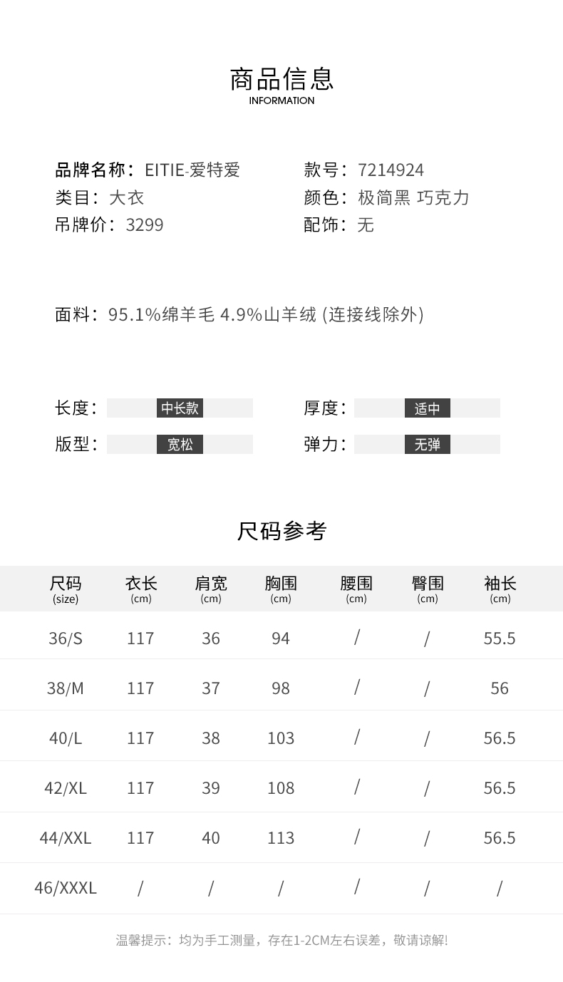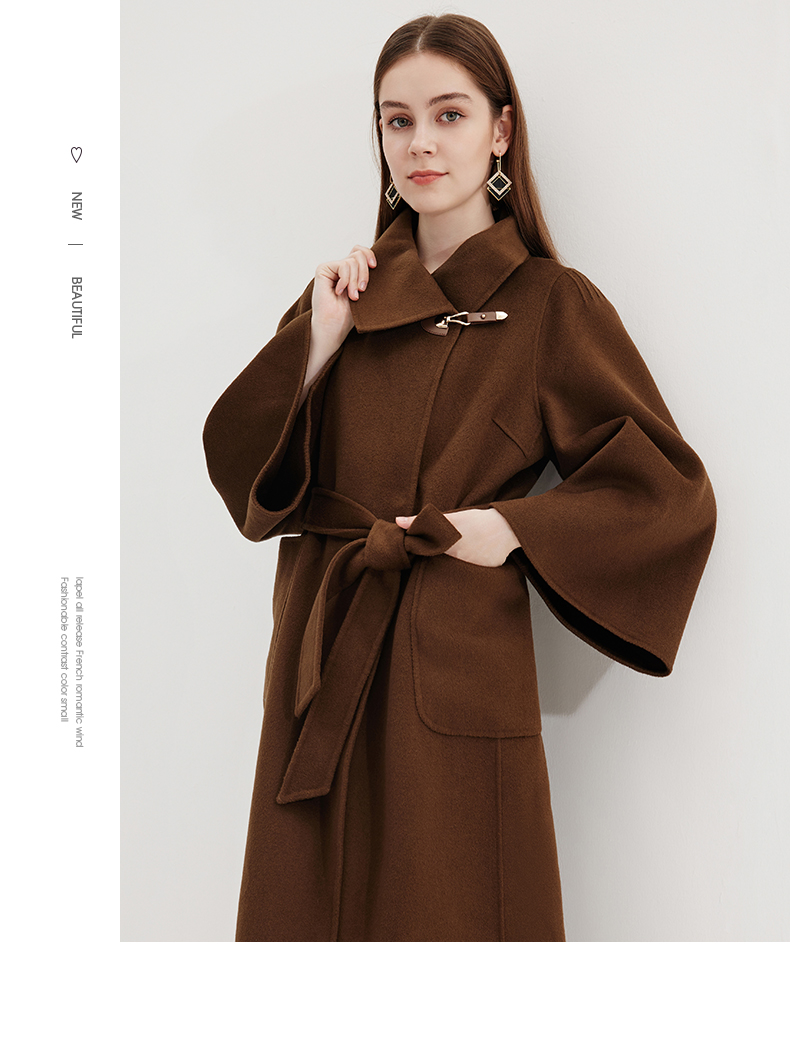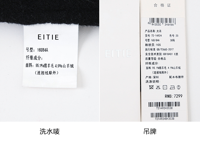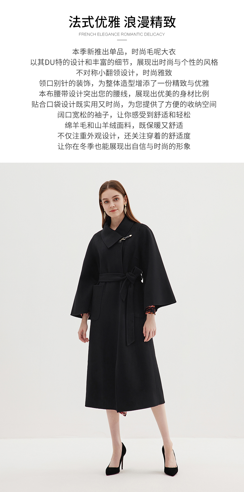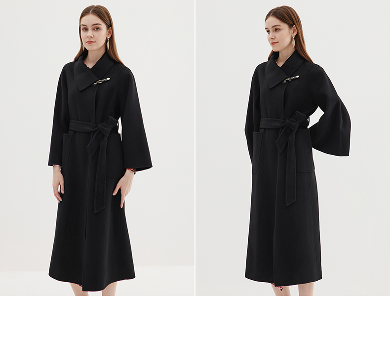 EITIE爱特爱冬季新款气质简约显瘦大气系带大衣外套7214924