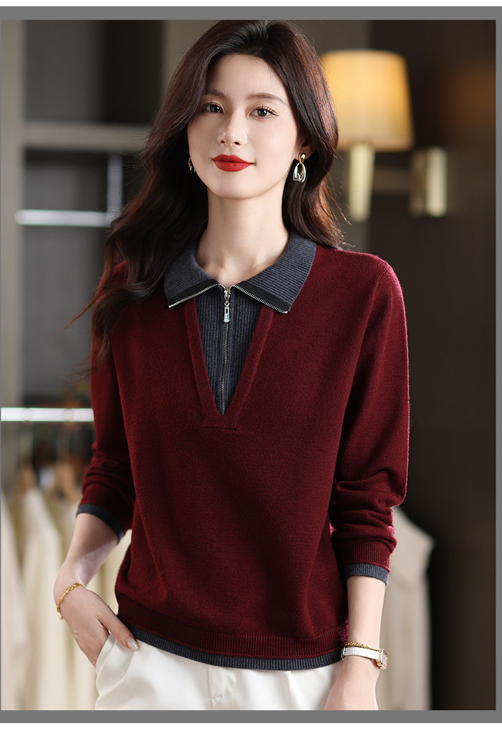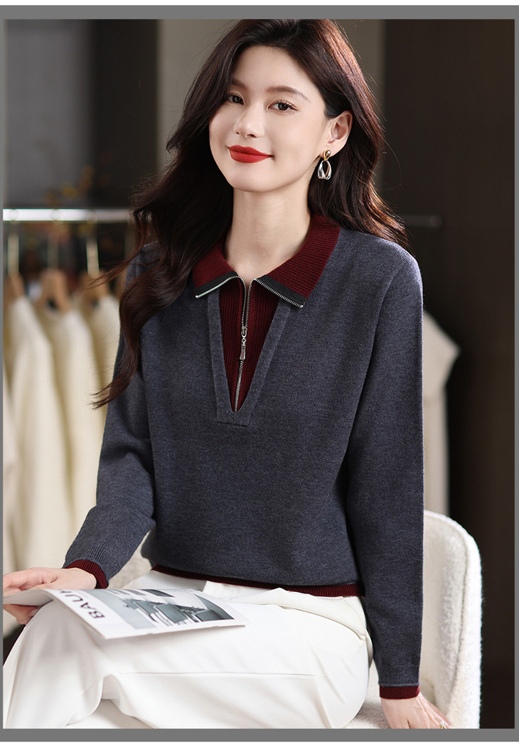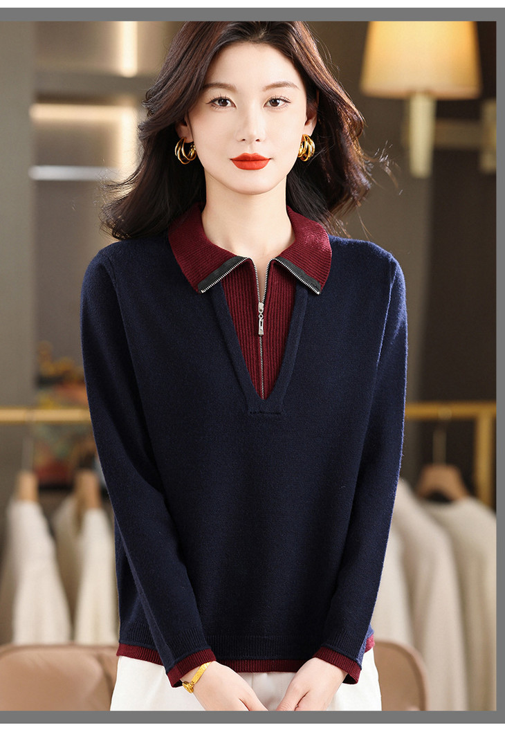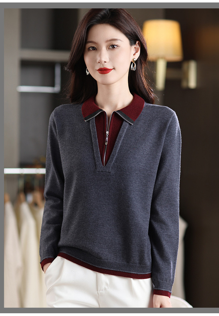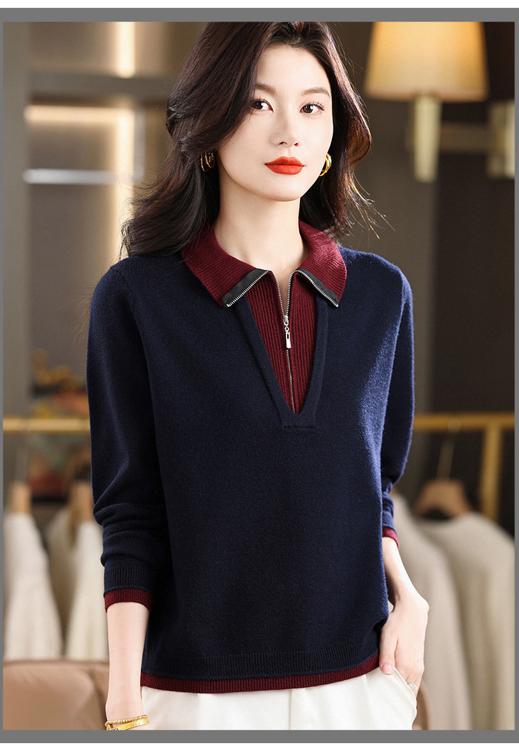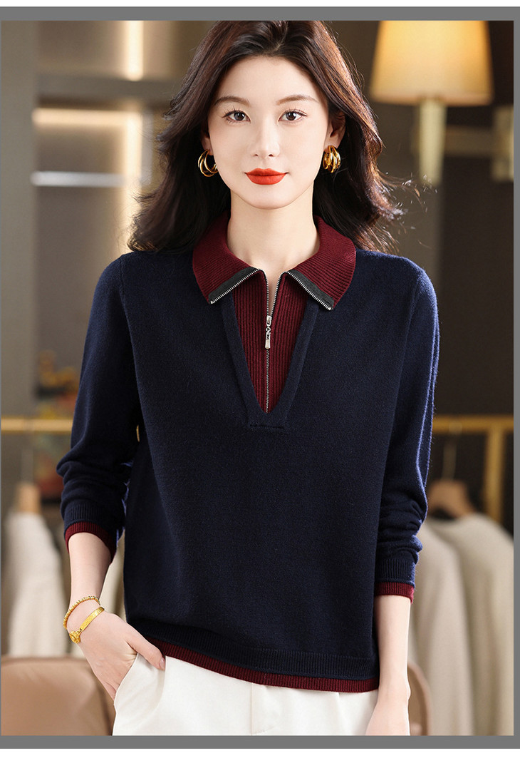 假两件polo领针织衫,撞色长袖毛衣CC-MY-1246