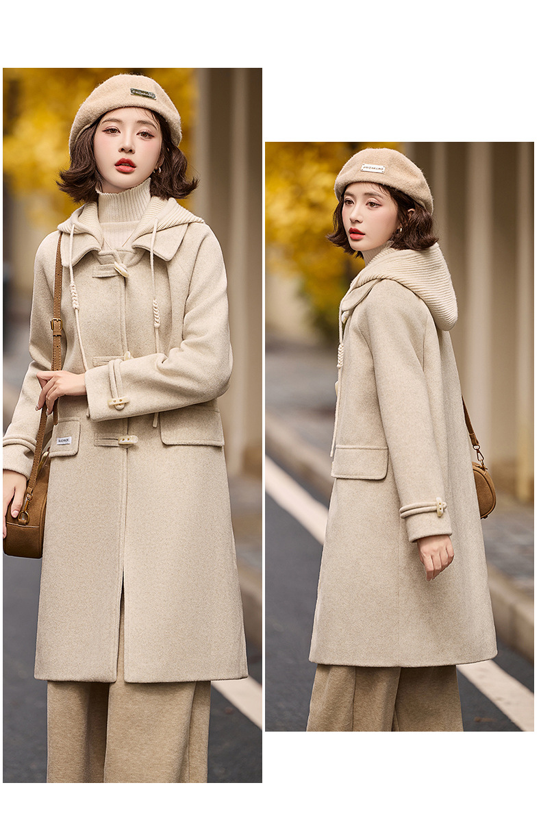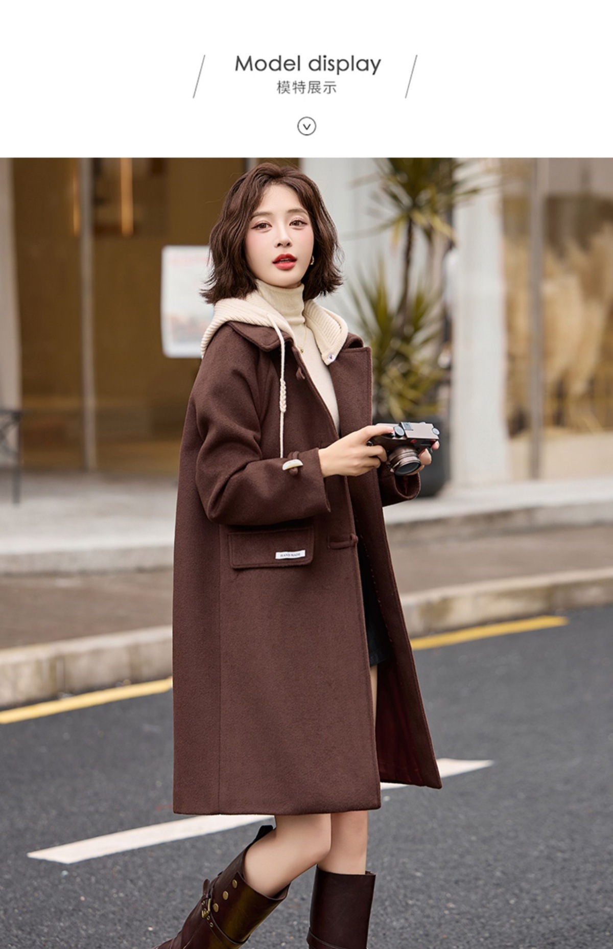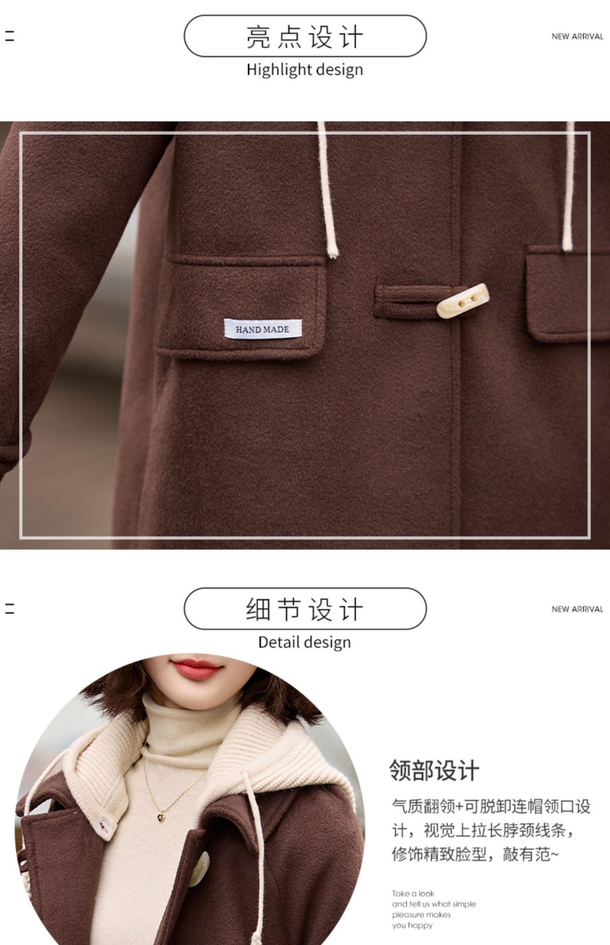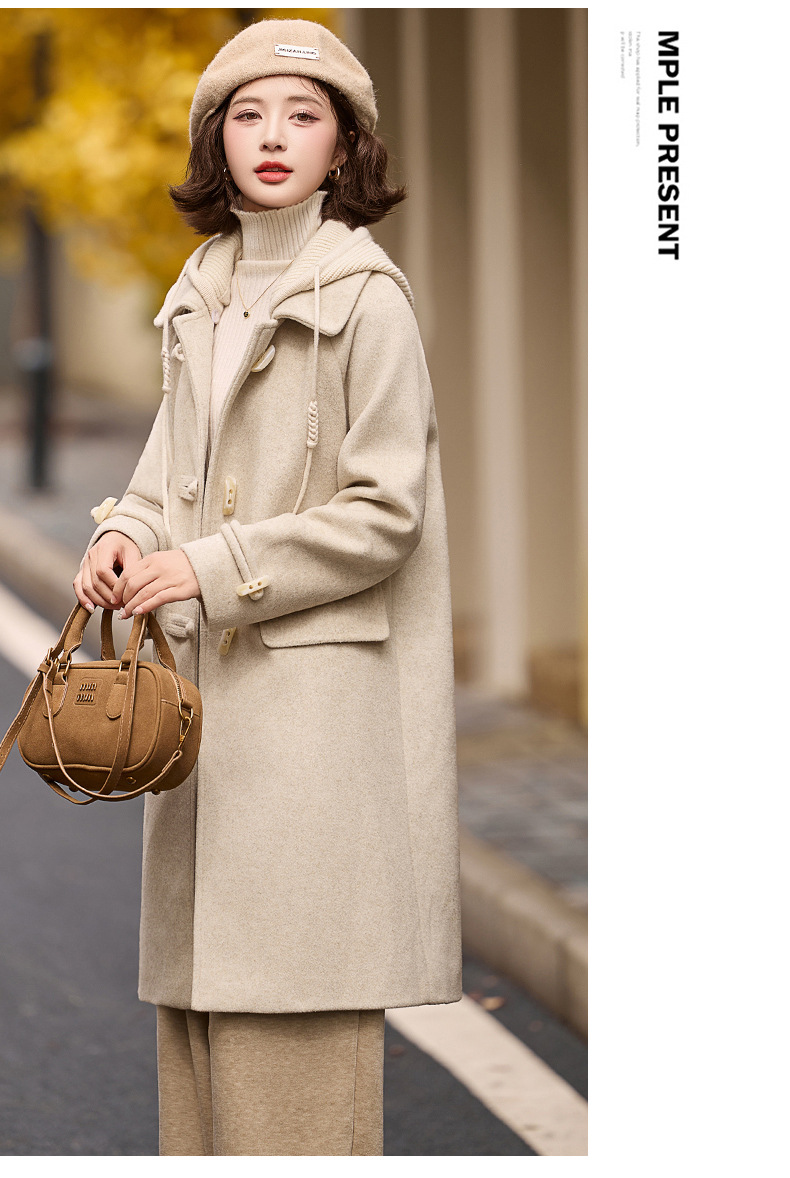 毛呢外套女中长款2024新款秋冬休闲,小个子气质带帽羊毛呢子大衣MLJL16255