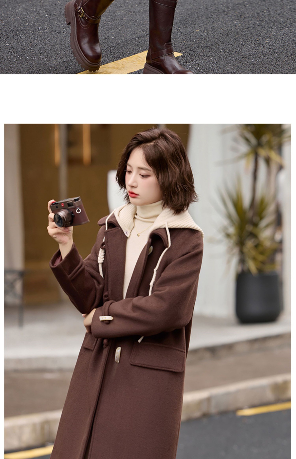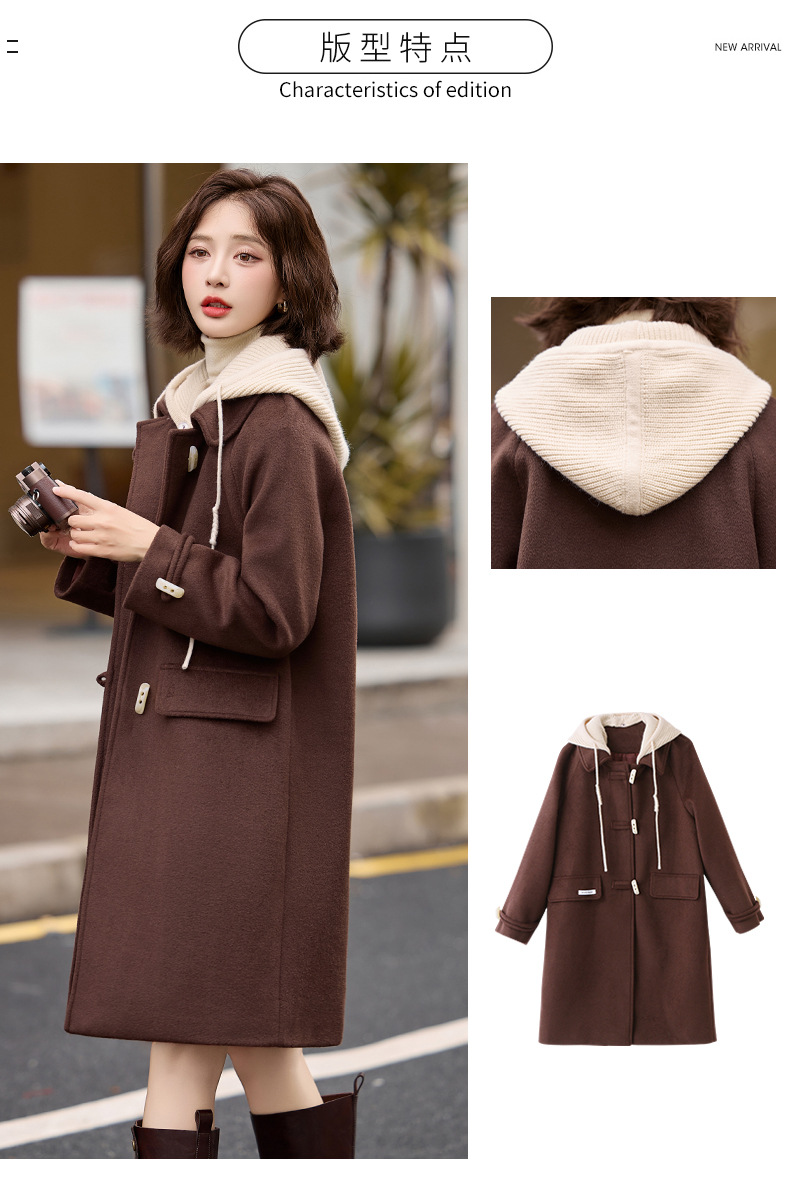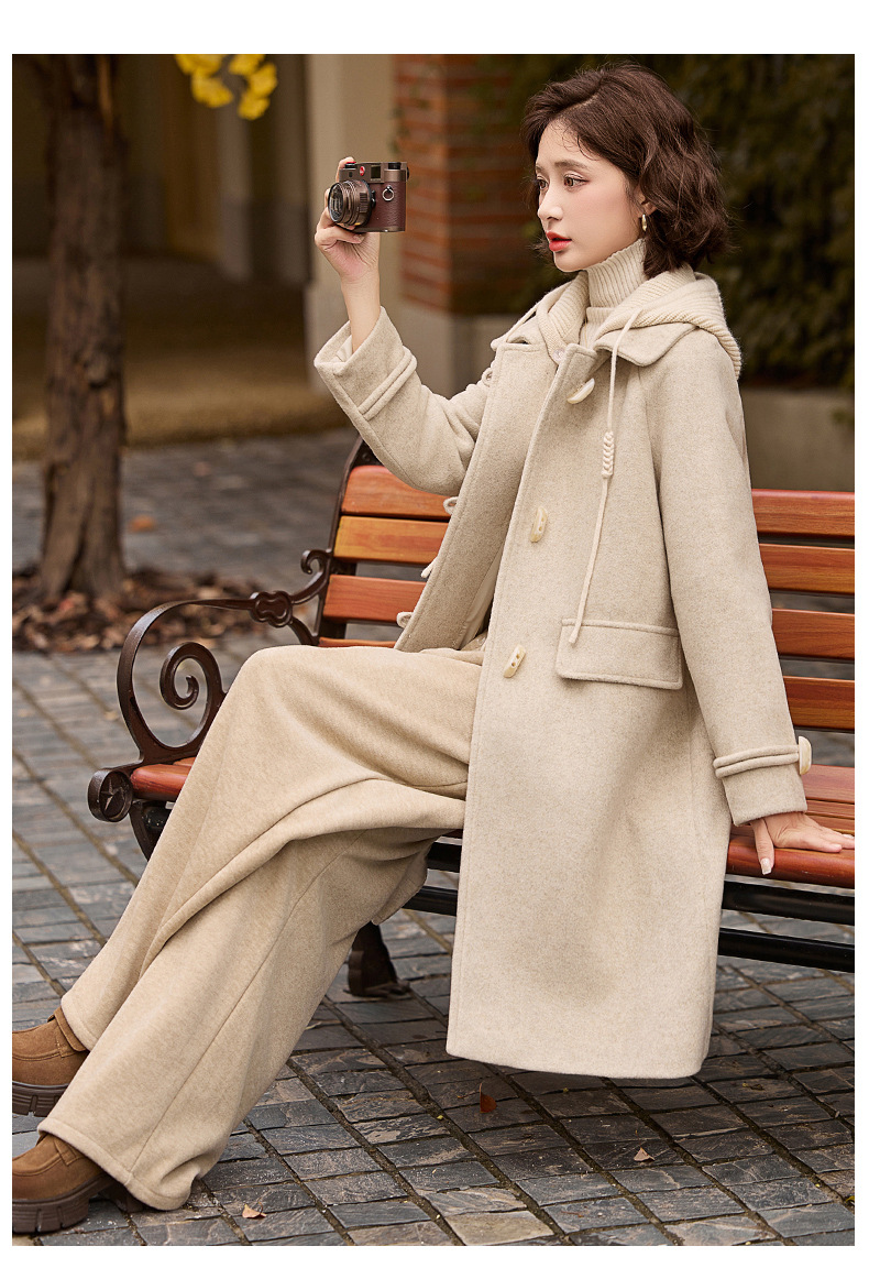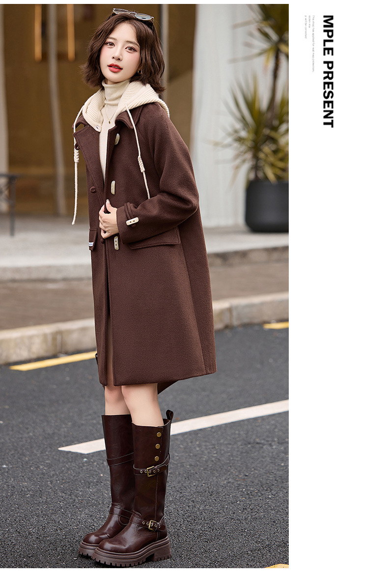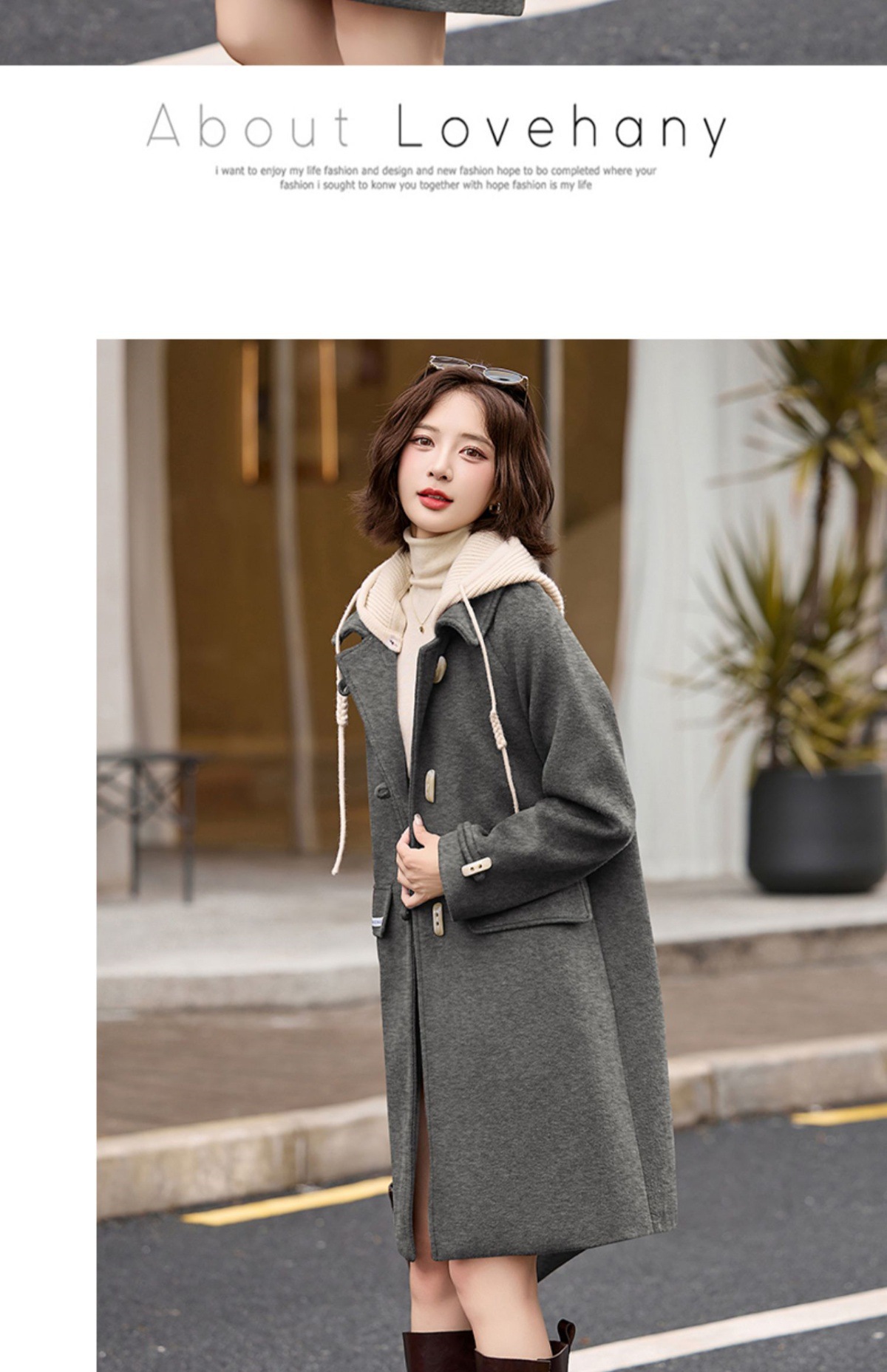 毛呢外套女中长款2024新款秋冬休闲,小个子气质带帽羊毛呢子大衣MLJL16255