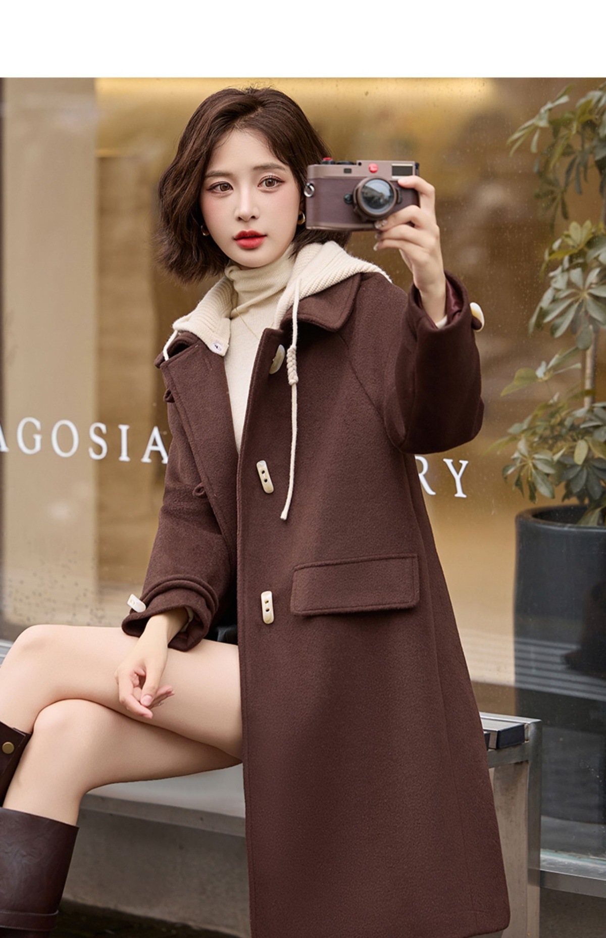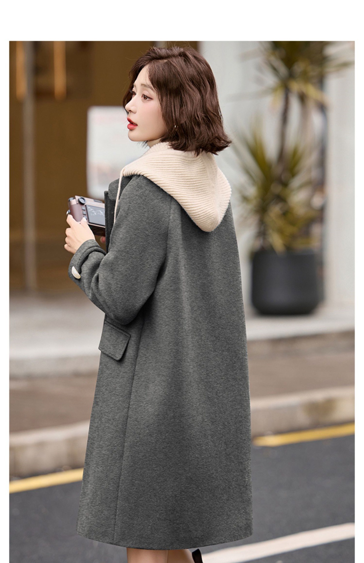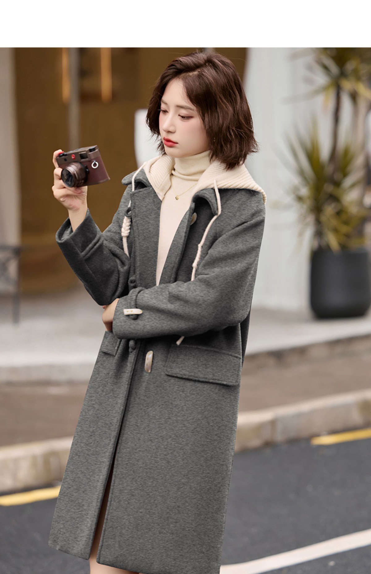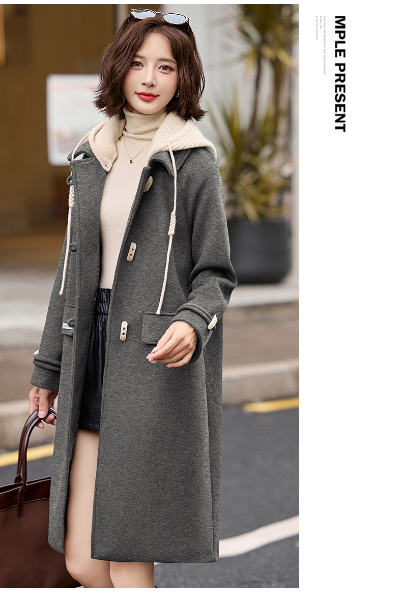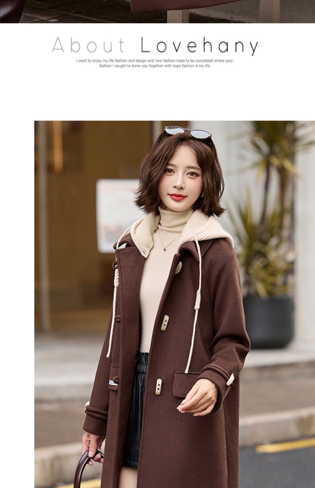 毛呢外套女中长款2024新款秋冬休闲,小个子气质带帽羊毛呢子大衣MLJL16255