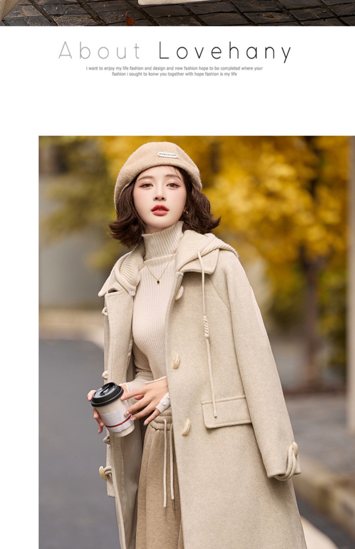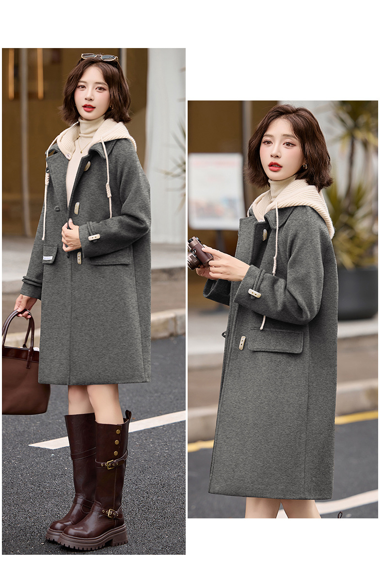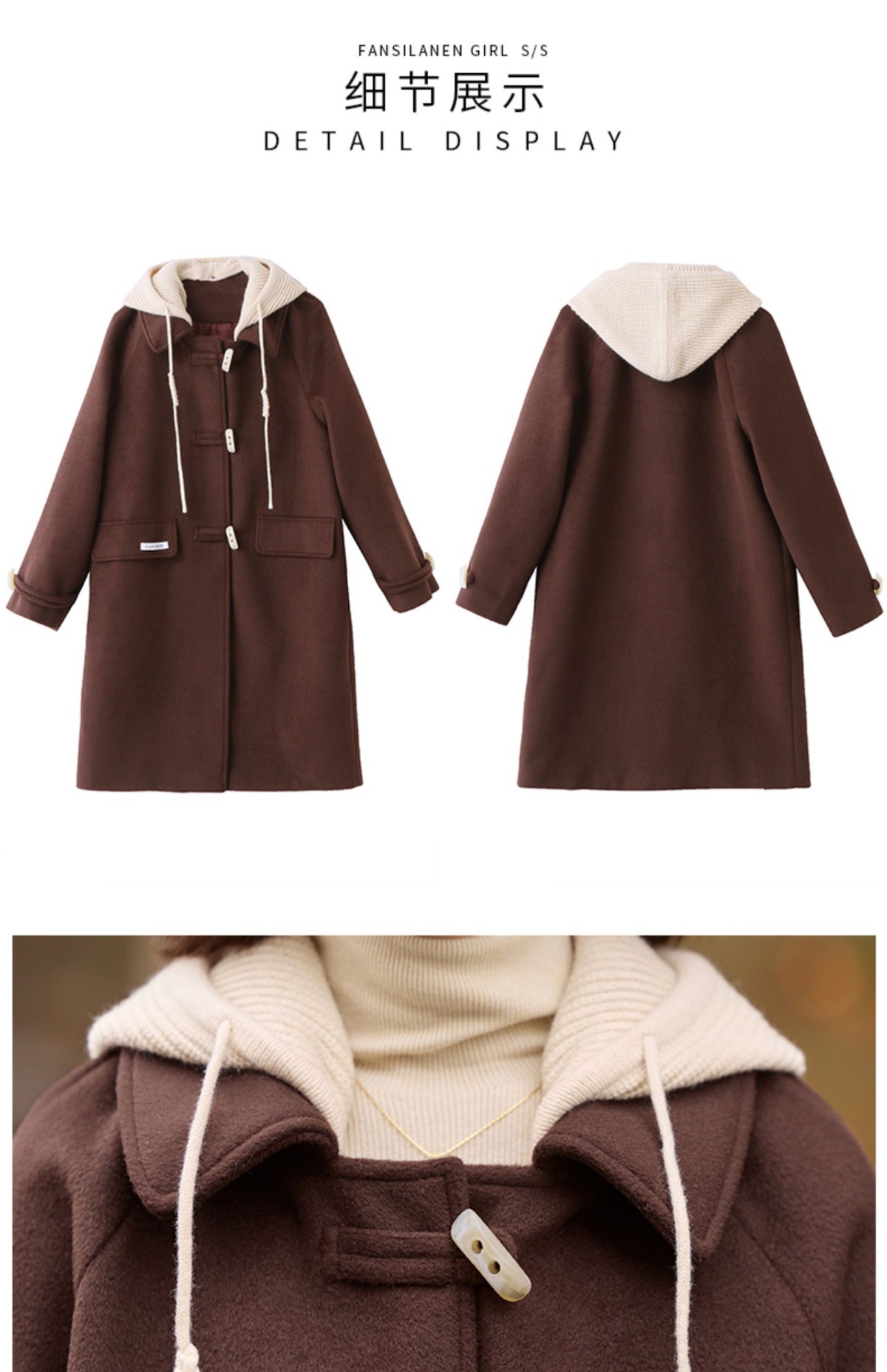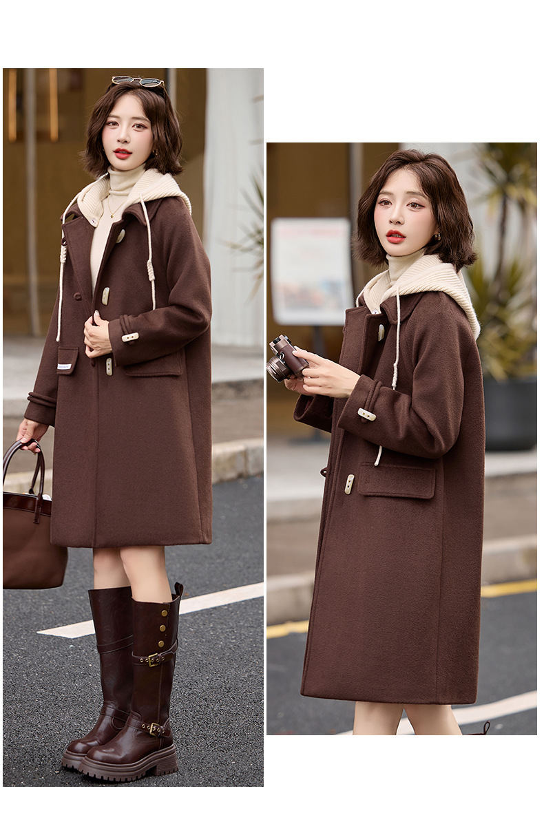 毛呢外套女中长款2024新款秋冬休闲,小个子气质带帽羊毛呢子大衣MLJL16255
