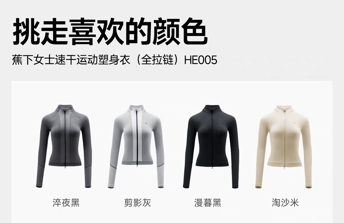 蕉下女士速干运动塑身衣HE005拉链款紧身显瘦运动上衣瑜伽服速干