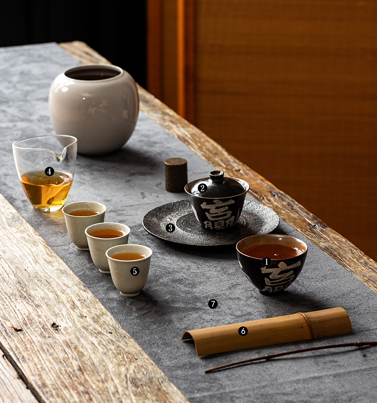 茶香记黑志野手绘书法大鸡心主人杯(躺赢)茶杯110ml陶瓷品杯茶具