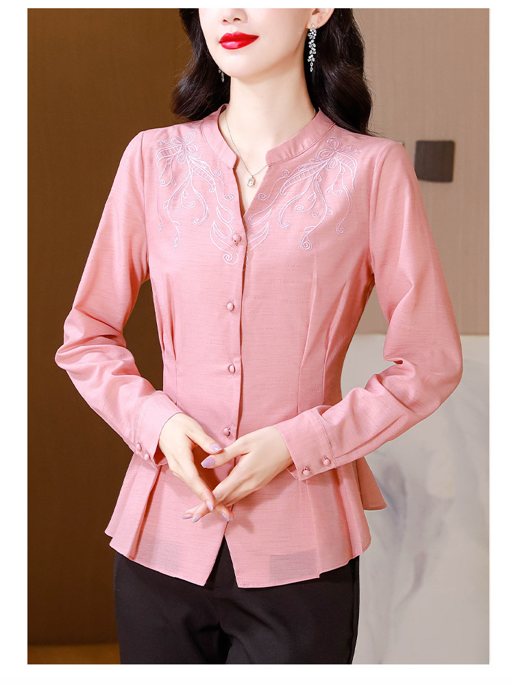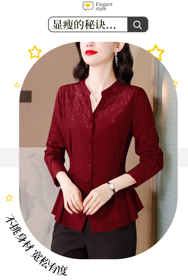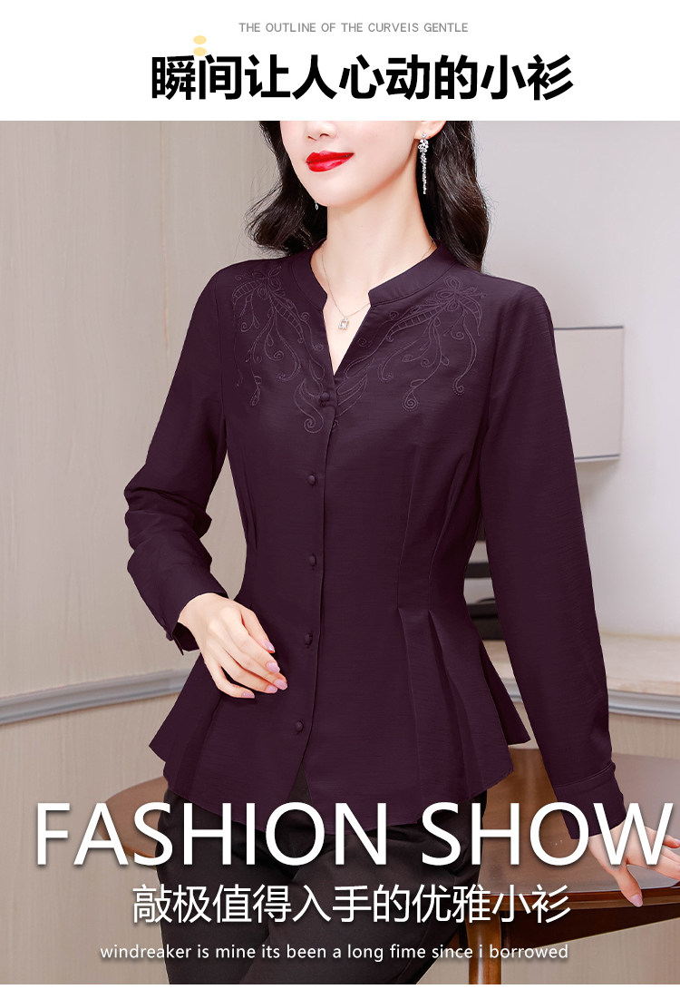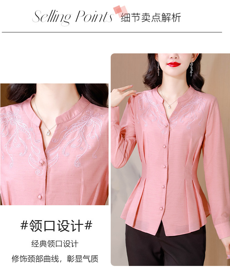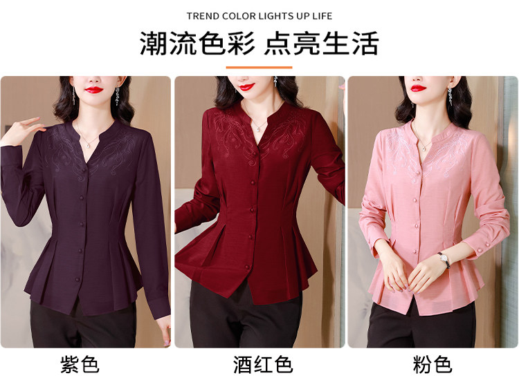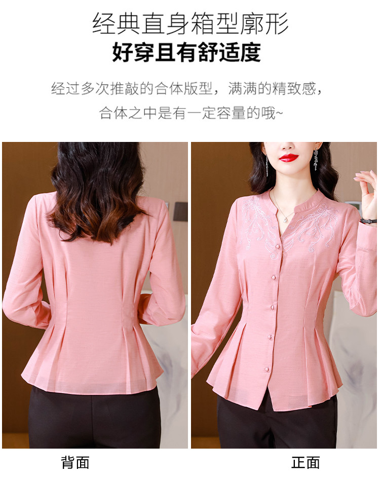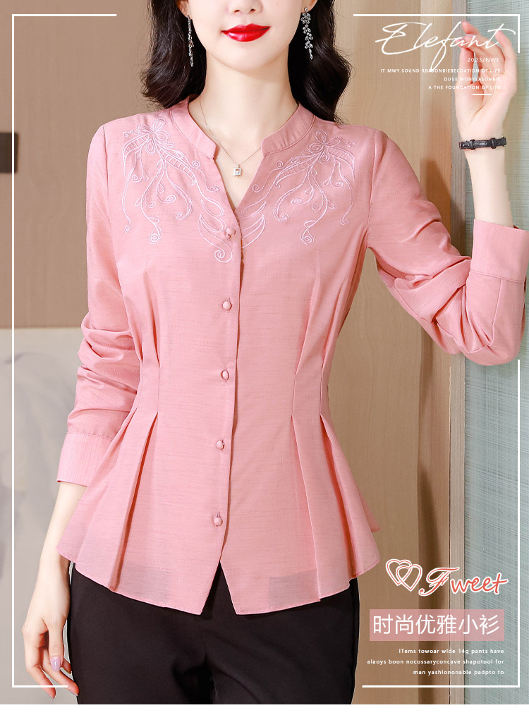 时尚高端刺绣长袖衬衫女士秋装新款收腰气质显瘦衬衣修身洋气上衣