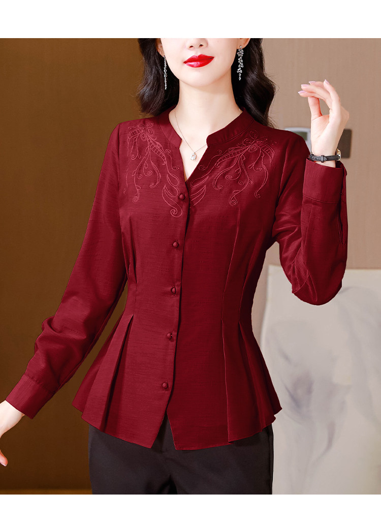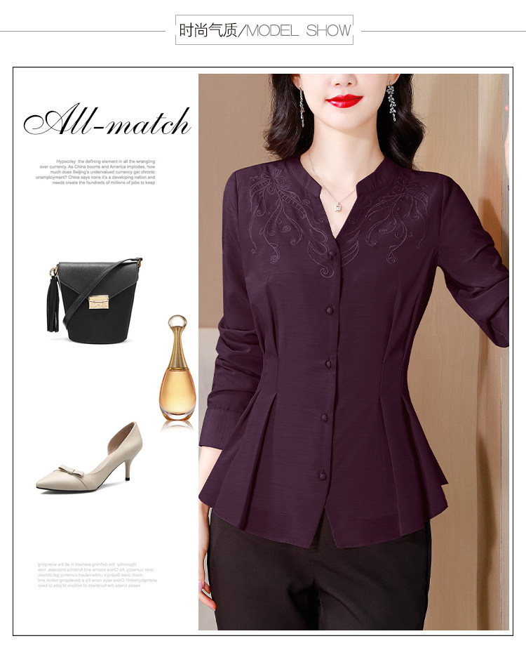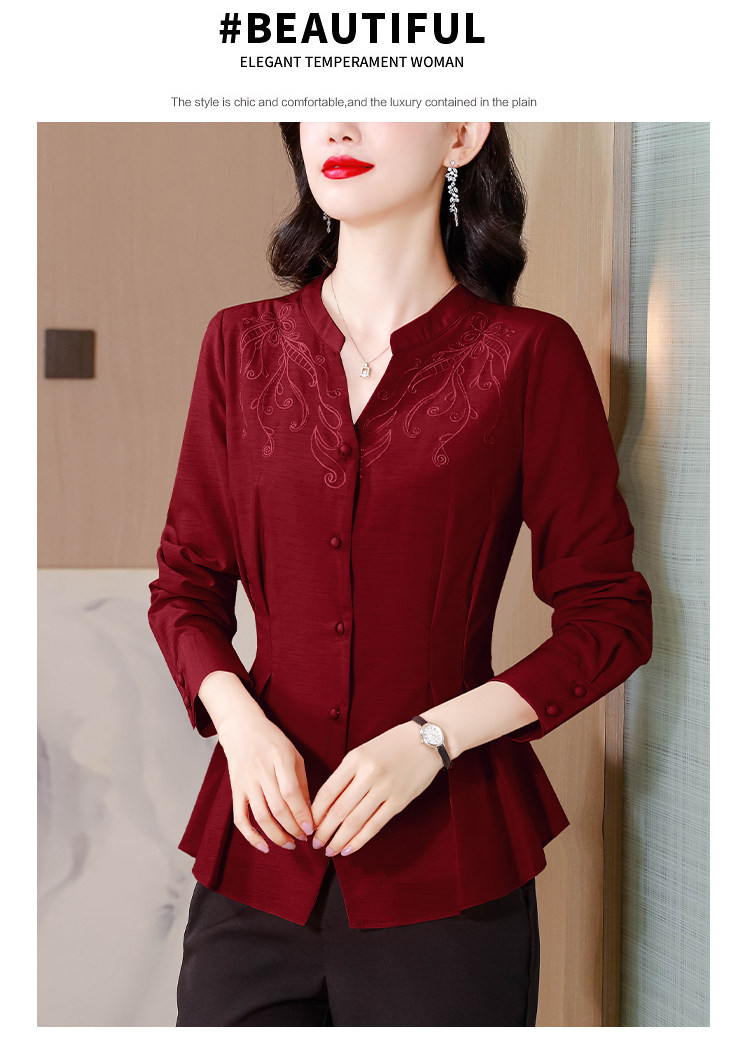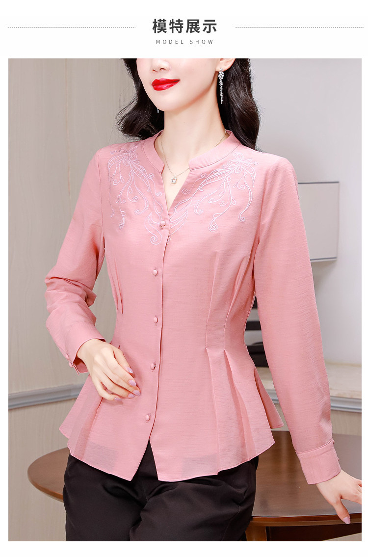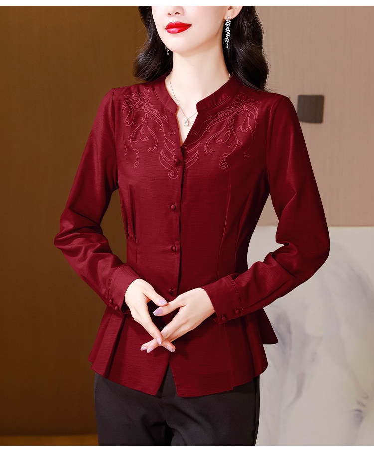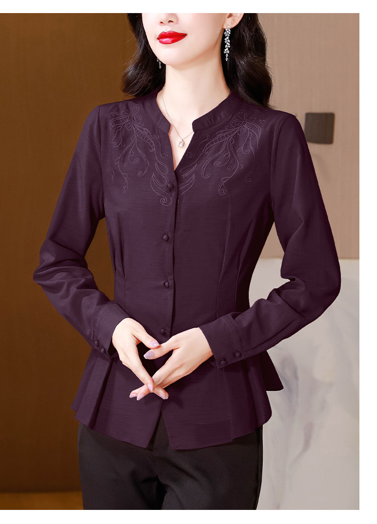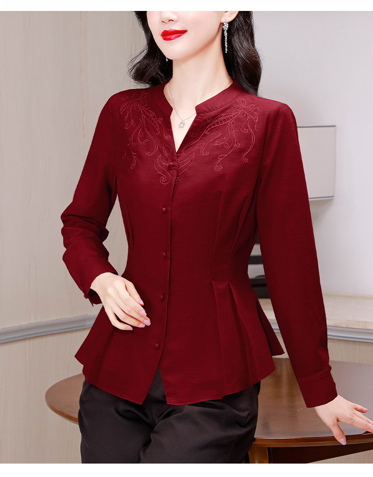时尚高端刺绣长袖衬衫女士秋装新款收腰气质显瘦衬衣修身洋气上衣