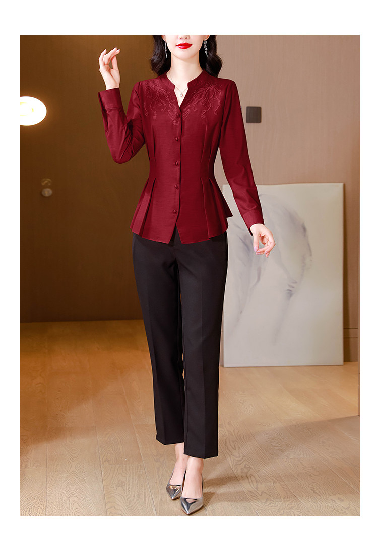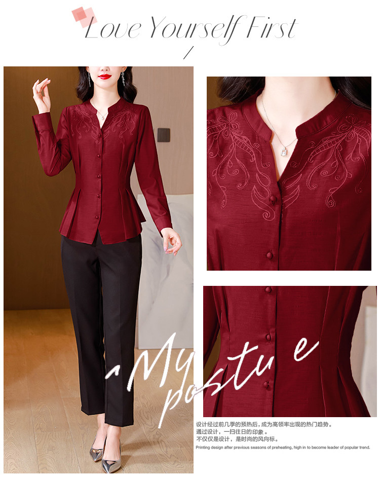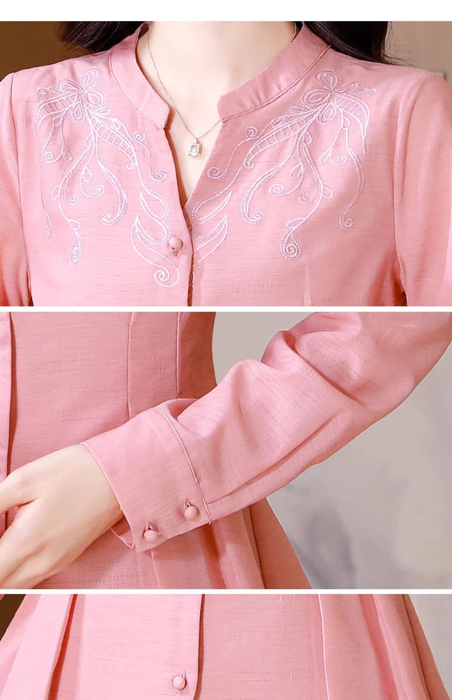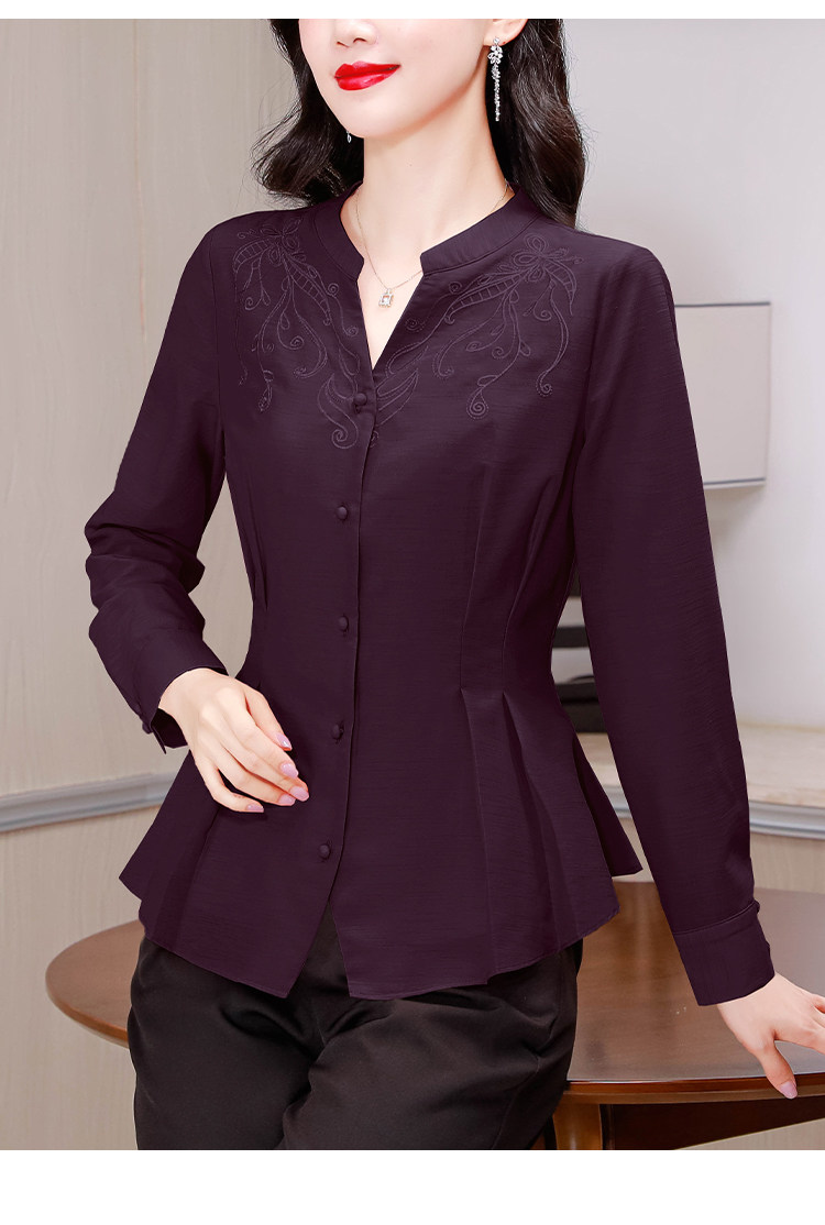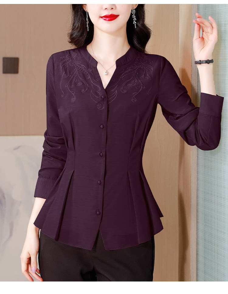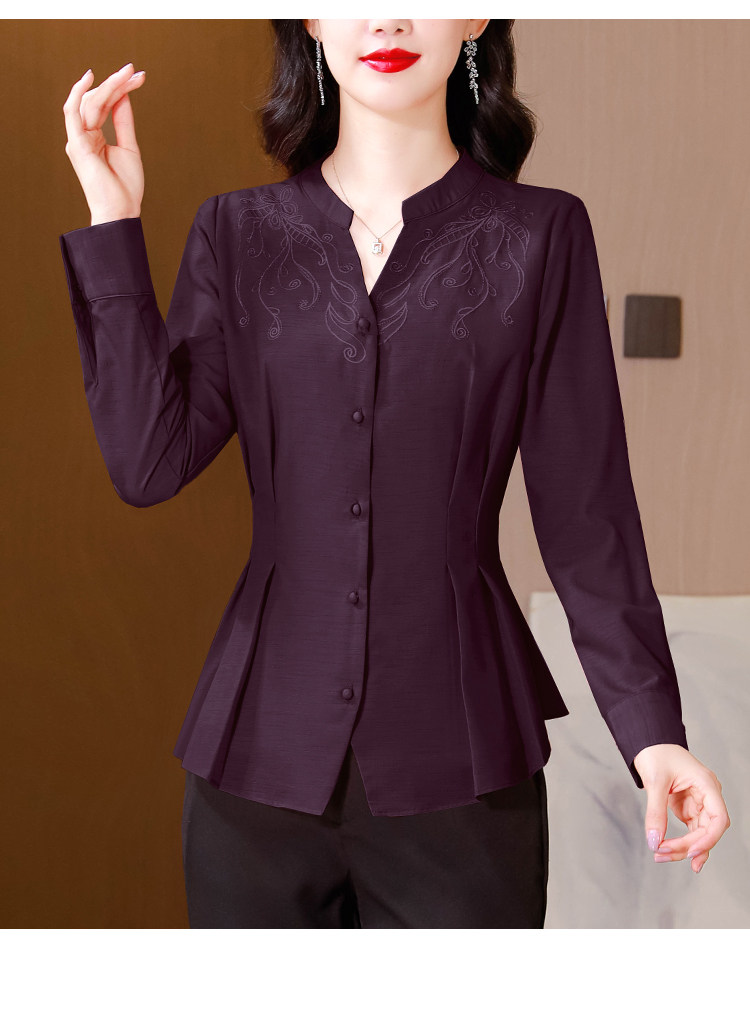 时尚高端刺绣长袖衬衫女士秋装新款收腰气质显瘦衬衣修身洋气上衣