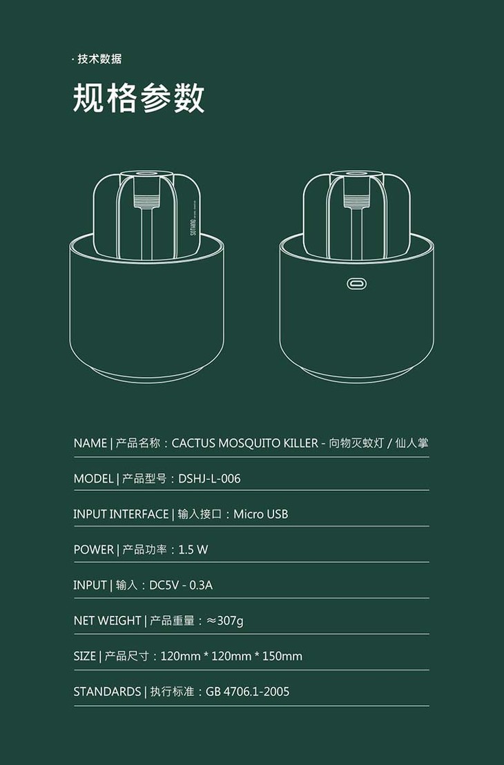 「小清新盆栽造型仙人掌灭蚊灯」sothing 吸入式物理灭蚊 安心入睡