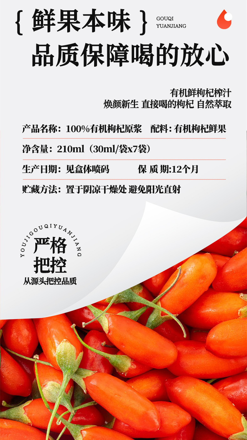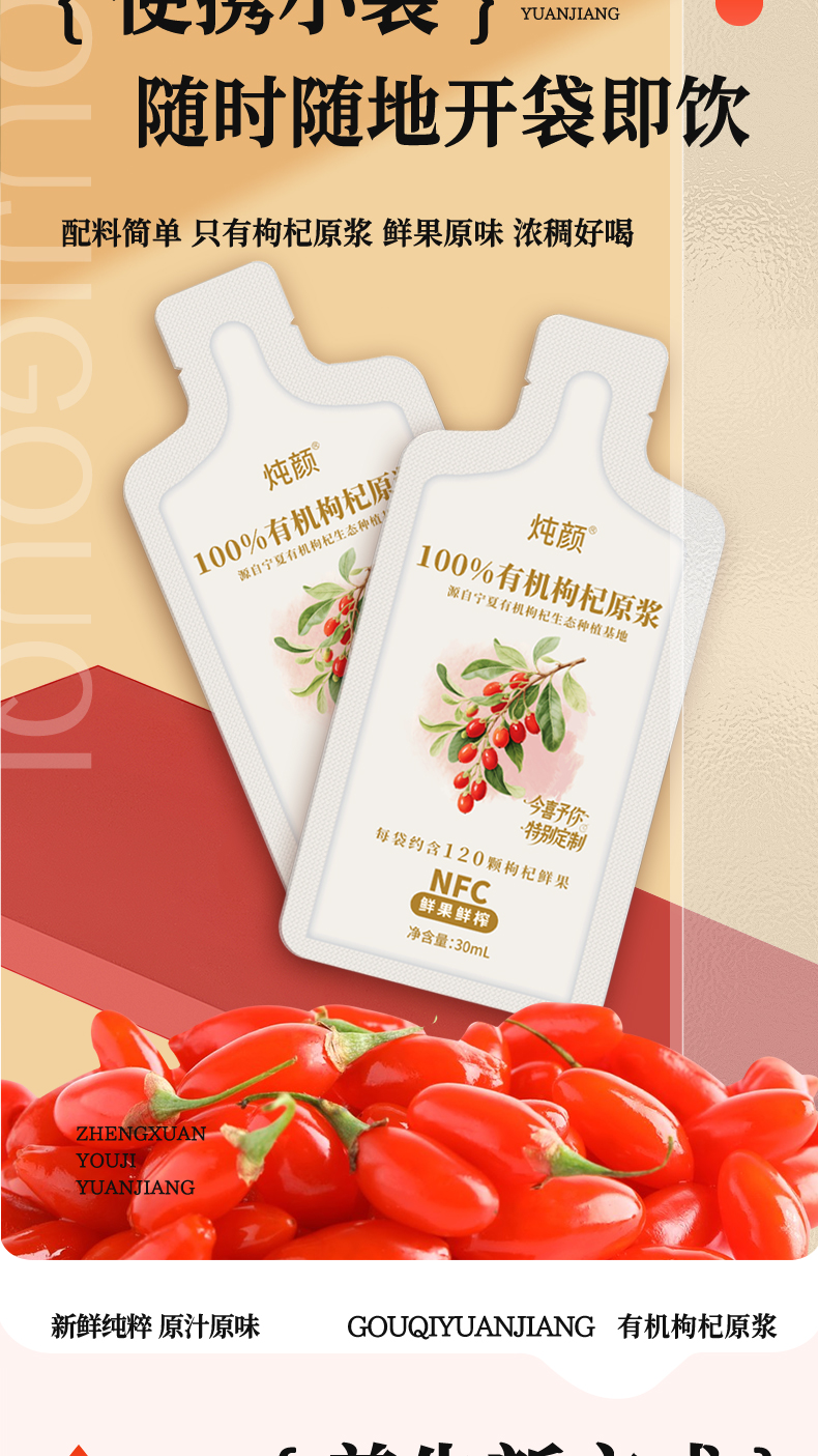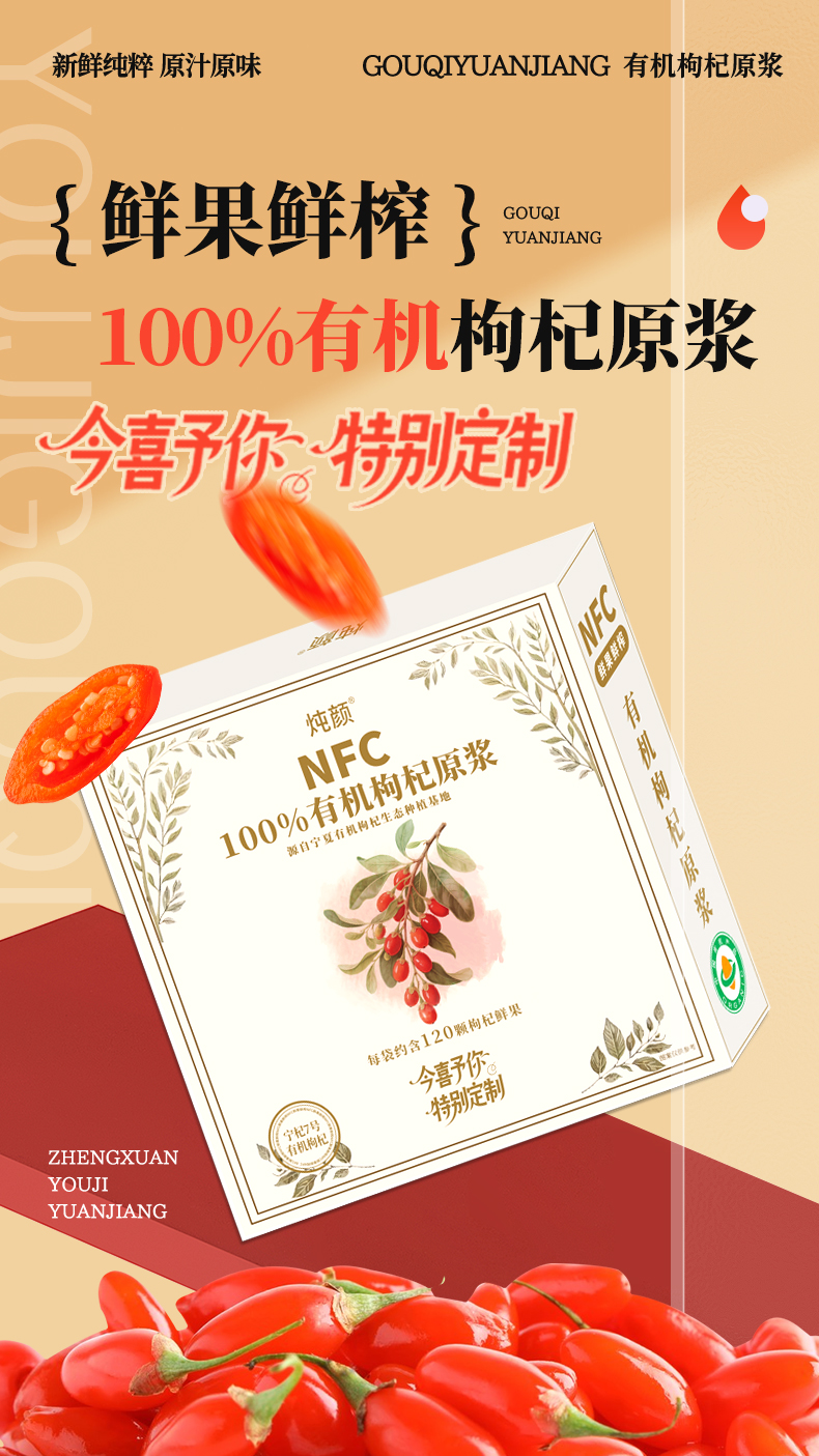 NFC非浓缩还原 | 100%有机枸杞原浆 今喜定制 不加一滴水 鲜果滋补果蔬汁饮品 210mlx3盒/9盒(7袋/盒)