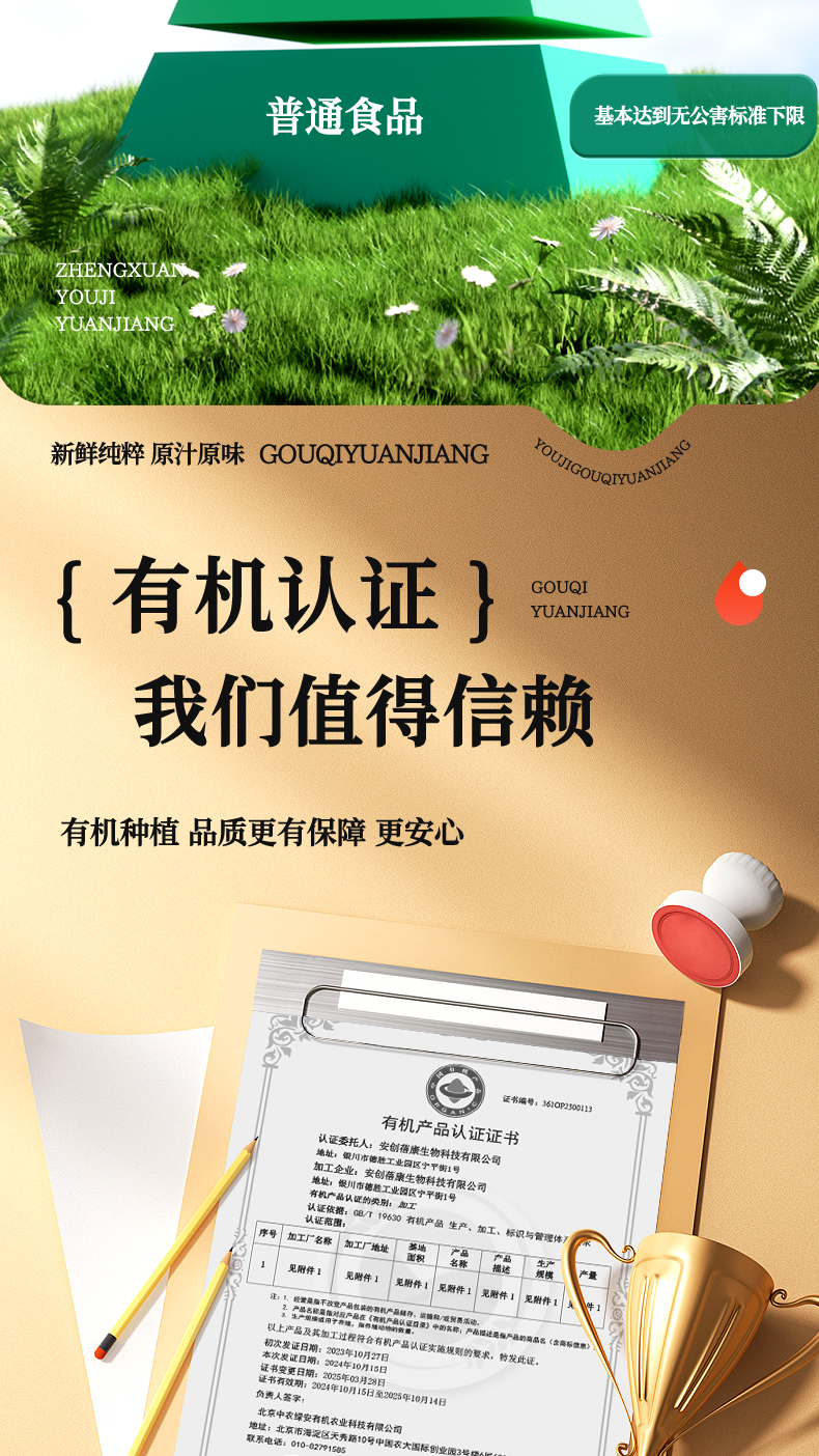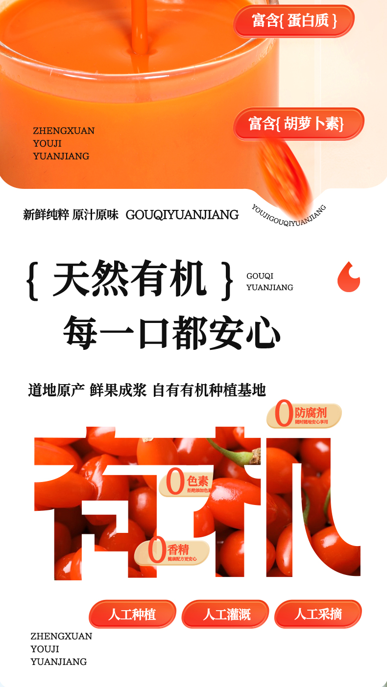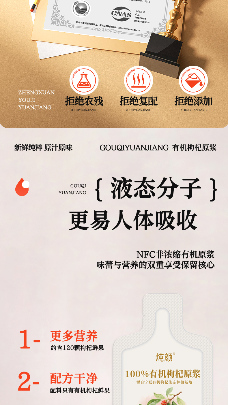 NFC非浓缩还原 | 100%有机枸杞原浆 今喜定制 不加一滴水 鲜果滋补果蔬汁饮品 210mlx3盒/9盒(7袋/盒)