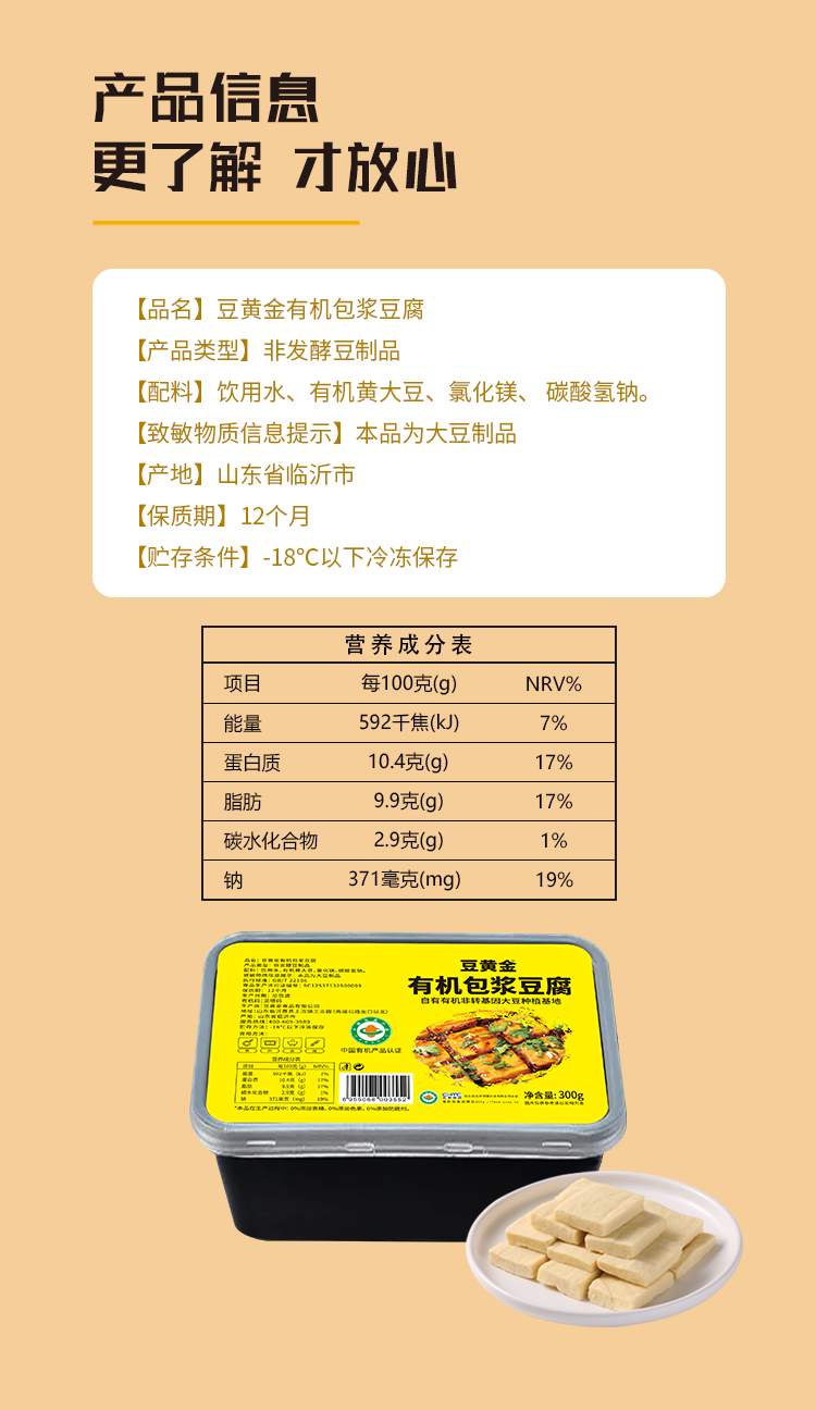 豆黄金有机包浆豆腐300g*5盒