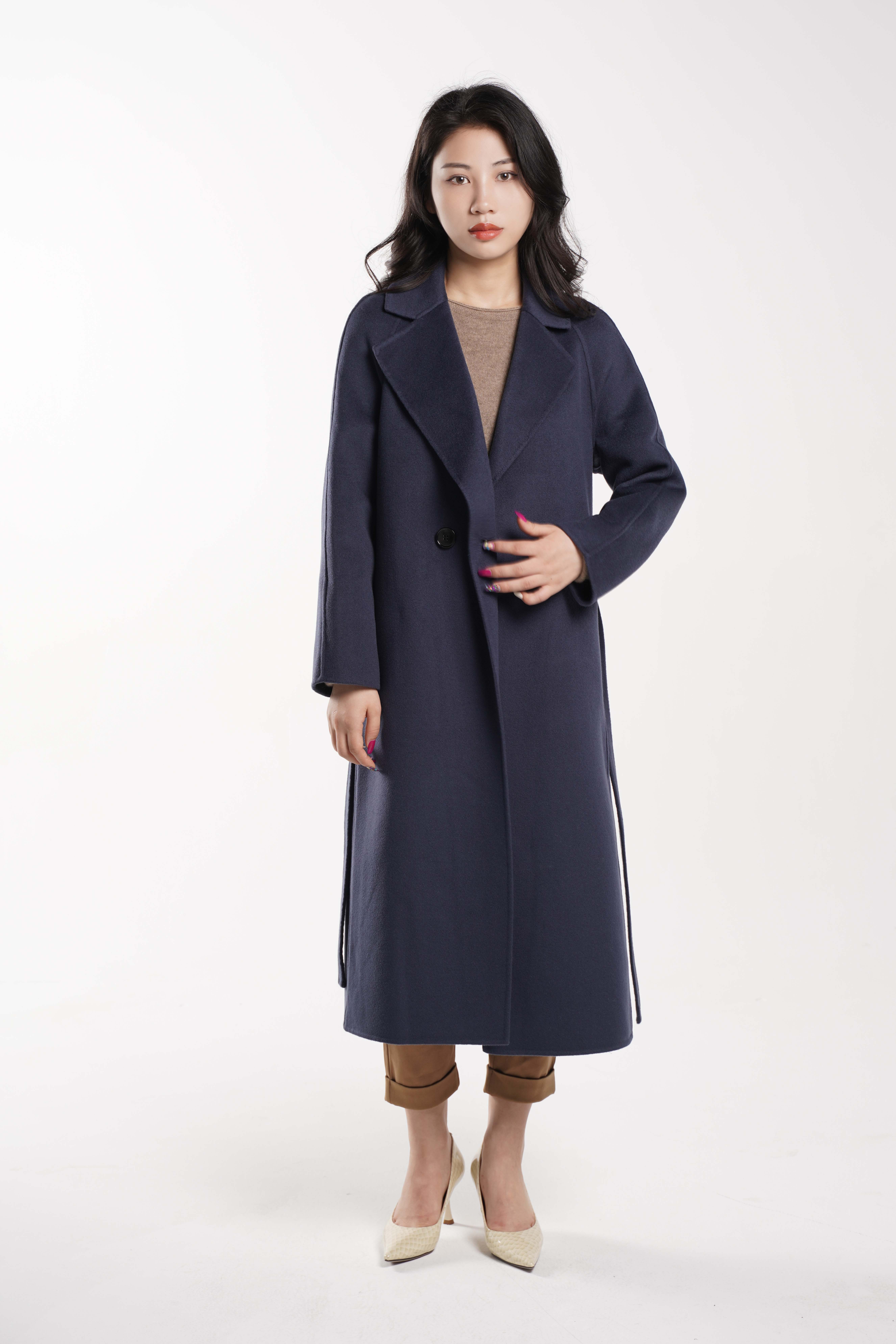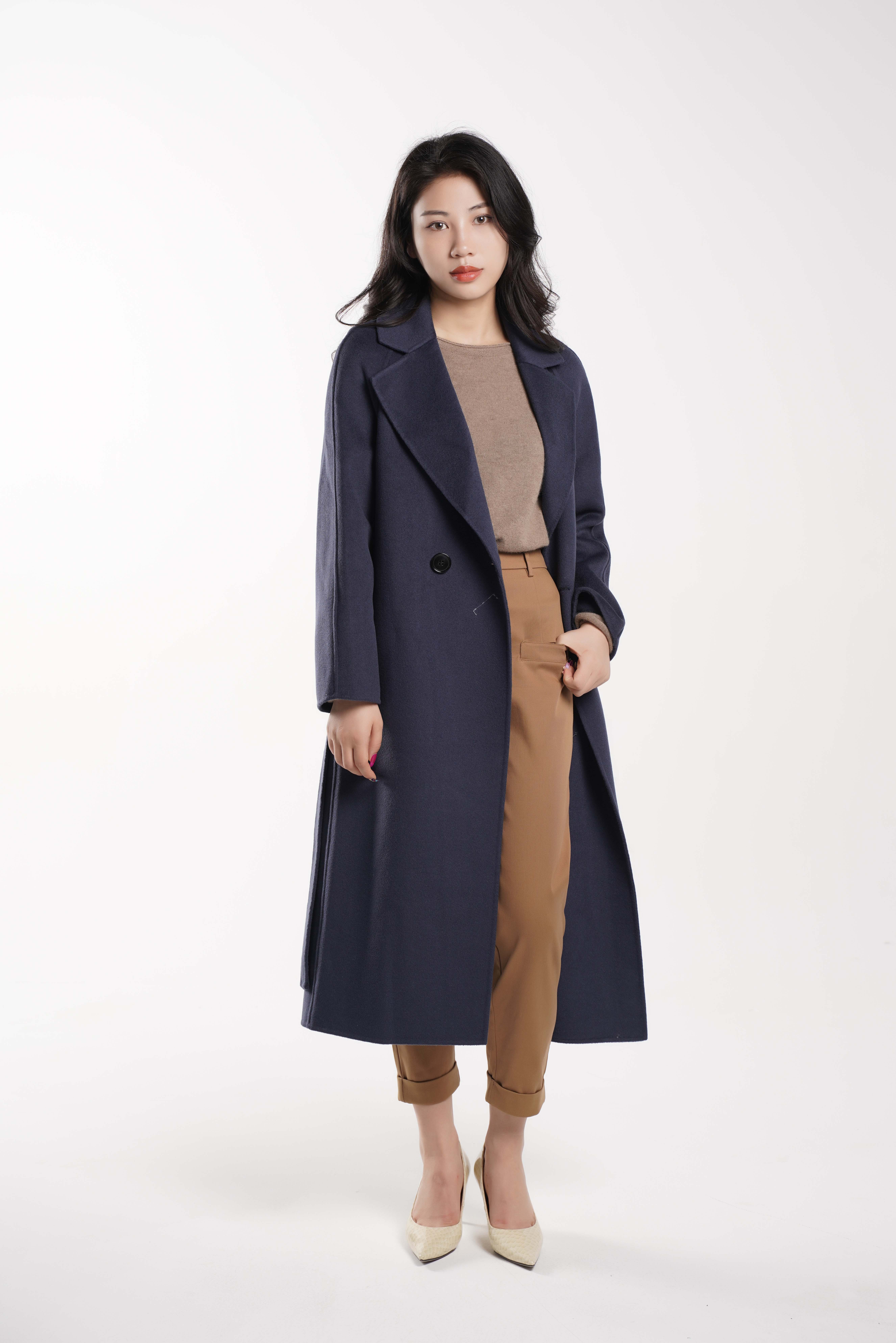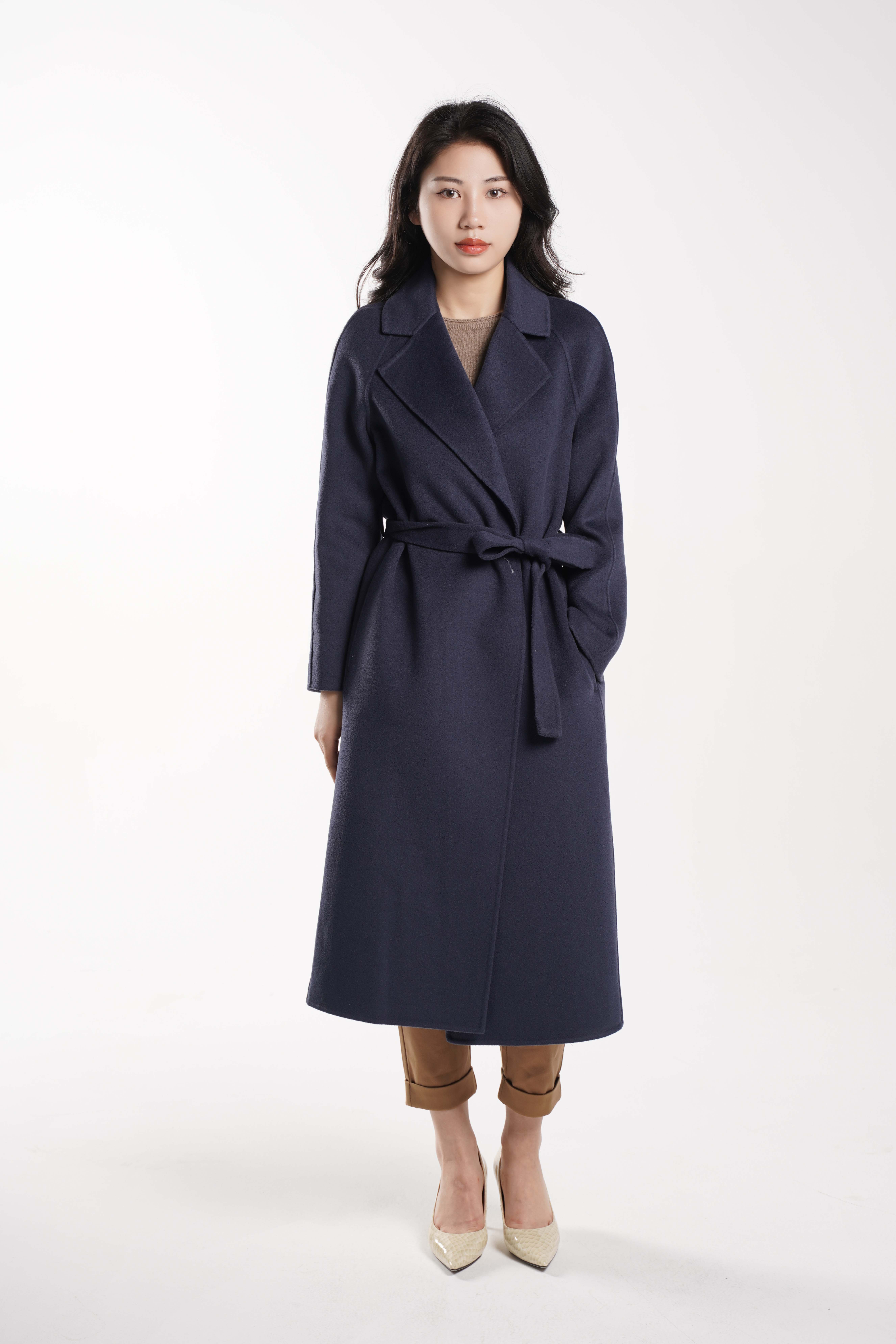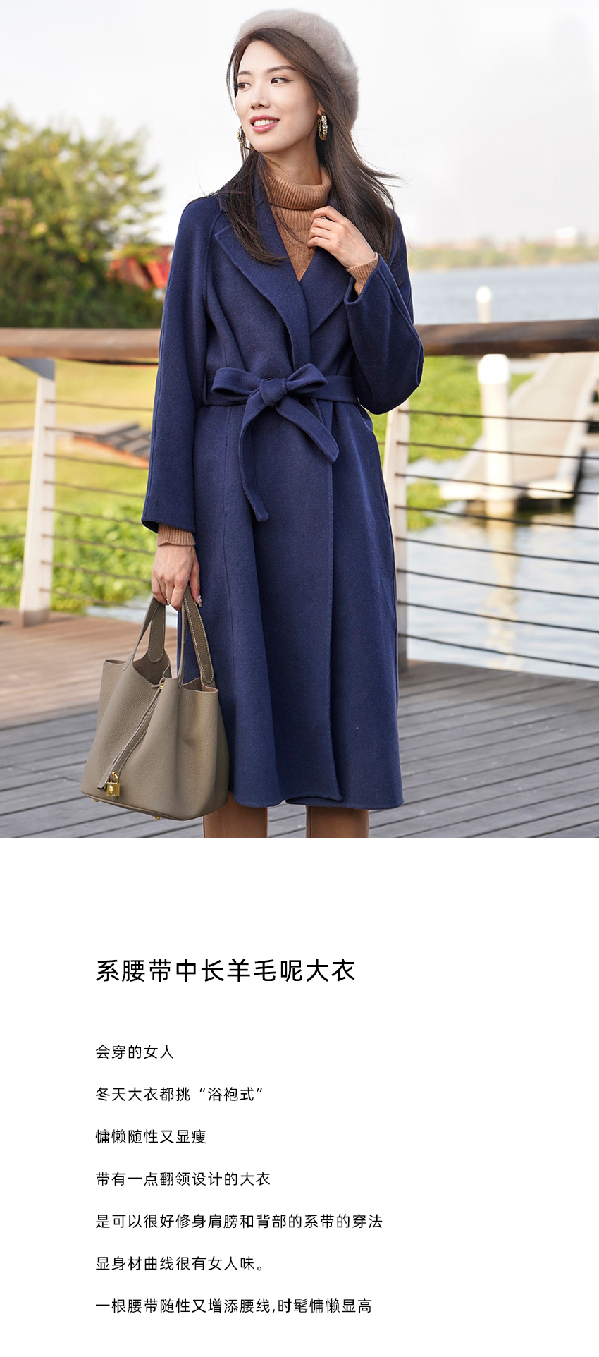 臣禾【100%绵羊毛】呢外套系腰带纯色长款呢大衣9214081126【现货 库存同步售完不补】