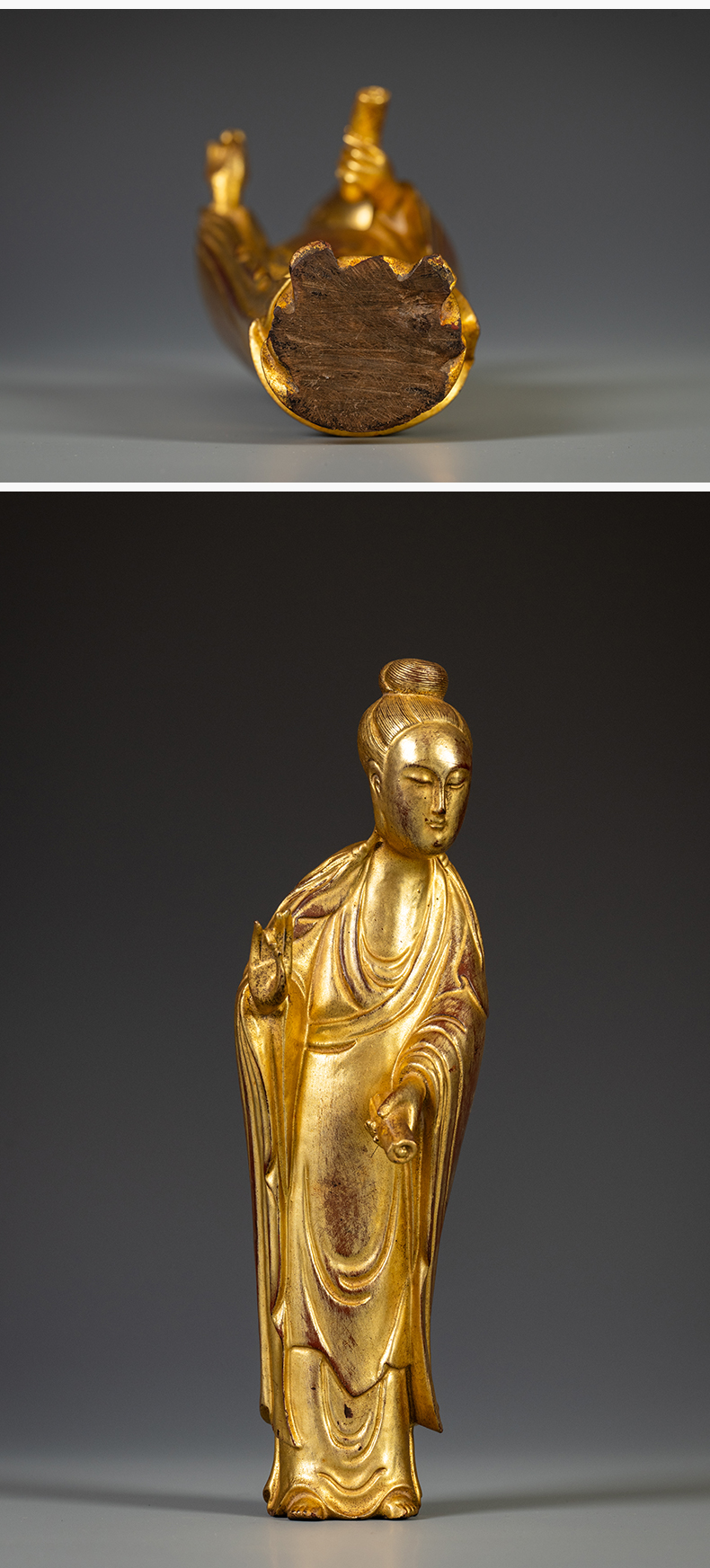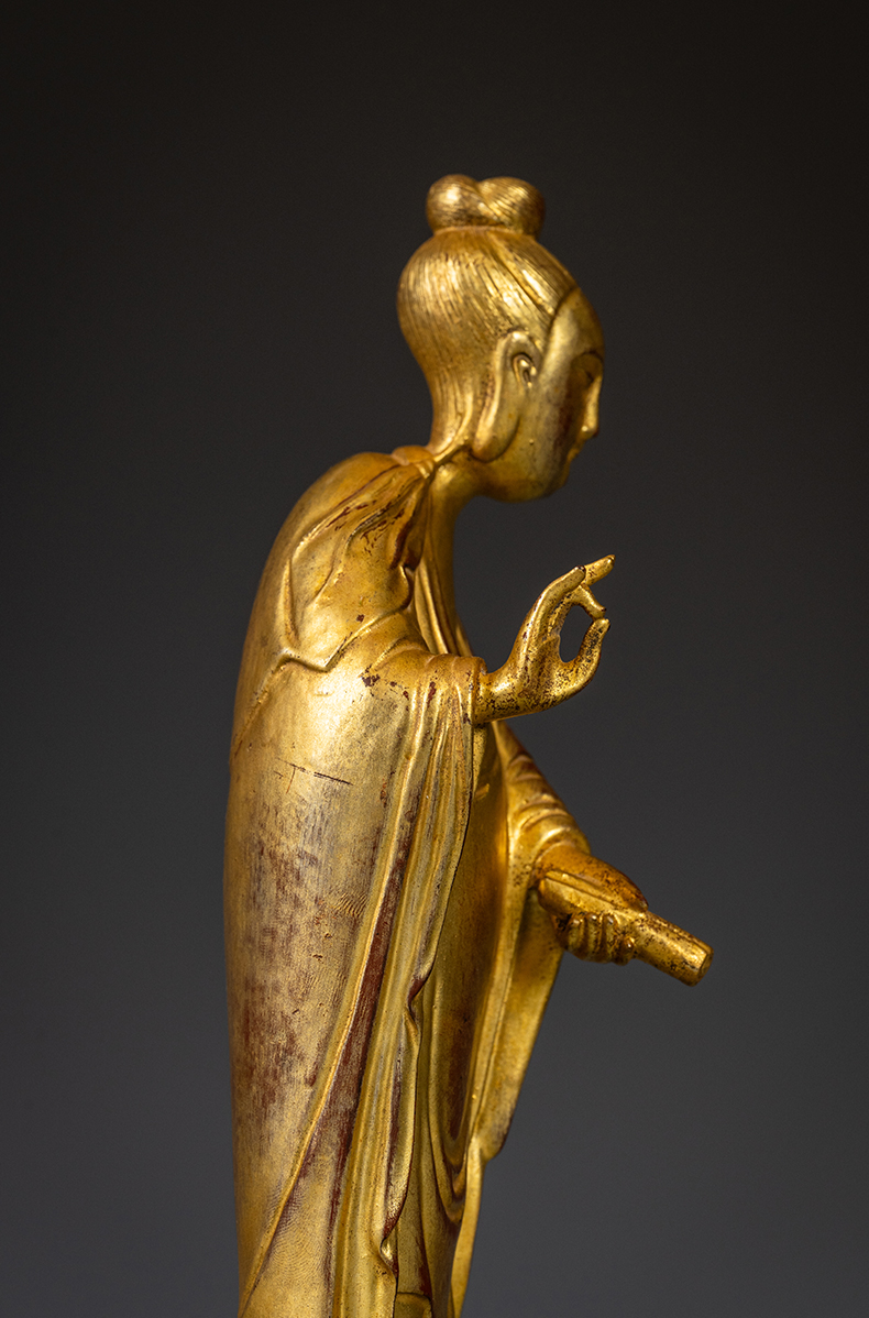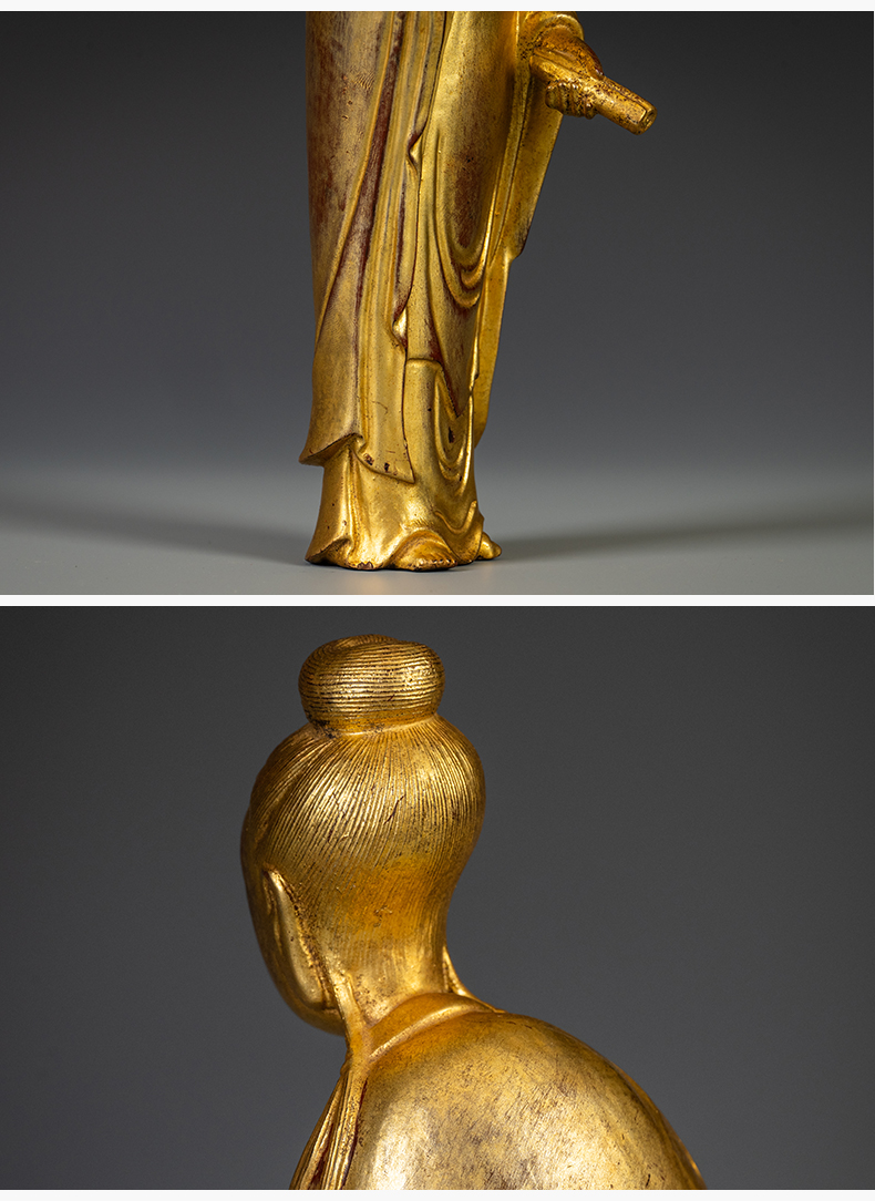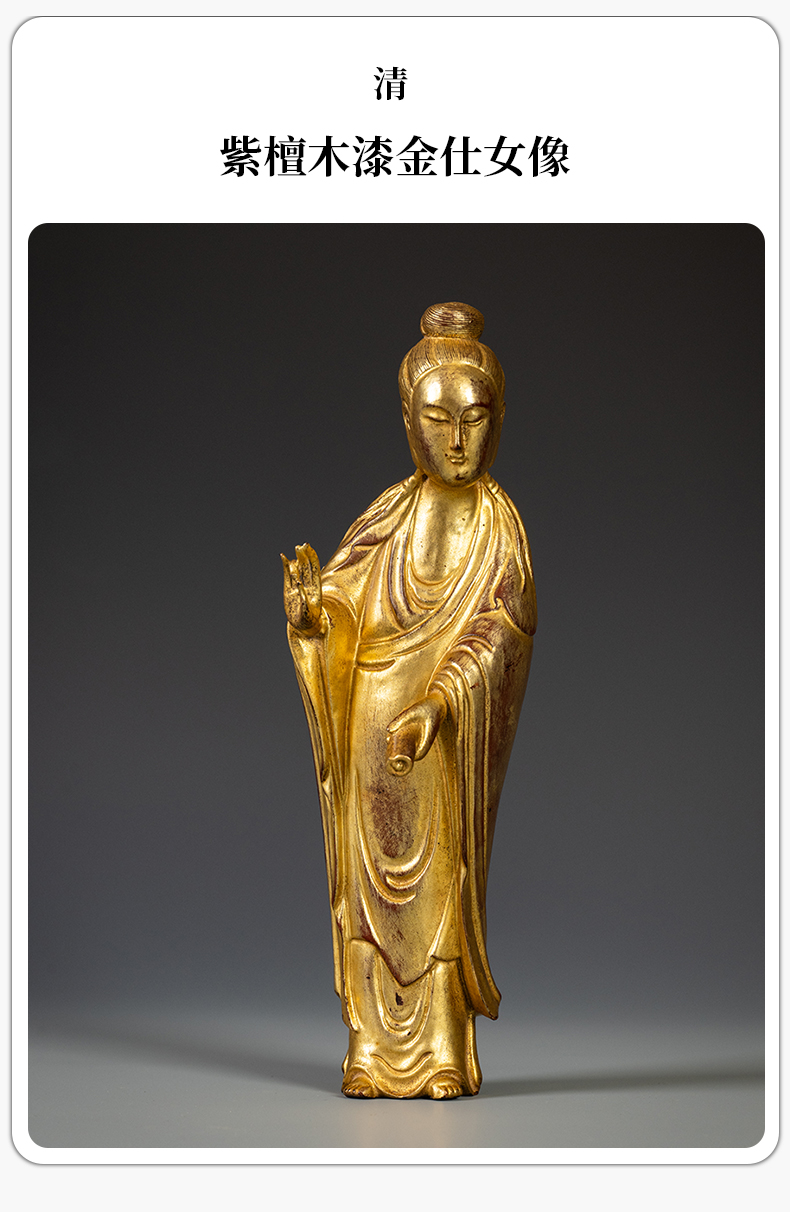 清 紫檀木漆金仕女像