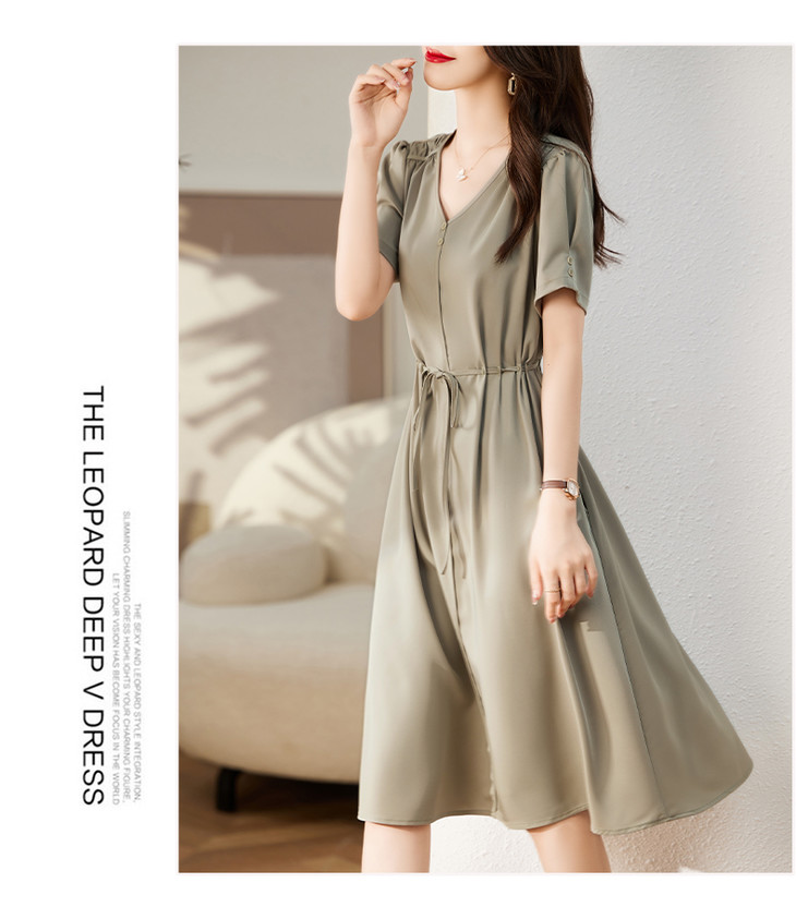 2022新款夏天女装小个子显瘦V领夏季气质洋气裙子 RWQ6176